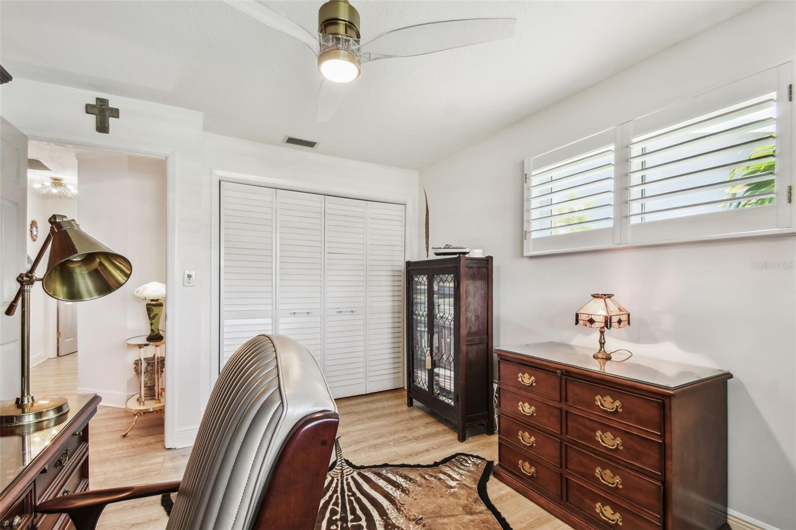 Built-in Features, Ceiling Fans(s), Coffered Ceiling(s), Kitchen/Family Room Combo, Open Floorplan, Solid Wood Cabinets, Split Bedroom, Stone Counters, Thermostat, Walk-In Closet(s), Window Treatments