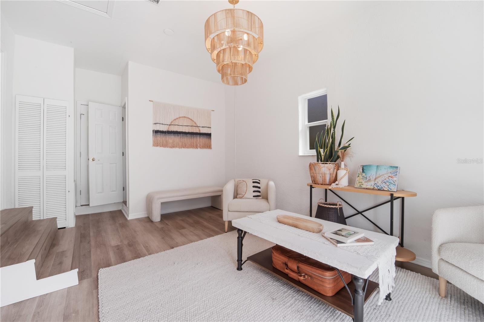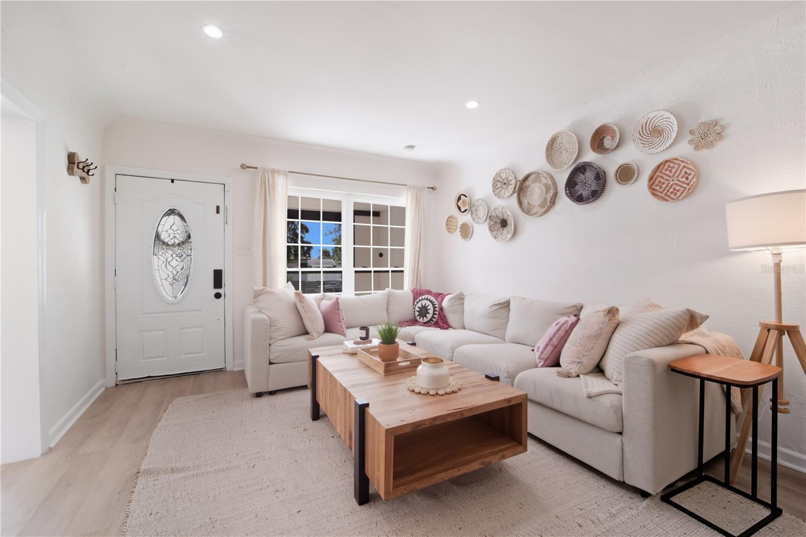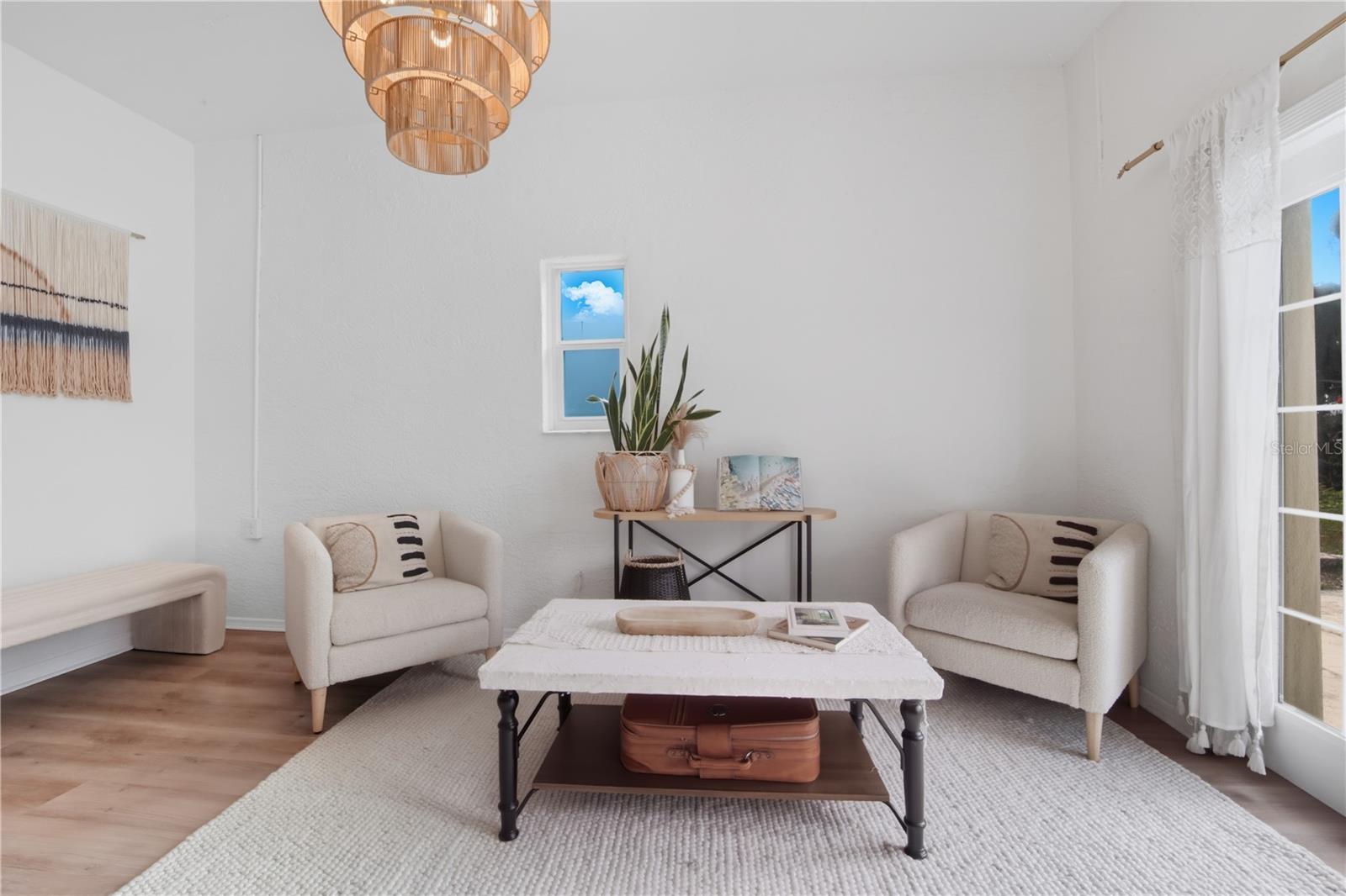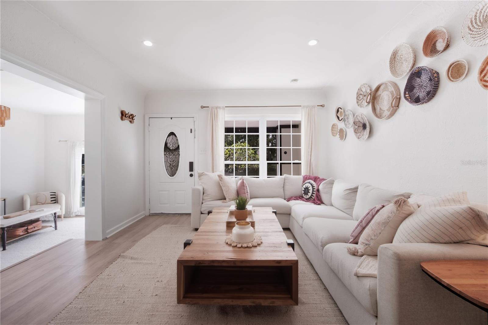 Experience refined Florida living in this fully renovated 3-bedroom, 3 full bath home with a flexible bonus space, 1, 866 sq. ft. of thoughtfully designed living space. Reimagined in 2023, this move-in-ready home effortlessly blends modern sophistication with boho-inspired warmth — every room thoughtfully curated with comfort, style, and cohesive design details that flow seamlessly from one space to the next. Step inside and you're welcomed into a bright, inviting living room that flows seamlessly into the chef’s kitchen, featuring quartz countertops, a stylish tile backsplash, breakfast bar seating, and premium finishes — perfect for everyday living and entertaining alike. The dedicated dining room, highlighted by a chic chandelier, serves as the heart of the home — an inviting space to gather, dine, and connect. The split floor plan provides privacy and functionality, with two bedrooms and a shared full bathroom thoughtfully tucked beyond the main living areas. The primary suite offers a spa-style bathroom with dual vanities, a peaceful nook for reading or work, and a private door leading outdoors — the perfect blend of comfort and connection. You’ll also love the large indoor laundry room with built-in cabinetry, offering both functionality and generous storage. Outdoors, enjoy a fully fenced, oversized green space partially turfed yard with a putting green, new pavers, and plenty of room for outdoor dining and grilling — ideal for relaxing or entertaining under the Florida sun. Major updates bring peace of mind, including a new roof (2023), new HVAC system (2023) and located in Flood Zone X (flood insurance optional). This is where you want to be — just minutes from the vibrant energy of downtown St. Pete and Central Ave, where upscale dining, boutique shopping, and lively entertainment await. For outdoor enthusiasts, two serene lakeside parks, a splash pad, and nearby Boyd Hill Nature Preserve and the Pinellas Trail offer endless opportunities to enjoy the Florida sunshine. Experience the lifestyle you’ve always dreamed of — schedule your private showing today. Financing Incentive!! Receive a lender credit of 25 basis points towards closing costs or lowering your rate when you finance with the preferred lender.