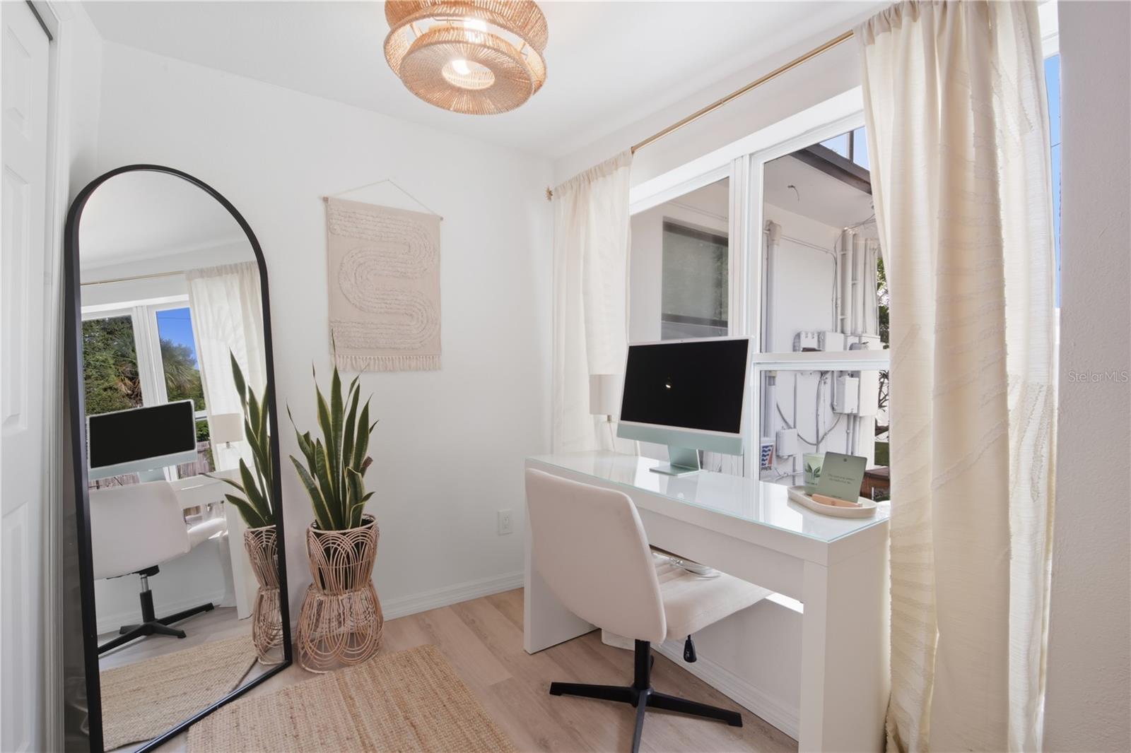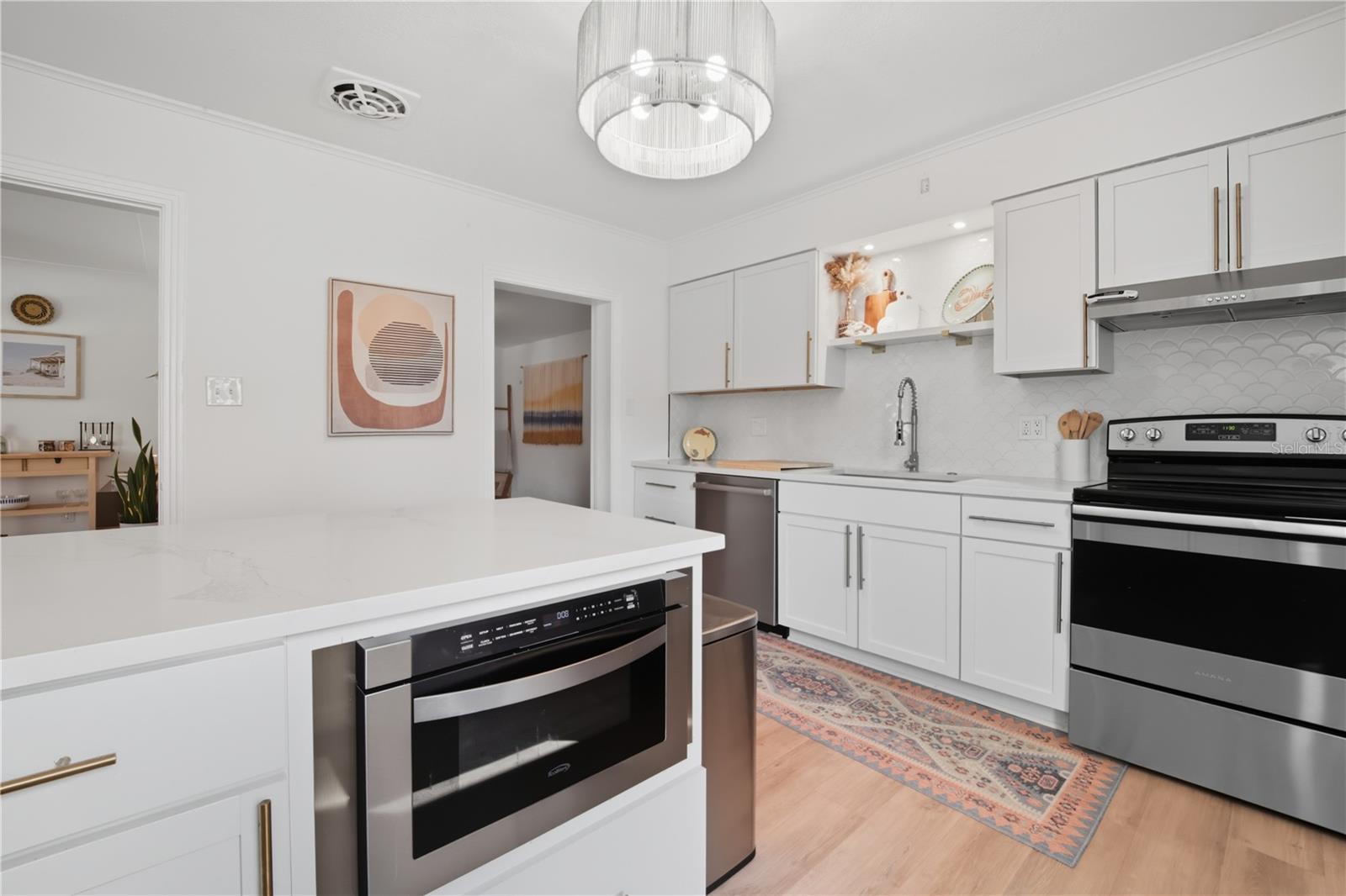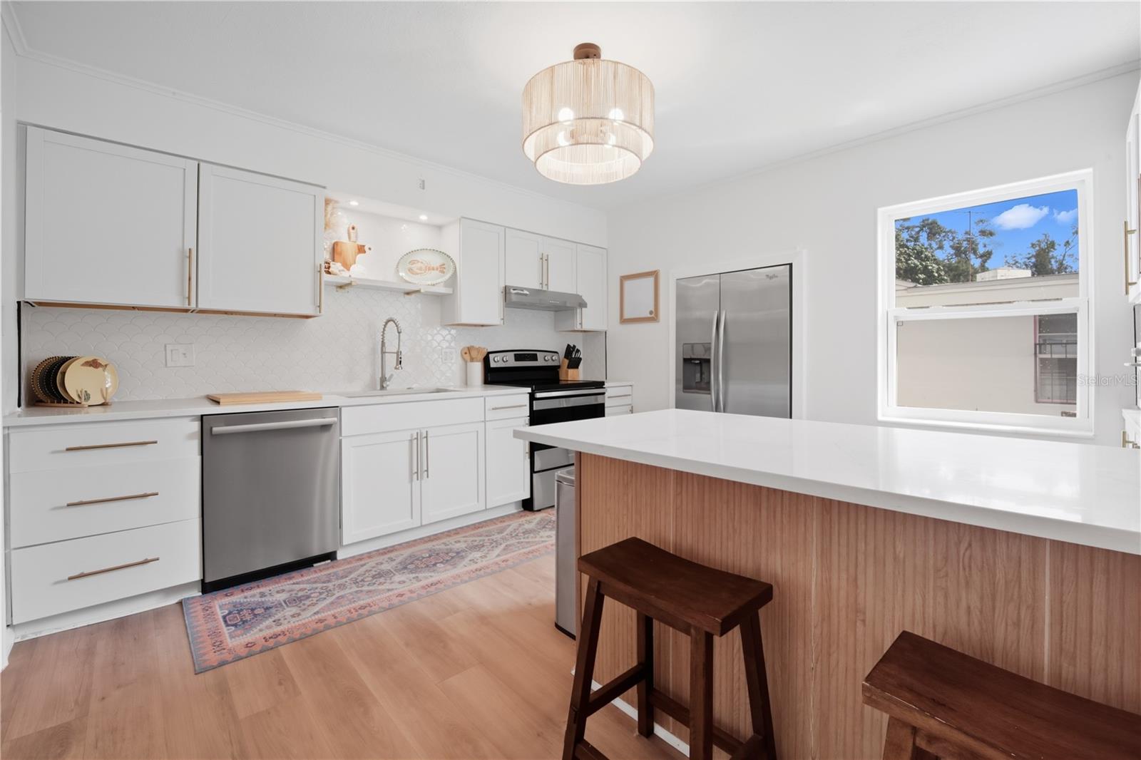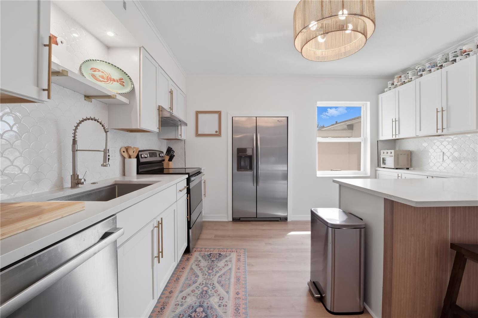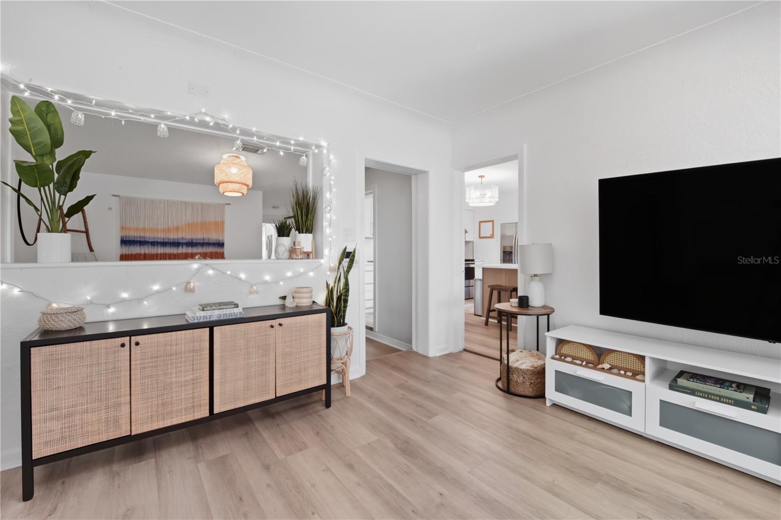 Experience refined Florida living in this fully renovated 3-bedroom, 3 full bath home with a flexible bonus space, 1, 866 sq. ft. of thoughtfully designed living space. Reimagined in 2023, this move-in-ready home effortlessly blends modern sophistication with boho-inspired warmth — every room thoughtfully curated with comfort, style, and cohesive design details that flow seamlessly from one space to the next. Step inside and you're welcomed into a bright, inviting living room that flows seamlessly into the chef’s kitchen, featuring quartz countertops, a stylish tile backsplash, breakfast bar seating, and premium finishes — perfect for everyday living and entertaining alike. The dedicated dining room, highlighted by a chic chandelier, serves as the heart of the home — an inviting space to gather, dine, and connect. The split floor plan provides privacy and functionality, with two bedrooms and a shared full bathroom thoughtfully tucked beyond the main living areas. The primary suite offers a spa-style bathroom with dual vanities, a peaceful nook for reading or work, and a private door leading outdoors — the perfect blend of comfort and connection. You’ll also love the large indoor laundry room with built-in cabinetry, offering both functionality and generous storage. Outdoors, enjoy a fully fenced, oversized green space partially turfed yard with a putting green, new pavers, and plenty of room for outdoor dining and grilling — ideal for relaxing or entertaining under the Florida sun. Major updates bring peace of mind, including a new roof (2023), new HVAC system (2023) and located in Flood Zone X (flood insurance optional). This is where you want to be — just minutes from the vibrant energy of downtown St. Pete and Central Ave, where upscale dining, boutique shopping, and lively entertainment await. For outdoor enthusiasts, two serene lakeside parks, a splash pad, and nearby Boyd Hill Nature Preserve and the Pinellas Trail offer endless opportunities to enjoy the Florida sunshine. Experience the lifestyle you’ve always dreamed of — schedule your private showing today. Financing Incentive!! Receive a lender credit of 25 basis points towards closing costs or lowering your rate when you finance with the preferred lender.