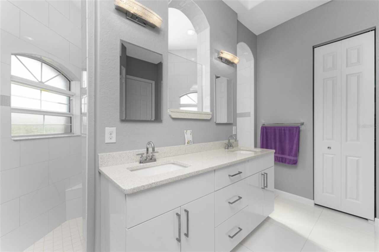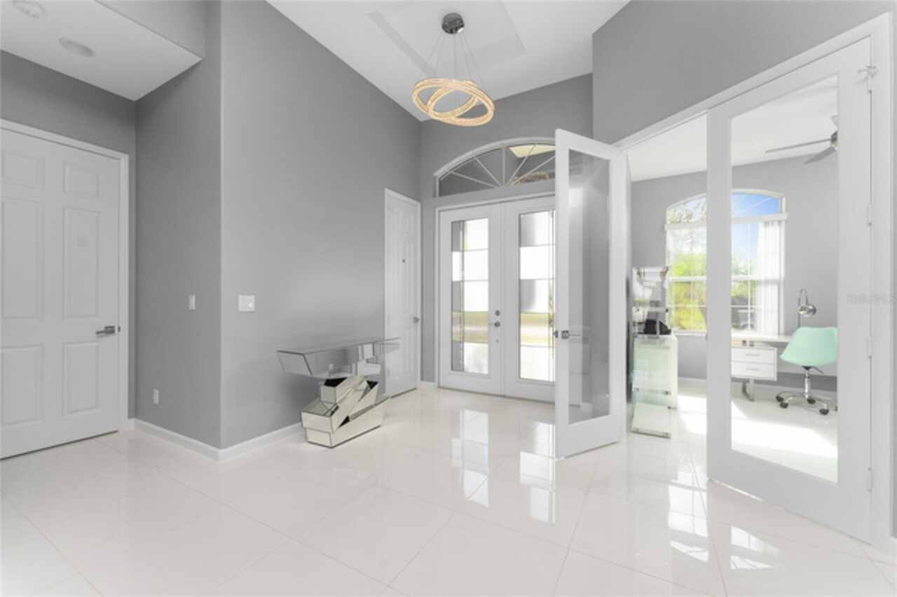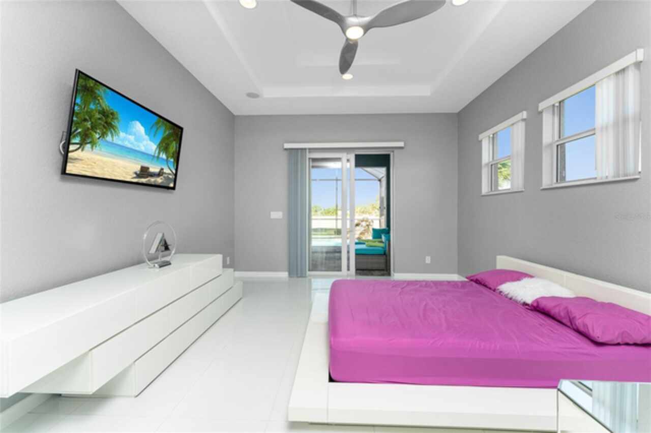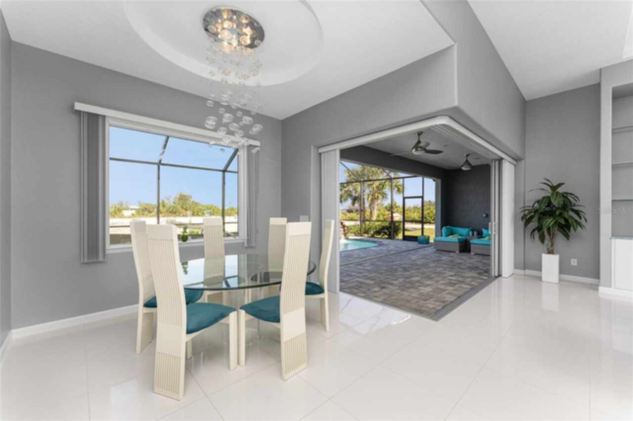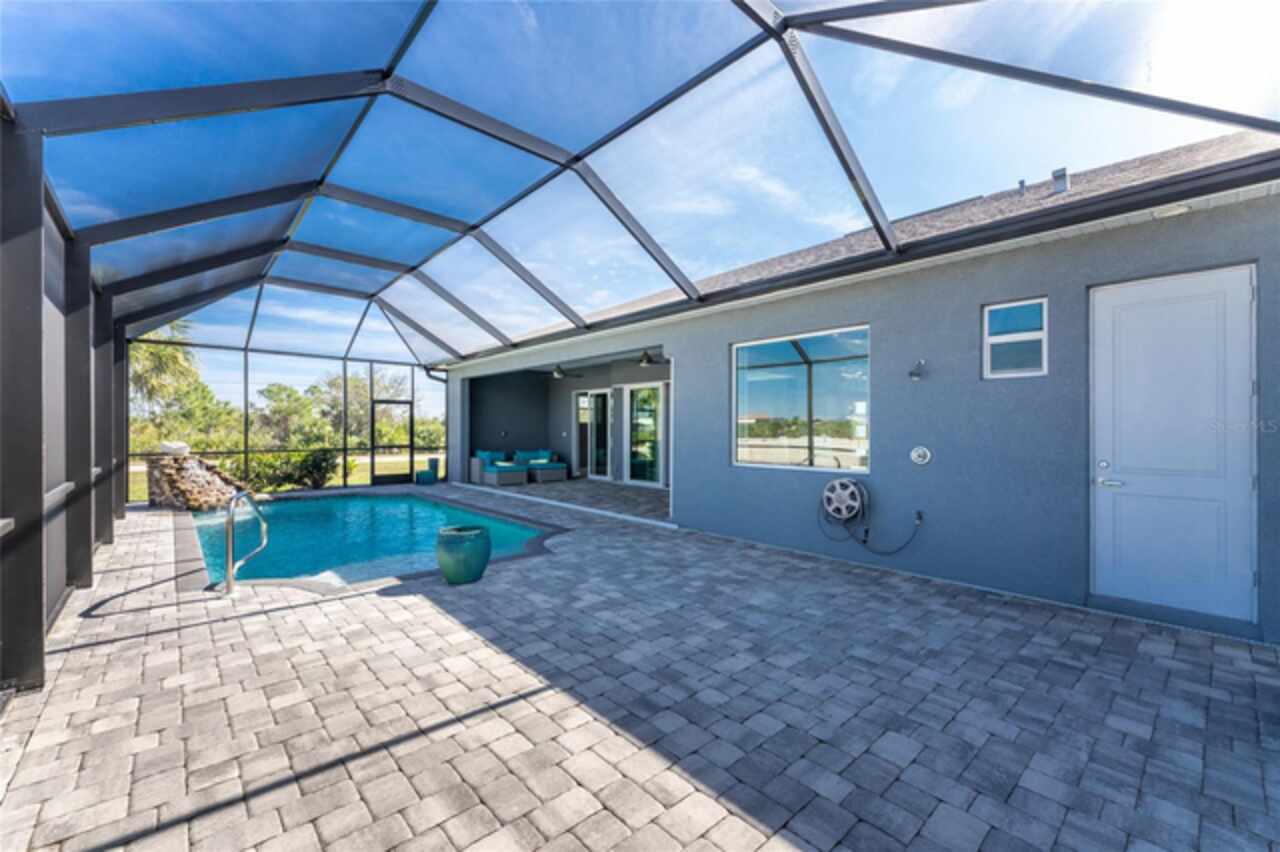 Welcome to this meticulously maintained 3-bedroom, 2-bathroom home plus den that offers an impressive 2, 115 sq. ft. of living space. Set on a large double lot, this home has been thoughtfully designed, blending modern amenities with luxurious finishes. Boasting a new HVAC V/S motor and deluxe UV light installed in February 2022, along with fresh interior and exterior paint, this home is move-in ready and perfect for anyone looking for a stylish, worry-free lifestyle. The culinary kitchen, is a true chef’s paradise! This gourmet kitchen is outfitted with stunning aqua onyx countertops, a beautiful glass tile backsplash, and an expansive double island—perfect for entertaining or casual family meals. The sleek glass cooktop and abundance of soft-close cabinets and drawers provide both style and function, making cooking a true joy. This open and airy floor plan is enhanced by soaring high ceilings and elegant touches, including double tray ceilings in the living area, a circular tray ceiling in the dining room, and tray ceilings in the foyer. The open concept seamlessly connects the living room, dining area, and kitchen, with pocket sliding doors leading to the gorgeous pool area, perfect for enjoying Florida’s indoor-outdoor lifestyle. Entertaining made easy with The great room that features a striking built-in electric fireplace, framed by custom-built shelving. A state-of-the-art 8-speaker stereo system runs throughout the great room, kitchen, primary bedroom, and lanai, making it ideal for hosting gatherings or simply enjoying music throughout your home. Step outside to your private oasis featuring a luxurious heated saltwater pool with a sun shelf and a tranquil waterfall feature. This space is perfect for both relaxation and entertaining guests in the gorgeous Florida weather. The spacious primary bedroom features ample walk-in closets to accommodate all your storage needs, while the high-end finishes provide a sense of retreat and relaxation. The primary bathroom is a spa-like retreat, with an oversized walk-through shower featuring dual shower heads for an ultimate luxury experience. This home offers a split floor plan with 2 bedrooms and a guest bathroom that offers a beautifully tiled walk-in shower with direct access to the pool area—perfect for rinsing off after a swim. The large laundry room offers Topaz Gem countertops, extensive cabinetry, and a convenient laundry tub. The home is equipped with hurricane windows throughout and a lanai panel for added protection during storm season. New roof installed in 2023, 2x2 porcelain tile throughout, and a Rain Soft water treatment system, installed in October 2019, ensures high-quality water for everyday use. The exterior of the home is just as stunning as the interior, featuring a beautifully paved driveway that leads up to the insulated 3-car garage with epoxy-coated flooring. Lush landscaping, mature plants, irrigation system and white Caribbean beach pebbles add to the home’s appeal. Fenced in pet area with 2 gates provide a safe haven for your pets. This home is truly a showstopper, offering a blend of luxurious features, thoughtful upgrades, and a prime location in South Gulf Cove. Whether you’re looking for a peaceful retreat or an entertainer’s dream home, this property has everything you need and more.