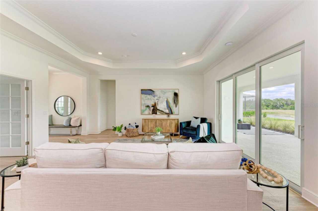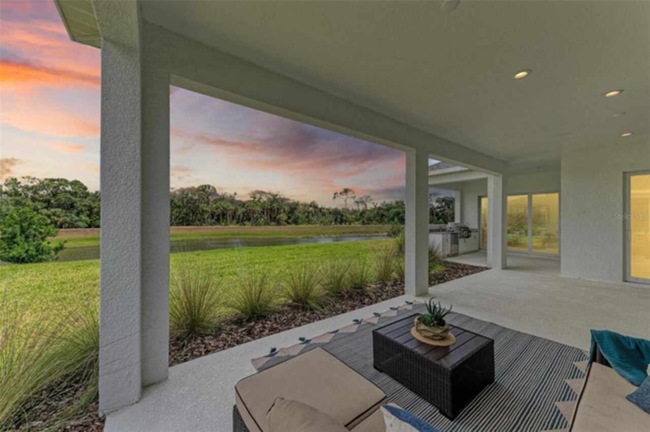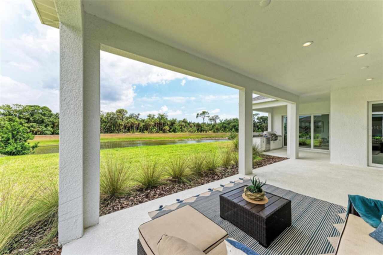 MOTIVATED SELLER! AMAZING PRICE REDUCTION! BRAND NEW HOME IS READY NOW - This Captiva plan home boasts in luxurious upgrades and is perfectly situated on a premium waterfront homesite in the gated Canoe Creek community. With picturesque lake views, a serene preserve backdrop, and a scenic walking path, the property offers unmatched tranquility with no front-facing neighbors. Skip the long building process and begin enjoying this exquisite home immediately! As one of the final homes in the Coastal Collection for this phase, this residence occupies one of the largest homesites in the community, providing both space and exclusivity. A welcoming front porch leads to a thoughtfully designed interior featuring an extended 3-car garage, IMPACT-RESISTANT windows and sliders, and an elegant glass entry door. Inside, the open-concept layout showcases luxury vinyl plank flooring throughout (no carpet!), a versatile bonus room with double doors, a private den/office, and two generously sized guest bedrooms. One of the guest bedrooms offers an en-suite bathroom, ensuring comfort and privacy for visitors. Crown molding and tray ceilings with detailed finishes in the owner’s suite, club/bonus room, and great room elevate the home’s sophisticated ambiance. The chef’s kitchen is a true showpiece, complete with custom double-stacked cabinetry with lighting, soft-close drawers, pull-out shelving, a custom curved hood, and a spacious island featuring decorative panels and a scratch-resistant undermount sink. High-end appliances include a five-burner Fulgar Milano gas cooktop, a built-in oven, a convection/microwave oven, and a stainless-steel dishwasher—all complemented by stunning quartz countertops. The owner’s suite is bathed in natural light and features an expansive closet and a spa-like en-suite bathroom with a large walk-in shower, designer tilework, quartz countertops, and premium fixtures. Designed for seamless indoor-outdoor living, the home boasts an extended lanai with multiple entertainment areas, accessible from the great room, dining room, and bonus room. The lanai includes a built-in outdoor kitchen with granite countertops and space for a private pool—perfect for entertaining or relaxing in style. Additional features include smart home technology, pre-wiring for a security system, a wireless access point, epoxy-speckled garage flooring, upgraded pantry shelving, and a large laundry room with upper cabinets and a laundry sink. Canoe Creek is a low-maintenance community with NO CDD fees, offering an array of amenities such as a lagoon-style pool, spa, fitness center, clubhouse, pickleball courts, a dog park, community events, and an on-site Lifestyle Director. Its prime location provides easy access to Lakewood Ranch, the Manatee River, Sarasota, St. Petersburg, and Tampa. It’s also conveniently close to Gamble Creek Farmer’s Market for fresh local produce and goods. Elevate your lifestyle with this incredible home and the exceptional community of Canoe Creek!