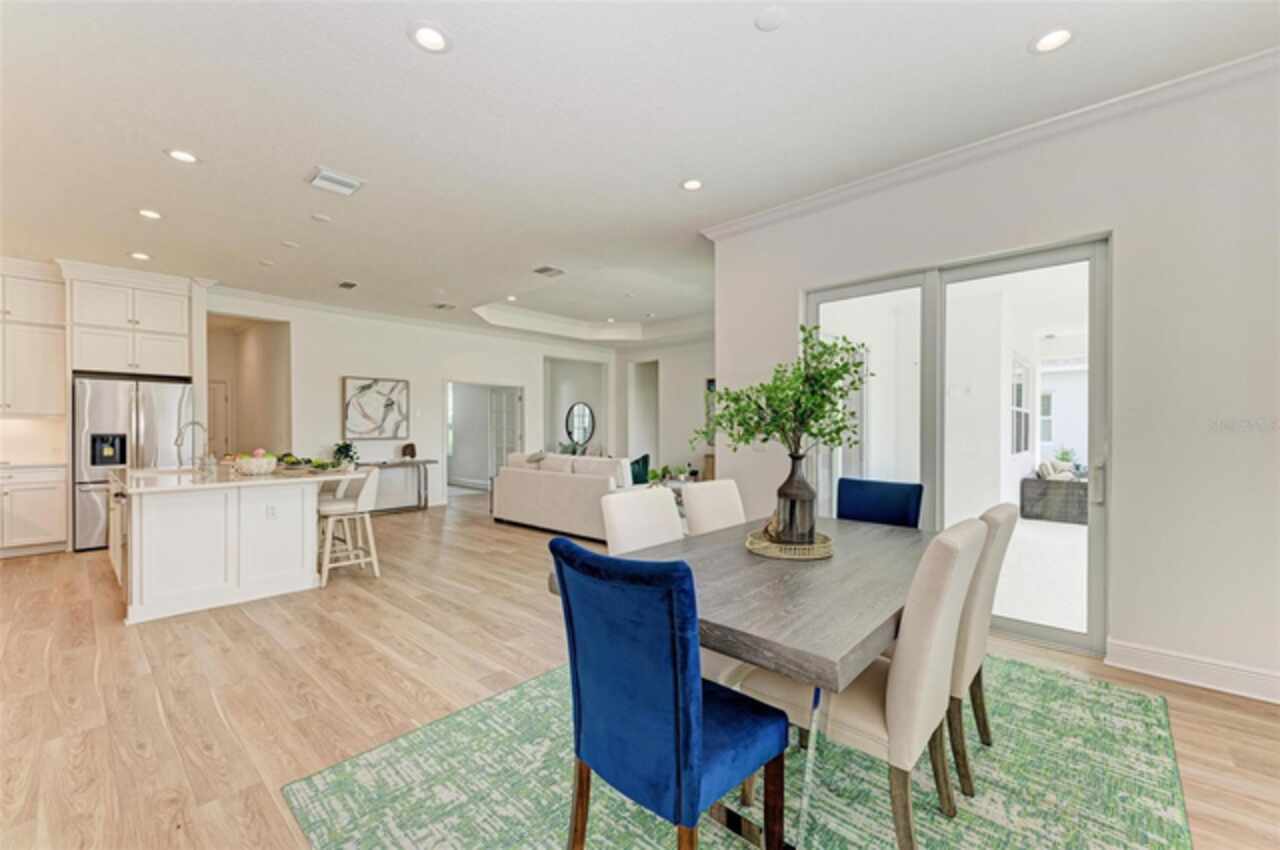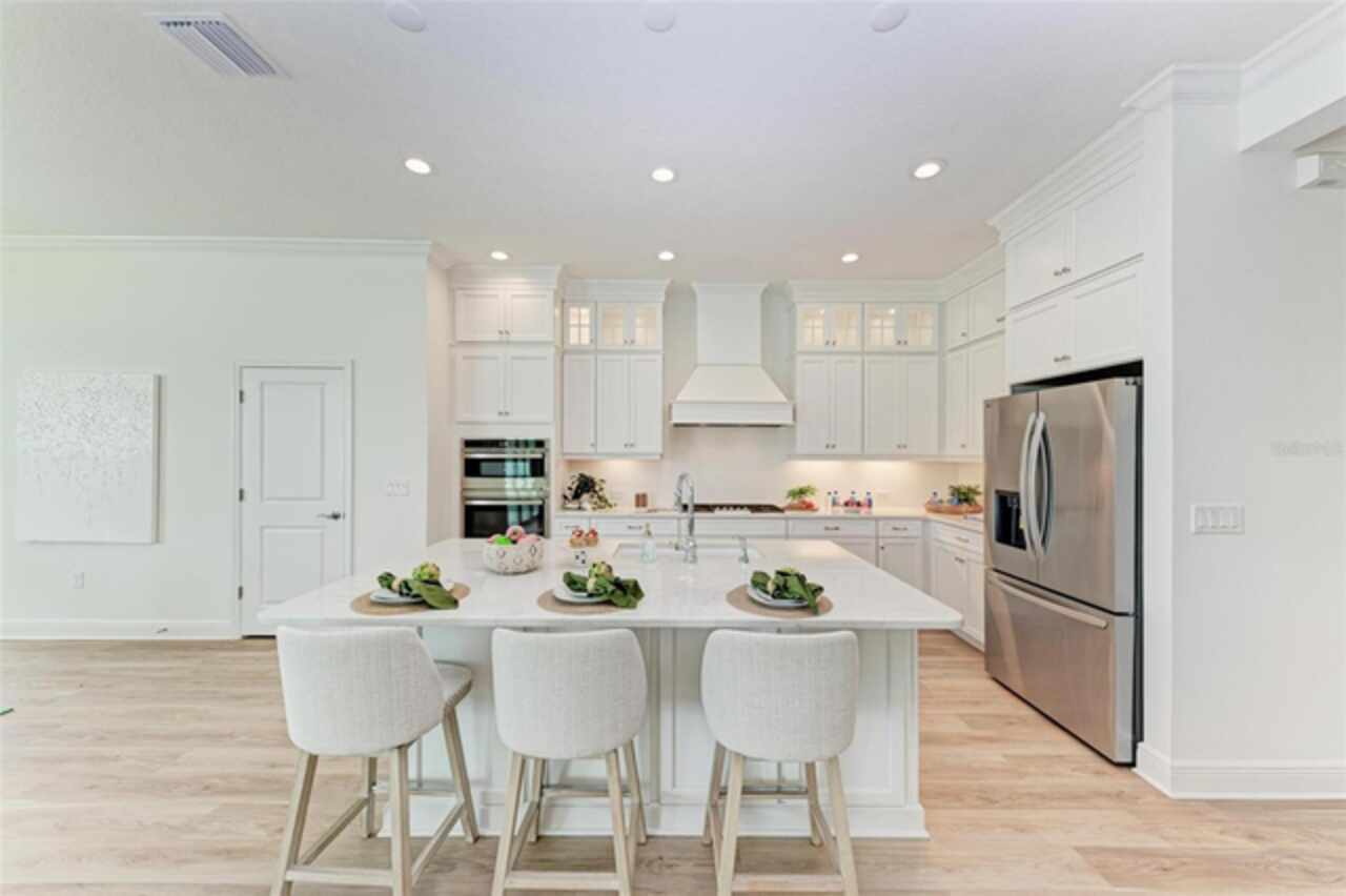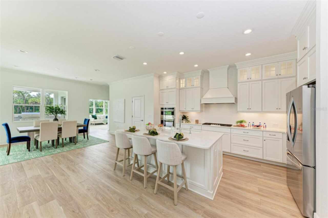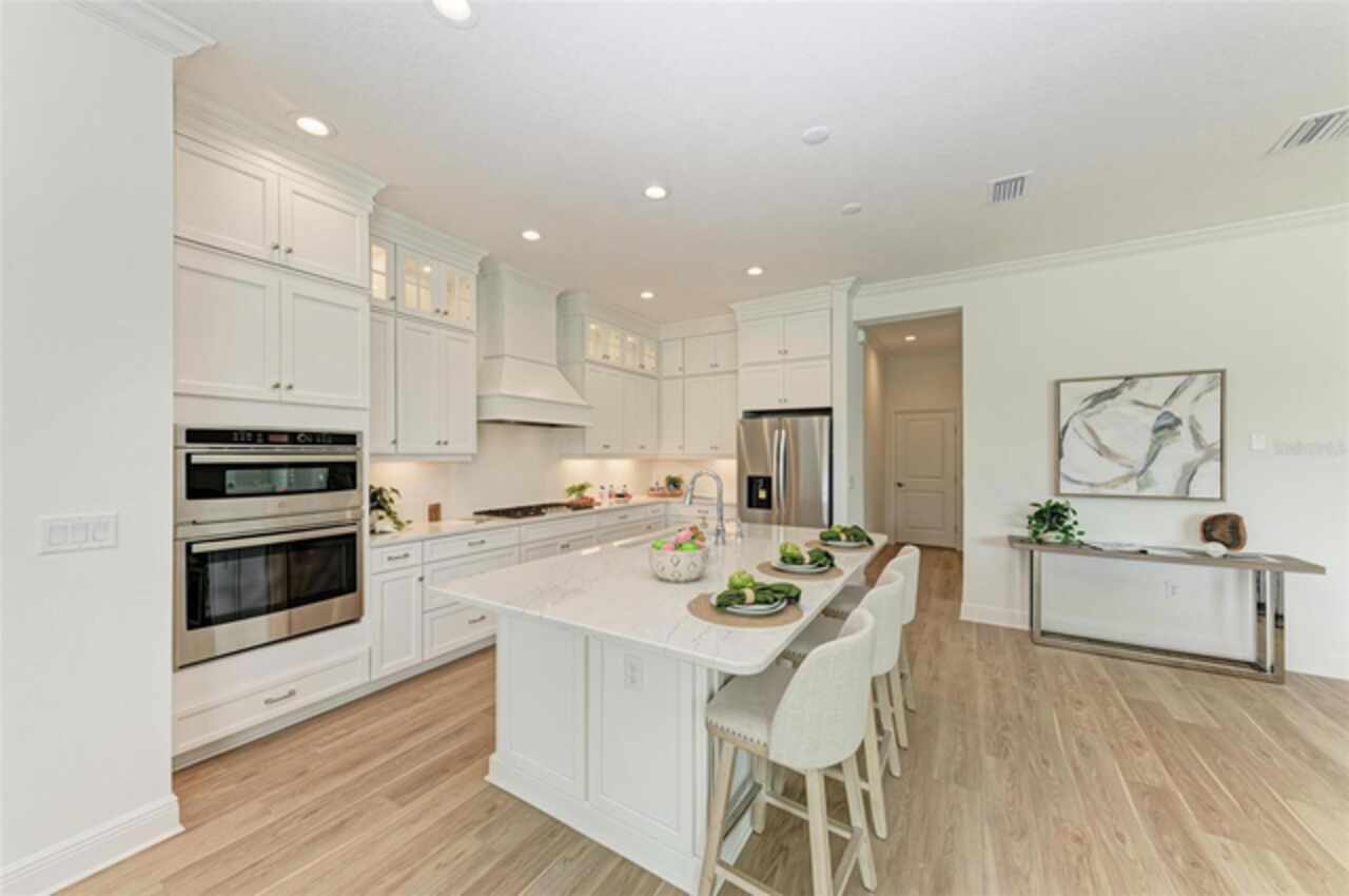 MOTIVATED SELLER! AMAZING PRICE REDUCTION! BRAND NEW HOME IS READY NOW - This Captiva plan home boasts in luxurious upgrades and is perfectly situated on a premium waterfront homesite in the gated Canoe Creek community. With picturesque lake views, a serene preserve backdrop, and a scenic walking path, the property offers unmatched tranquility with no front-facing neighbors. Skip the long building process and begin enjoying this exquisite home immediately! As one of the final homes in the Coastal Collection for this phase, this residence occupies one of the largest homesites in the community, providing both space and exclusivity. A welcoming front porch leads to a thoughtfully designed interior featuring an extended 3-car garage, IMPACT-RESISTANT windows and sliders, and an elegant glass entry door. Inside, the open-concept layout showcases luxury vinyl plank flooring throughout (no carpet!), a versatile bonus room with double doors, a private den/office, and two generously sized guest bedrooms. One of the guest bedrooms offers an en-suite bathroom, ensuring comfort and privacy for visitors. Crown molding and tray ceilings with detailed finishes in the owner’s suite, club/bonus room, and great room elevate the home’s sophisticated ambiance. The chef’s kitchen is a true showpiece, complete with custom double-stacked cabinetry with lighting, soft-close drawers, pull-out shelving, a custom curved hood, and a spacious island featuring decorative panels and a scratch-resistant undermount sink. High-end appliances include a five-burner Fulgar Milano gas cooktop, a built-in oven, a convection/microwave oven, and a stainless-steel dishwasher—all complemented by stunning quartz countertops. The owner’s suite is bathed in natural light and features an expansive closet and a spa-like en-suite bathroom with a large walk-in shower, designer tilework, quartz countertops, and premium fixtures. Designed for seamless indoor-outdoor living, the home boasts an extended lanai with multiple entertainment areas, accessible from the great room, dining room, and bonus room. The lanai includes a built-in outdoor kitchen with granite countertops and space for a private pool—perfect for entertaining or relaxing in style. Additional features include smart home technology, pre-wiring for a security system, a wireless access point, epoxy-speckled garage flooring, upgraded pantry shelving, and a large laundry room with upper cabinets and a laundry sink. Canoe Creek is a low-maintenance community with NO CDD fees, offering an array of amenities such as a lagoon-style pool, spa, fitness center, clubhouse, pickleball courts, a dog park, community events, and an on-site Lifestyle Director. Its prime location provides easy access to Lakewood Ranch, the Manatee River, Sarasota, St. Petersburg, and Tampa. It’s also conveniently close to Gamble Creek Farmer’s Market for fresh local produce and goods. Elevate your lifestyle with this incredible home and the exceptional community of Canoe Creek!