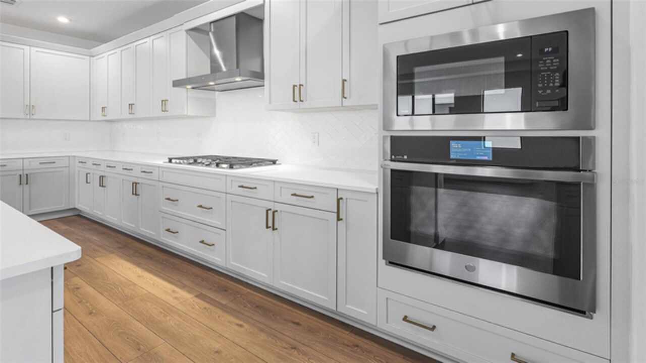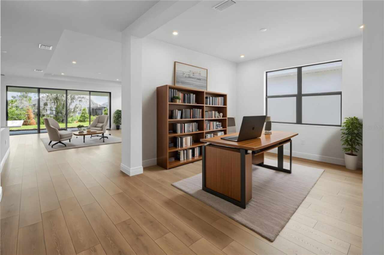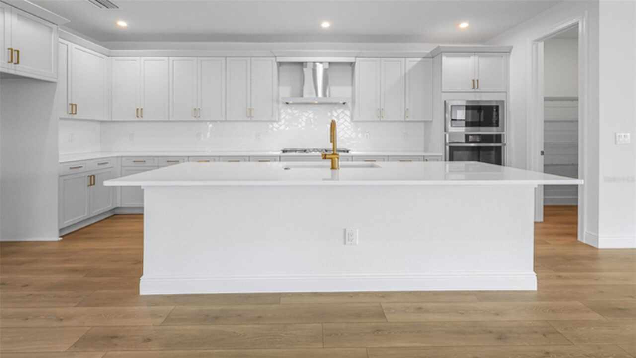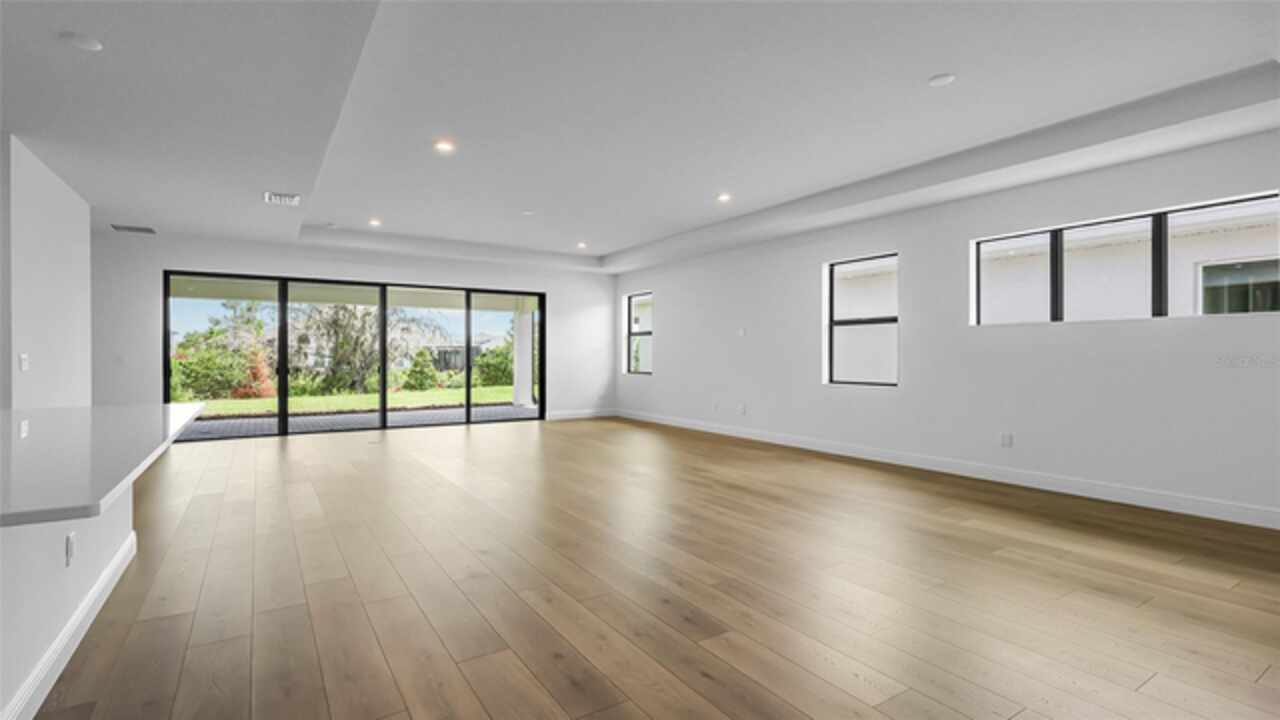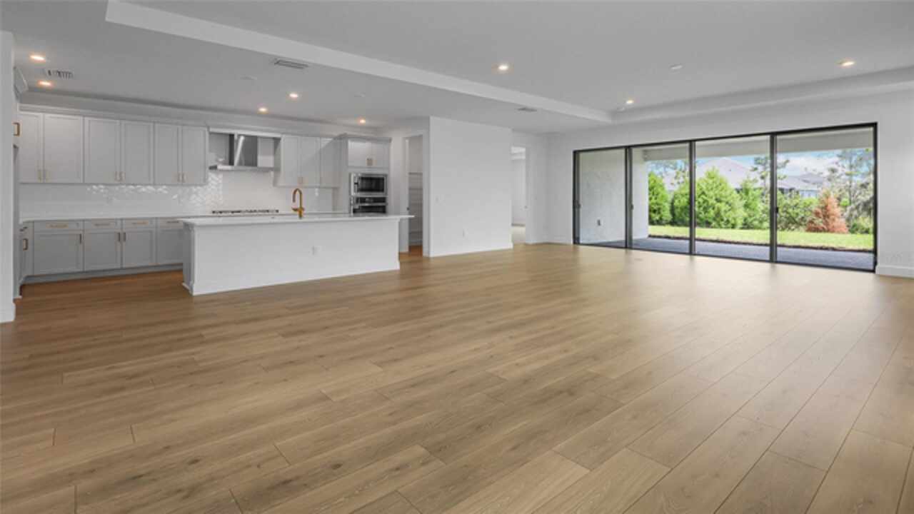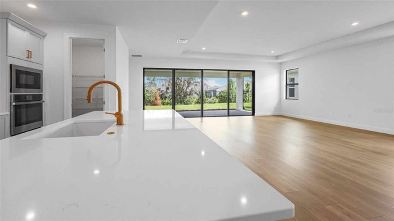 **New Construction** Move in Ready. Welcome to the Morgan, a 3-Bedroom, 3-Bath home with a Den and a spacious 2-Car Garage. The chef’s kitchen features quartz countertops, Level 2 cabinetry, crown moulding, and top-of-the-line GE PROFILE appliances. Every detail—from the built-in refrigerator facade to specialized cabinet features like rollouts, dividers, and a double trash system—has been curated for those who love to cook and entertain. The great room enhanced by a dramatic 16-foot-wide, 8-foot-tall sliding glass door. This architectural feature opens the home to natural light and extends the living space onto the lanai, seamlessly blending indoor and outdoor living. The versatile flex space is ideal for anything from a formal dining room to a game lounge or creative studio. Meanwhile, the extended Owner’s Suite offers a serene retreat, tucked privately at the rear of the home and appointed with thoughtful details like a tray ceiling, split vanities, and an expansive wrap-around walk-in closet.
