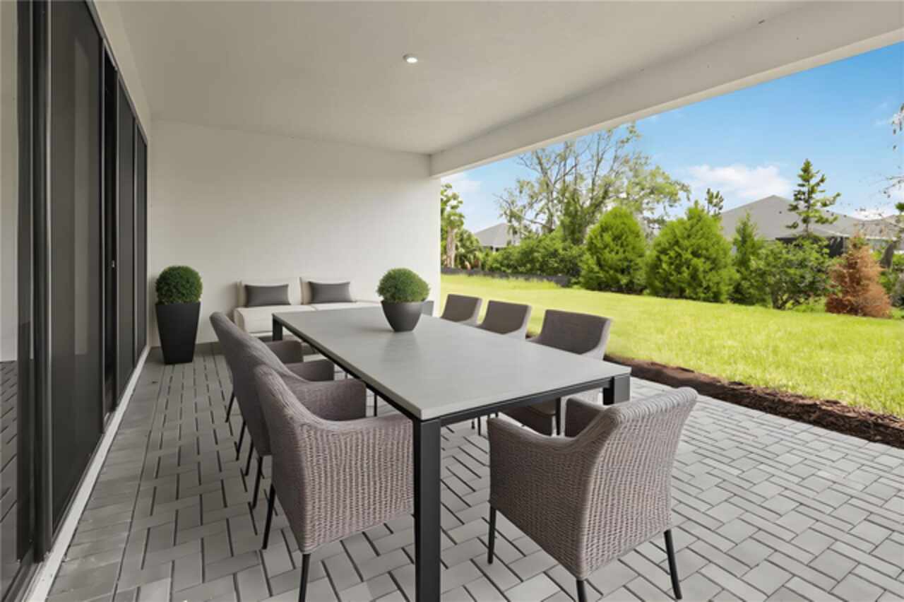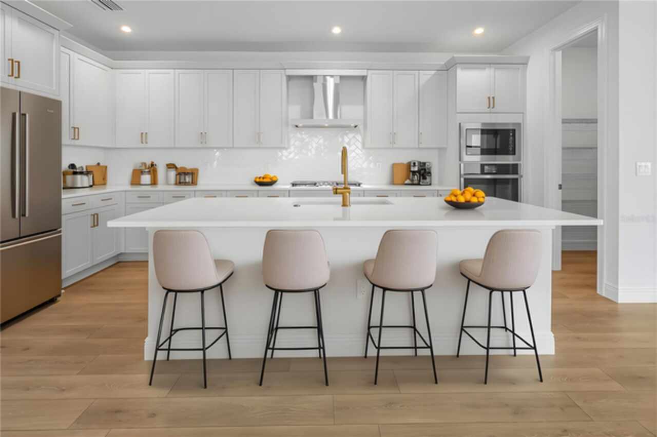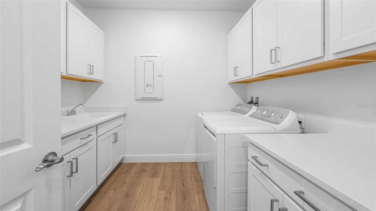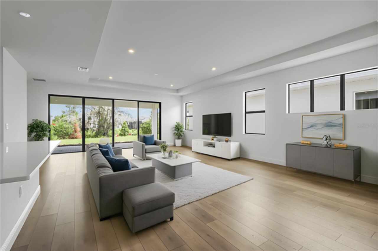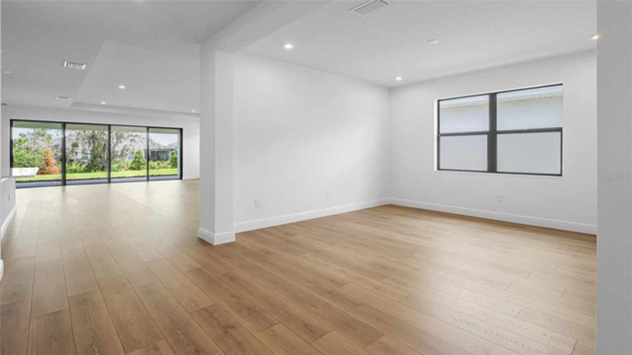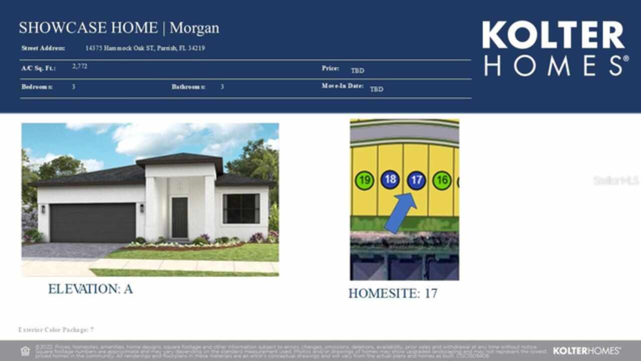 **New Construction** Move in Ready. Welcome to the Morgan, a 3-Bedroom, 3-Bath home with a Den and a spacious 2-Car Garage. The chef’s kitchen features quartz countertops, Level 2 cabinetry, crown moulding, and top-of-the-line GE PROFILE appliances. Every detail—from the built-in refrigerator facade to specialized cabinet features like rollouts, dividers, and a double trash system—has been curated for those who love to cook and entertain. The great room enhanced by a dramatic 16-foot-wide, 8-foot-tall sliding glass door. This architectural feature opens the home to natural light and extends the living space onto the lanai, seamlessly blending indoor and outdoor living. The versatile flex space is ideal for anything from a formal dining room to a game lounge or creative studio. Meanwhile, the extended Owner’s Suite offers a serene retreat, tucked privately at the rear of the home and appointed with thoughtful details like a tray ceiling, split vanities, and an expansive wrap-around walk-in closet.