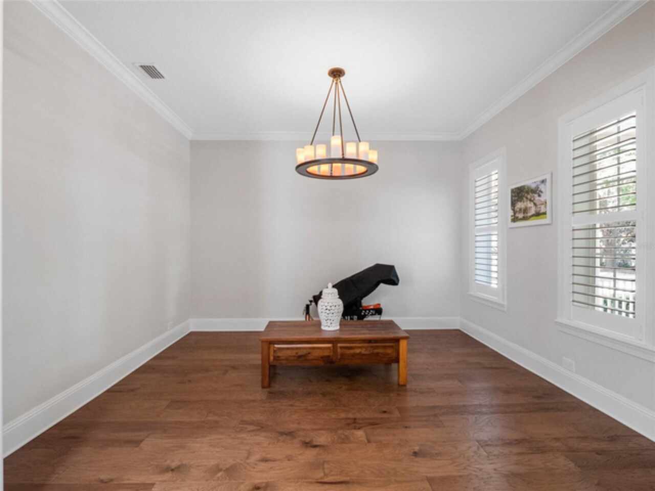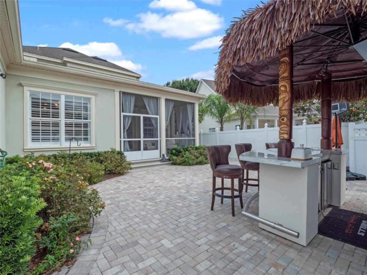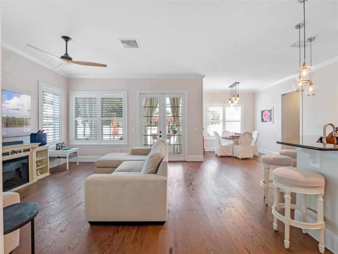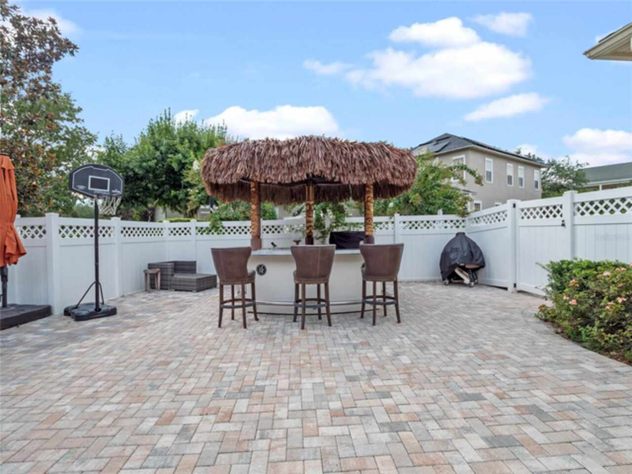 Comfort meets elegance in this spacious 4-bedroom, 3.5-bathroom, 3-car garage Artisan Park home situated on an oversized, professionally landscaped lot. New roof in 2025. Extensively upgraded in 2018 this home is a must see. Notable features in the home include spacious first floor master, high-end hickory wood floors throughout, staircase rebuilt in 2018, premium hardware and hinges on all interior doors, interior and exterior ceiling fans, crown molding on the first & second floors, 7-inch baseboards, high ceilings, high end custom plantation shutters including all exterior doors, stainless steel kitchen appliances, professionally painted (white) cherry cabinets in kitchen and bathrooms (with under-lighting in kitchen), stone backsplash, granite counter tops, custom closets, premium A/C units - 2018 (with 16 seer, UV lights, and humidity control), remote control blind in window at staircase landing, all bathrooms upgraded with new fixtures and hardware in 2018, and air conditioned garage. Ownership includes exclusive resident access to the Artisan Park Clubhouse with benefits including a fitness center, resort style swimming pool and spa, billiards room, outdoor kitchen, restaurant/bar, plus banquet room. Celebration, FL is a residential community where families can enjoy parks, playgrounds, community pools and expansive nature trails, over 26 miles of walking/biking trails and an abundant venue of entertainment and elegant dining options right in town - they are all yours to luxuriate in from sun up to sun down! The following items do not convey with the sale: Dining Room Chandlier, All bedroom ceiling light fixtures, Kitchen droplights over breakfast bar, kitchen droplights over kitchen table, living room fan, garage refrigerator, garage cabinetry and tool storage, garage wall cabinets.