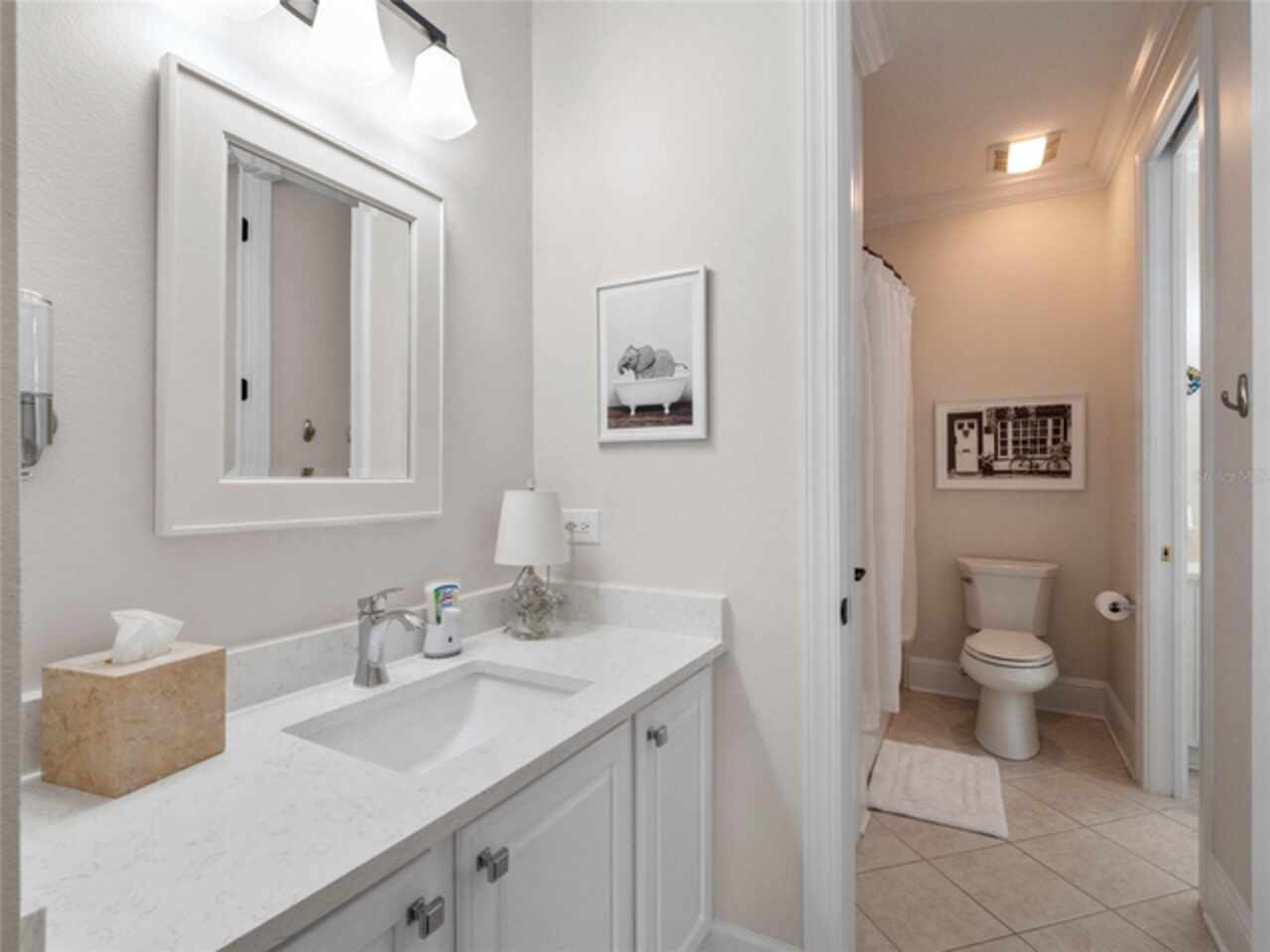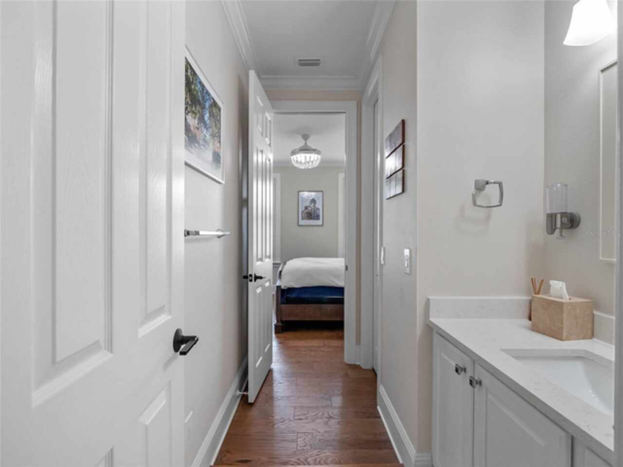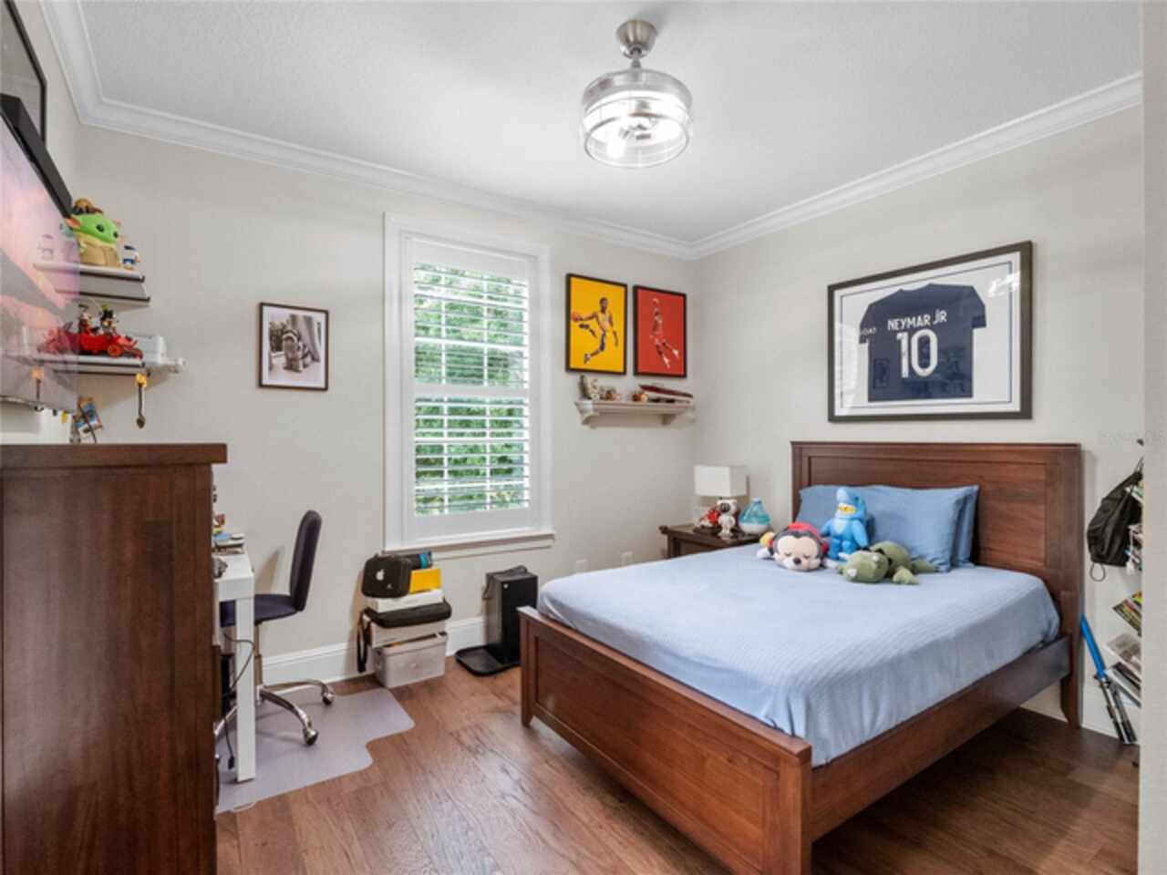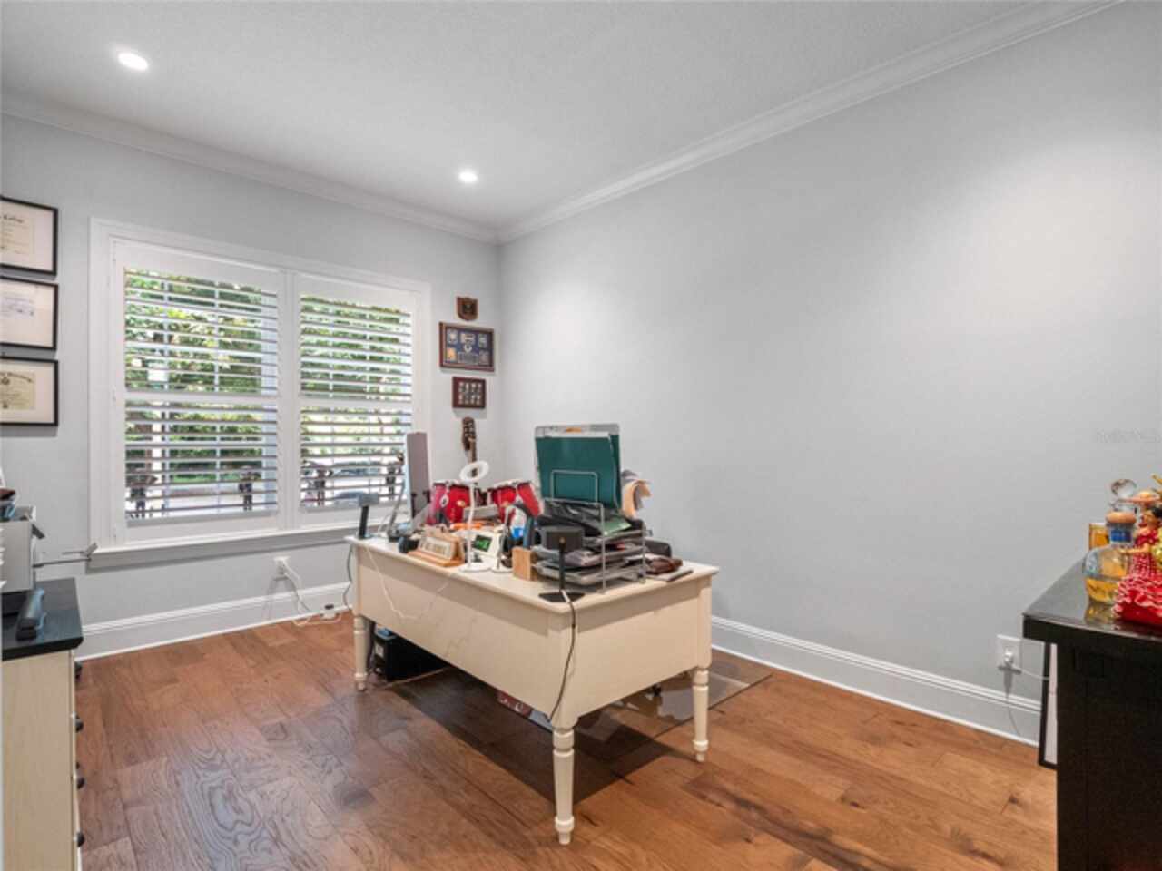 Comfort meets elegance in this spacious 4-bedroom, 3.5-bathroom, 3-car garage Artisan Park home situated on an oversized, professionally landscaped lot. New roof in 2025. Extensively upgraded in 2018 this home is a must see. Notable features in the home include spacious first floor master, high-end hickory wood floors throughout, staircase rebuilt in 2018, premium hardware and hinges on all interior doors, interior and exterior ceiling fans, crown molding on the first & second floors, 7-inch baseboards, high ceilings, high end custom plantation shutters including all exterior doors, stainless steel kitchen appliances, professionally painted (white) cherry cabinets in kitchen and bathrooms (with under-lighting in kitchen), stone backsplash, granite counter tops, custom closets, premium A/C units - 2018 (with 16 seer, UV lights, and humidity control), remote control blind in window at staircase landing, all bathrooms upgraded with new fixtures and hardware in 2018, and air conditioned garage. Ownership includes exclusive resident access to the Artisan Park Clubhouse with benefits including a fitness center, resort style swimming pool and spa, billiards room, outdoor kitchen, restaurant/bar, plus banquet room. Celebration, FL is a residential community where families can enjoy parks, playgrounds, community pools and expansive nature trails, over 26 miles of walking/biking trails and an abundant venue of entertainment and elegant dining options right in town - they are all yours to luxuriate in from sun up to sun down! The following items do not convey with the sale: Dining Room Chandlier, All bedroom ceiling light fixtures, Kitchen droplights over breakfast bar, kitchen droplights over kitchen table, living room fan, garage refrigerator, garage cabinetry and tool storage, garage wall cabinets.