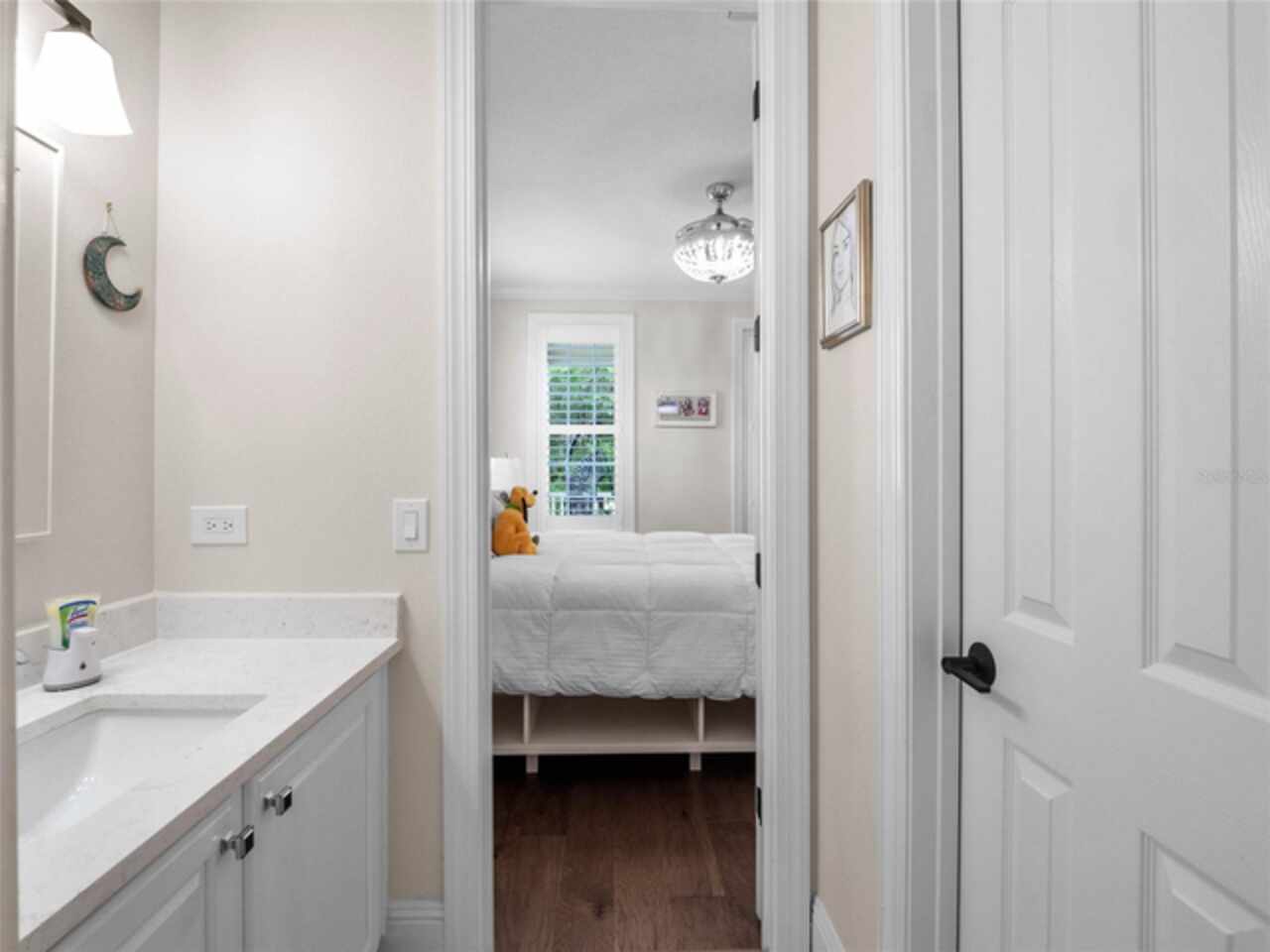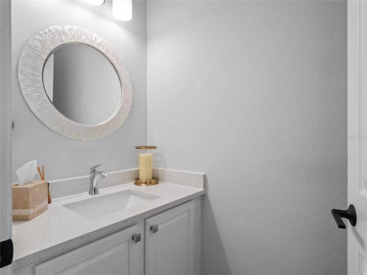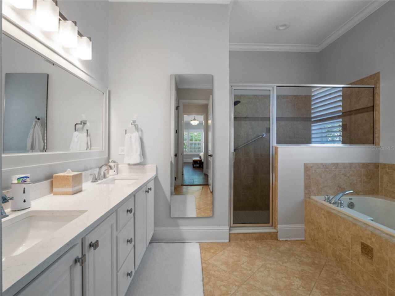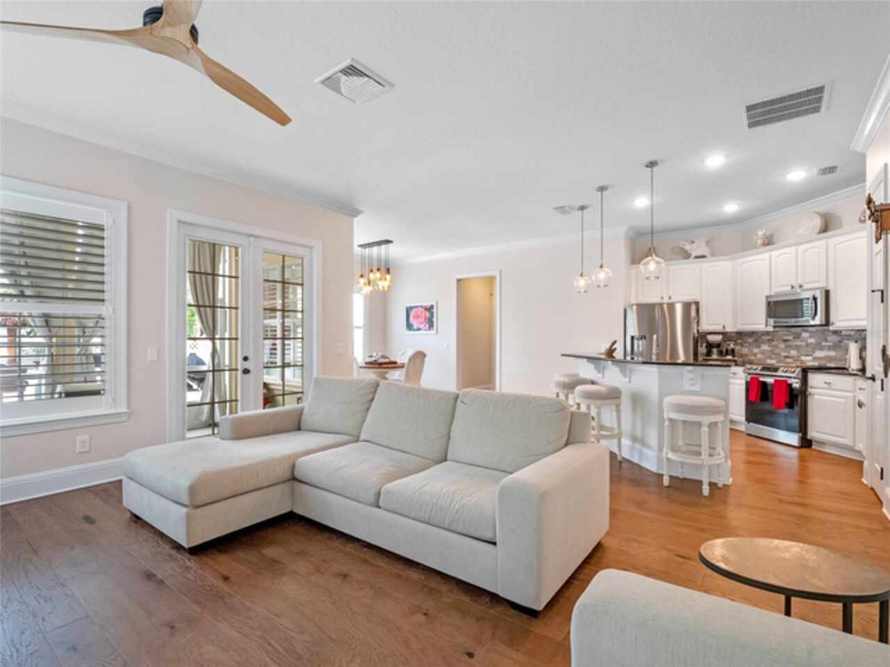 Comfort meets elegance in this spacious 4-bedroom, 3.5-bathroom, 3-car garage Artisan Park home situated on an oversized, professionally landscaped lot. New roof in 2025. Extensively upgraded in 2018 this home is a must see. Notable features in the home include spacious first floor master, high-end hickory wood floors throughout, staircase rebuilt in 2018, premium hardware and hinges on all interior doors, interior and exterior ceiling fans, crown molding on the first & second floors, 7-inch baseboards, high ceilings, high end custom plantation shutters including all exterior doors, stainless steel kitchen appliances, professionally painted (white) cherry cabinets in kitchen and bathrooms (with under-lighting in kitchen), stone backsplash, granite counter tops, custom closets, premium A/C units - 2018 (with 16 seer, UV lights, and humidity control), remote control blind in window at staircase landing, all bathrooms upgraded with new fixtures and hardware in 2018, and air conditioned garage. Ownership includes exclusive resident access to the Artisan Park Clubhouse with benefits including a fitness center, resort style swimming pool and spa, billiards room, outdoor kitchen, restaurant/bar, plus banquet room. Celebration, FL is a residential community where families can enjoy parks, playgrounds, community pools and expansive nature trails, over 26 miles of walking/biking trails and an abundant venue of entertainment and elegant dining options right in town - they are all yours to luxuriate in from sun up to sun down! The following items do not convey with the sale: Dining Room Chandlier, All bedroom ceiling light fixtures, Kitchen droplights over breakfast bar, kitchen droplights over kitchen table, living room fan, garage refrigerator, garage cabinetry and tool storage, garage wall cabinets.