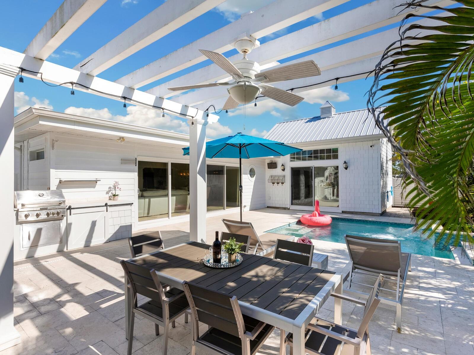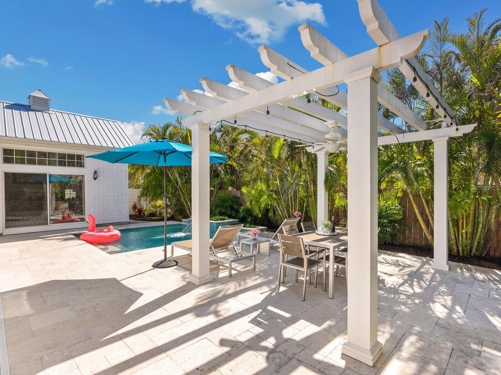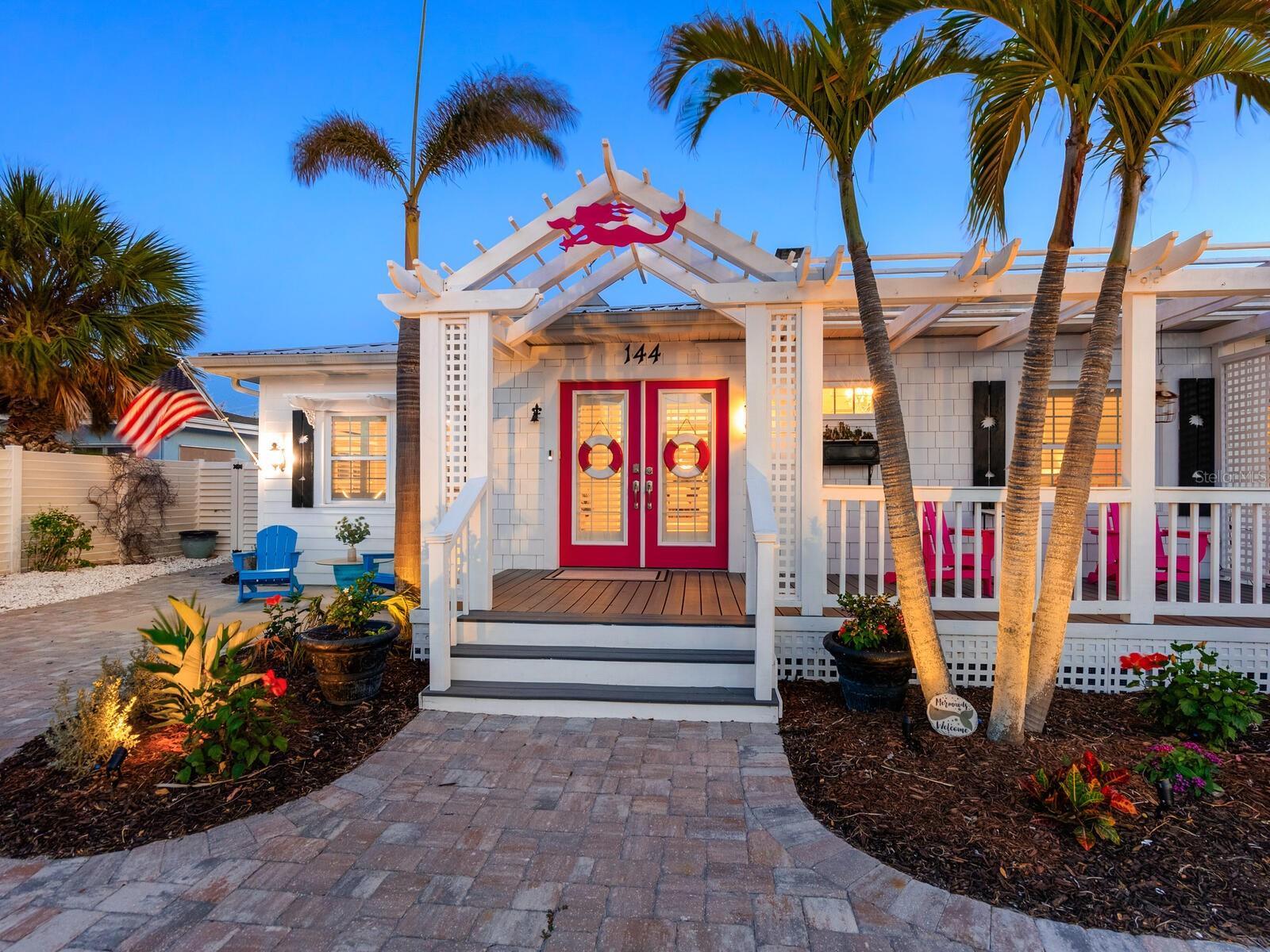 Move-in ready! Gorgeous main house is a three-bedroom, three-bath home. There is also an attached one-bedroom, one-bath guest suite with private entrance, private deck, full kitchen, laundry and living room. Just half a block from Lido Beach, this beautifully updated beach house offers a blend of luxury, charm and modern convenience. Featuring high-end finishes throughout, the spacious open floor plan is filled with natural light, creating a warm and inviting coastal ambiance. The chef’s kitchen is a dream, boasting Bosch appliances, a Smeg gas stove, and a massive island that seats more than six. A split floor plan ensures privacy, with the primary suite serving as a retreat, complete with a spa-like bath, a freestanding soaking tub, a large walk-in closet and sliding doors leading directly to the pool. Two additional bedrooms provide comfort, one with an en-suite full bath and the other with a half bath and outdoor shower. The home features a gas fireplace and a wood-burning fireplace, real solid wood floors and marble in the baths. Outside, the heated swimming pool is surrounded by travertine pavers, lush tropical landscaping, a pergola and outdoor grill. A charming front porch and additional storage shed add to the home’s appeal. Additionally, the guest apartment provides excellent short-term rental income potential, as the property allows for a seven-day minimum rental. The location is unbeatable, just minutes from St. Armands Circle, known for its premier shopping, dining and entertainment. Outdoor enthusiasts will love the proximity to Ted Sperling Nature Park for kayaking and South Lido Park for trails and playgrounds. Whether as a primary residence, vacation home or investment property, this coastal retreat is a rare opportunity to own a piece of paradise near Lido Beach. Schedule your private showing today!