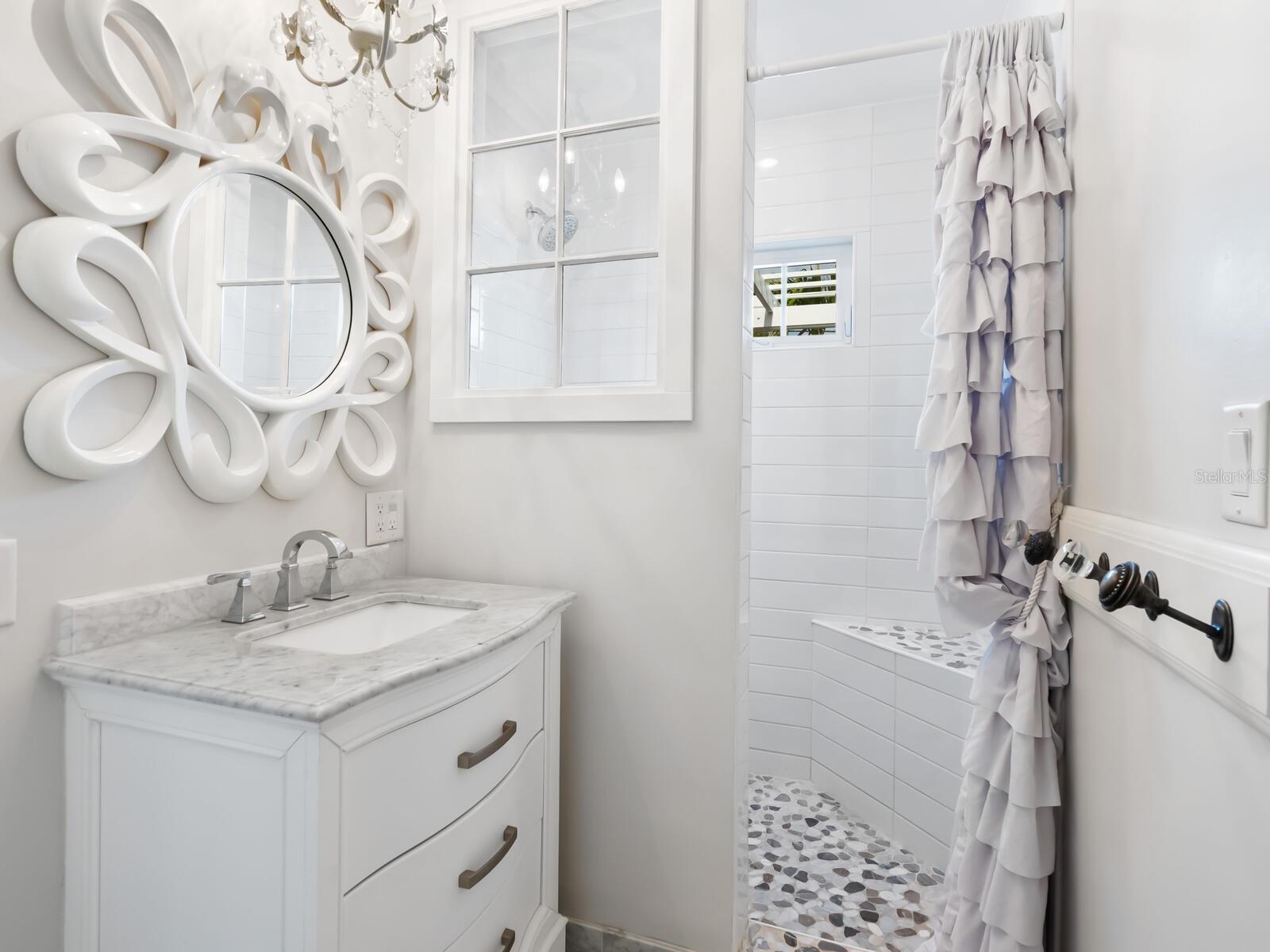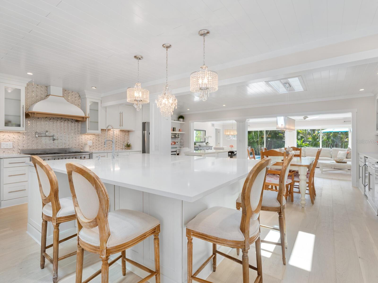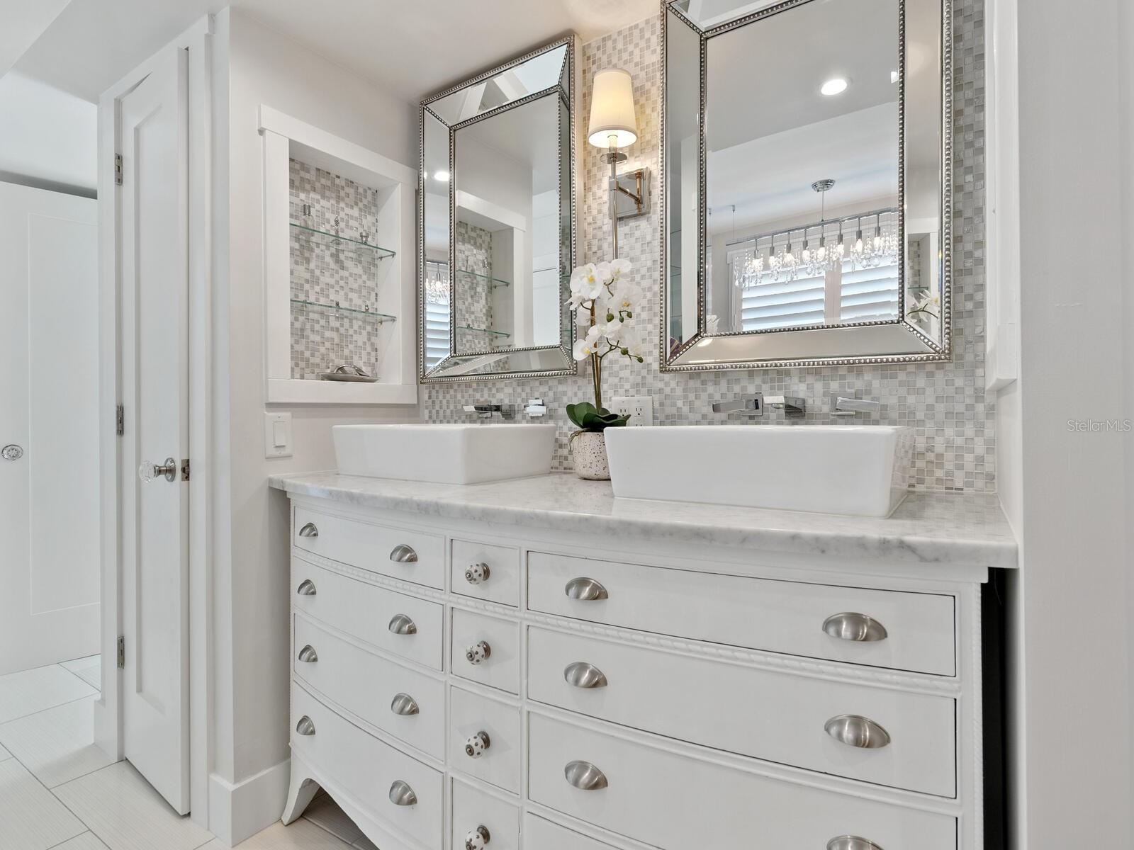 Move-in ready! Gorgeous main house is a three-bedroom, three-bath home. There is also an attached one-bedroom, one-bath guest suite with private entrance, private deck, full kitchen, laundry and living room. Just half a block from Lido Beach, this beautifully updated beach house offers a blend of luxury, charm and modern convenience. Featuring high-end finishes throughout, the spacious open floor plan is filled with natural light, creating a warm and inviting coastal ambiance. The chef’s kitchen is a dream, boasting Bosch appliances, a Smeg gas stove, and a massive island that seats more than six. A split floor plan ensures privacy, with the primary suite serving as a retreat, complete with a spa-like bath, a freestanding soaking tub, a large walk-in closet and sliding doors leading directly to the pool. Two additional bedrooms provide comfort, one with an en-suite full bath and the other with a half bath and outdoor shower. The home features a gas fireplace and a wood-burning fireplace, real solid wood floors and marble in the baths. Outside, the heated swimming pool is surrounded by travertine pavers, lush tropical landscaping, a pergola and outdoor grill. A charming front porch and additional storage shed add to the home’s appeal. Additionally, the guest apartment provides excellent short-term rental income potential, as the property allows for a seven-day minimum rental. The location is unbeatable, just minutes from St. Armands Circle, known for its premier shopping, dining and entertainment. Outdoor enthusiasts will love the proximity to Ted Sperling Nature Park for kayaking and South Lido Park for trails and playgrounds. Whether as a primary residence, vacation home or investment property, this coastal retreat is a rare opportunity to own a piece of paradise near Lido Beach. Schedule your private showing today!