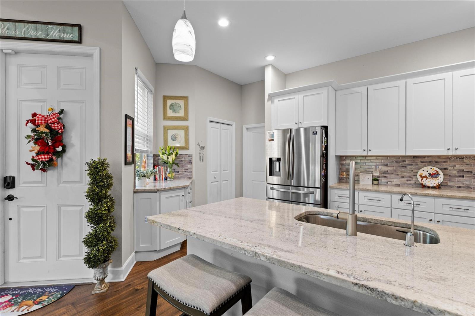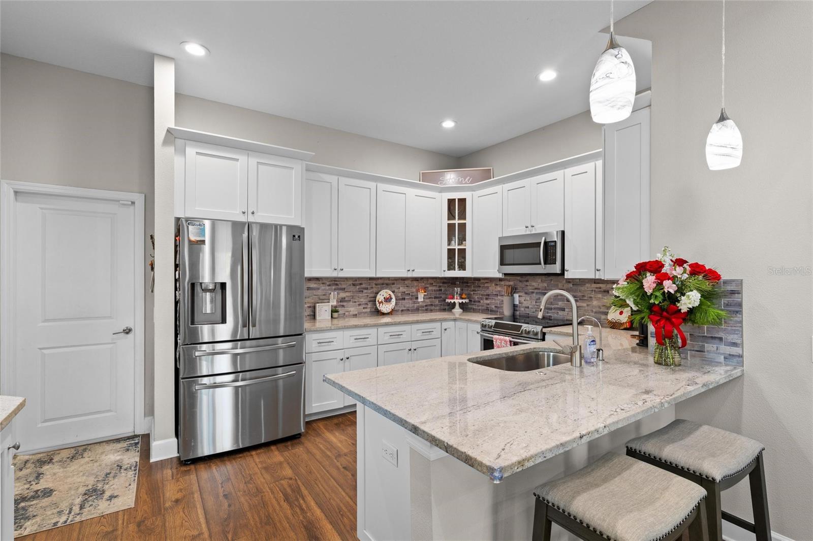 Welcome home to this lovely zero maintenance 3 Bedroom 2 1/2 bath Townhome. The home sits on what I consider the nicest homesite in the community. It's an end unit located in a Cul-De-Sac that backs up to a very tranquil pond, with visits from all kinds of wildlife and species of Birdlife. I.E. Turtles, Otter, Owls, Egret. There's an old expression when someone says just minutes from everything. This home is just that. The Pinellas Trail sits right outside the sub-division. The Famous Sponge docks is a stone's throw away. The Hospital is right up the street. There is plenty of Golf and the Gulf activities within your home's vicinity. Fred Howard Park and Honeymoon Island and Caladesi Island Park is spectacular. And now on to the home. Soaring ceilings and lots of natural light delivered from the extra end unit windows. Very open floor plan from the kitchen dining and family room that flows to the screened lanai and beautiful newly installed 2025 pavered open decking. In 2022 the owner installed a new Pentair water filtration and reverse osmosis system The kitchen has been remodeled with top-of-the-line appliances with a double oven with a convection function and a smooth top Samsung cooktop. Theres a French door fridge with double drawers all tied together with stone counter tops and the backsplash has been upgraded with a watercolor washed look. There is an extra cabinet that was added under the window that make a lovely Coffee bar. Can you smell the Coffee :):) LOL There is Luxury Vinyl laminate and ceramic tile throughout the home ZERO CARPET. The Primary bedroom is on the ground floor and has a huge walk-in shower with floor to ceiling subway tile with seamless glass doors. Lots of counter space and dual, sinks there are two closets with organizers in both. OH LALA Upstairs there are 2 bedrooms a full bath and a loft. the back bedroom overlooks the pond. A new Washer/Dryer replaced in 2021 The garage was finished with colorful polyaspartic flooring (3x more durable than epoxy) And the garage is already set up for an EV