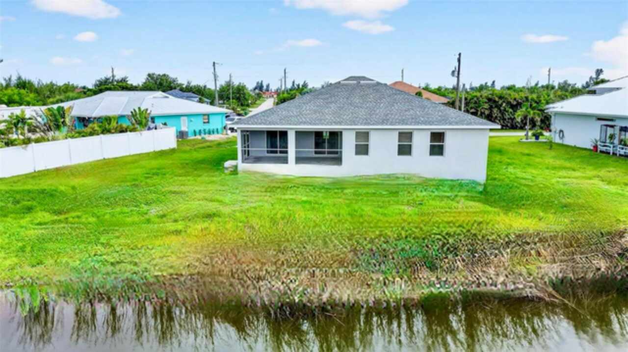 Stunning waterfront home in South Gulf Cove with AMAZING AND HIGHLY SOUGHT-AFTER INTERSECTING CANAL VIEWS! Welcome to this modern 3-bedroom + office, 2-bath home perfectly situated on a canal with direct access to Charlotte Harbor and the Gulf of Mexico. Built in 2022, this move-in ready property combines contemporary style with the best of Florida waterfront living. Step inside to an open, light-filled floor plan featuring a spacious great room, stylish kitchen with granite countertops, stainless steel appliances, and a split-bedroom layout for privacy. The dedicated office provides the perfect space for remote work or a flex room to suit your needs. Enjoy breathtaking water views from your covered lanai, or launch your boat for a day of fishing, cruising, or exploring the Gulf. With a canalfront setting in the desirable South Gulf Cove community, you’ll have easy access to world-class boating, pristine beaches, golf courses, and local dining. Don’t miss this rare opportunity to own a nearly new waterfront home in one of Southwest Florida’s most sought-after boating communities!