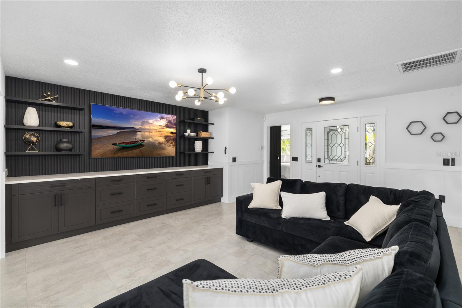 Beautifully renovated 3BD/2BA waterfront home offering 2, 043 sq ft of thoughtfully designed living space. This classic-meets-contemporary residence has been fully updated from top to bottom, blending clean modern style with the comfort and ease of Florida waterfront living. Inside, an open and sunlit floor plan features custom wood accent walls, upgraded solid-core doors, built-in closet systems, and designer lighting throughout. The kitchen is outfitted with custom cabinetry, quartz countertops, and new GE Café appliances, while both bathrooms include Moen fixtures, custom glass enclosures, and quality finishes. Major improvements—roof (2022), HVAC (2022), and new tankless water heater—ensure peace of mind. The backyard feels like a private retreat, complete with a hot tub/swim spa, zero-scaped landscaping, premium turf, and pavered outdoor living areas. A new vinyl privacy fence surrounds the space, while the reinforced seawall (estimated 10–15 years old with concrete pilings) and private dock with upgraded boat-lift cables provide long-term stability and convenience. The lift can accommodate boats up to 10, 000 lbs or approximately 25–27 feet. For added protection, the entire yard has been elevated by roughly 18 inches and supported by a solid block and concrete retaining wall—creating an effective secondary seawall and enhancing flood resilience. Ideally located, this home is just 10 minutes from Downtown St. Pete, 30 minutes to Tampa International Airport, and 25 minutes to the area’s renowned Gulf beaches. Stylish, move-in ready, and perfectly positioned—this waterfront home offers the best of St. Petersburg living.