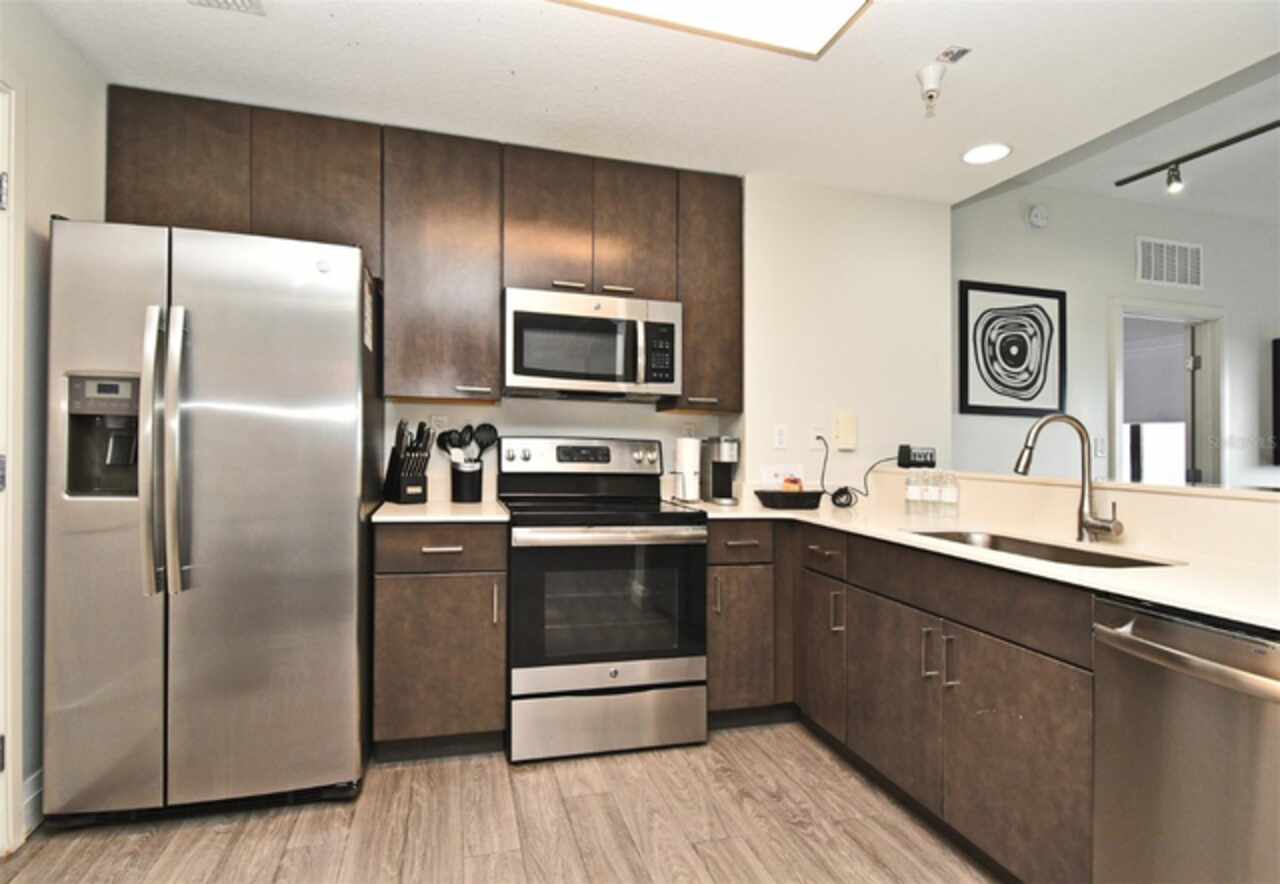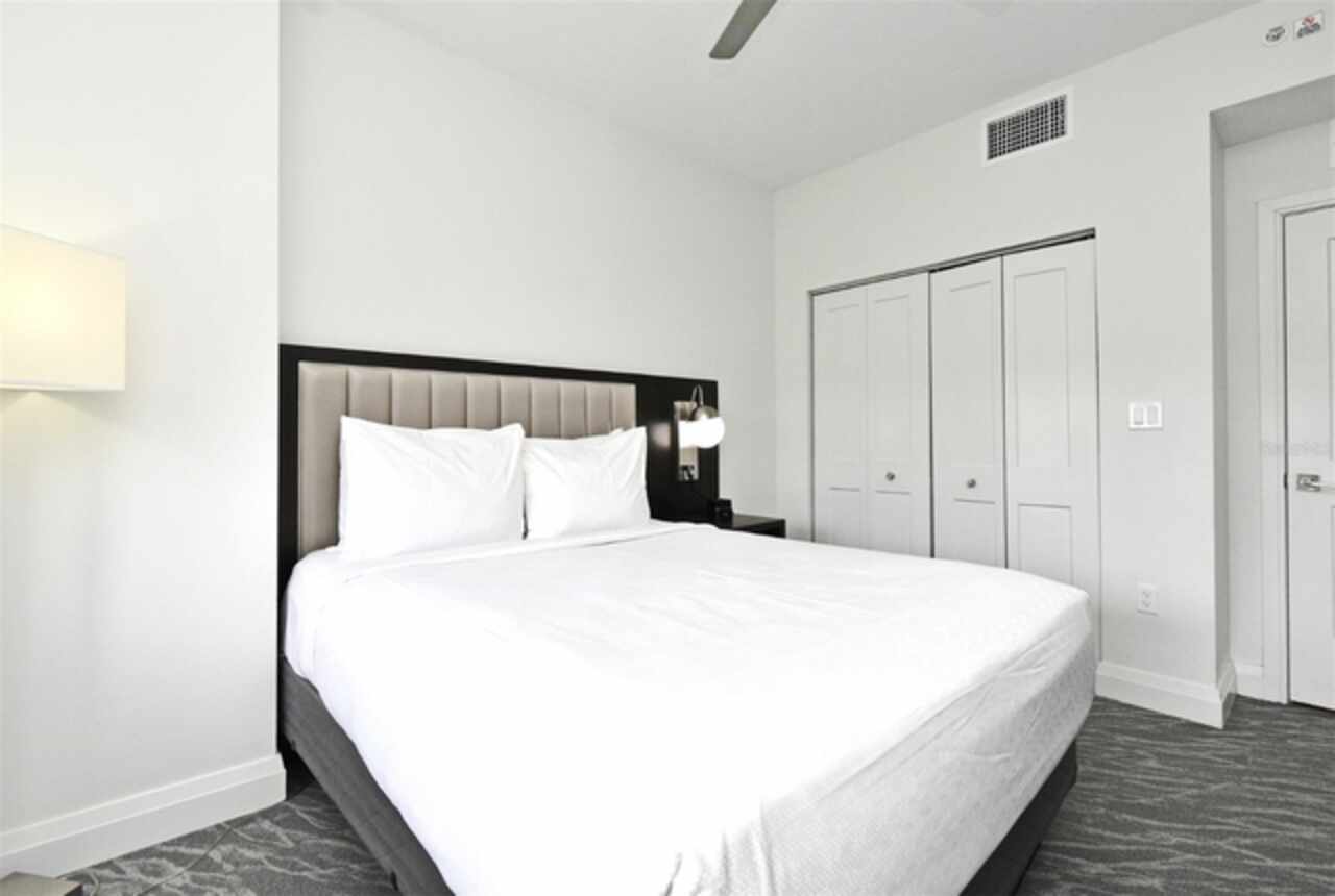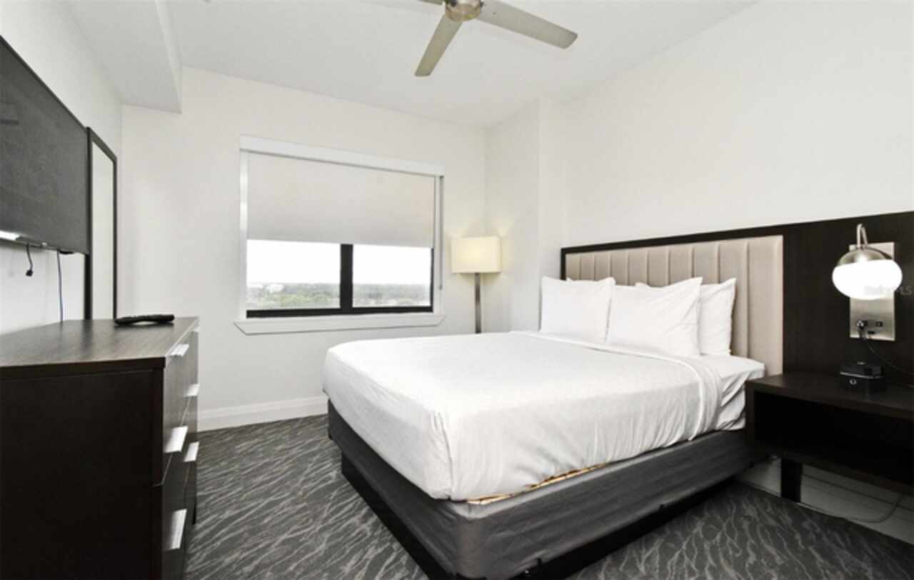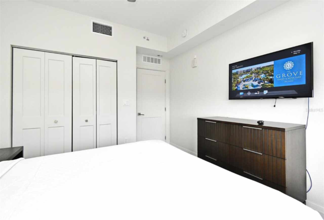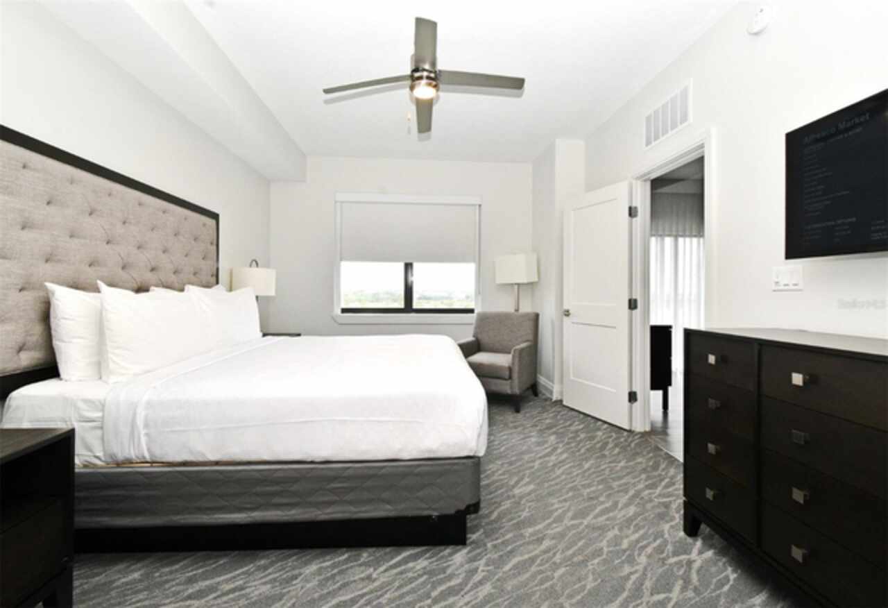 Welcome to this luxurious 3 bedroom, 2 bath vacation condo at the Grove Resort and Waterpark. This top floor condo is an ideal retreat for those looking to experience the Magic of Disney World and enjoy a wide range of amenities. Its proximity to Disney (just 6 miles away) and the shuttle service provided make it a convenient choice for guests. The inclusion of a water park, flow rider surf experience, spa, restaurant, business center, and inhouse market means that there's something for everyone. Whether you're seeking relaxation, adventure, or convenience the grove resort has it all. The covered parking adds an extra layer of convenience and protection for guests' vehicles. The unit is FULLY FURNISHED and tastefully decorated which provides a comfortable and inviting atmosphere. The quartz counter tops and modern cabinets in the kitchen and bathrooms add a touch of elegance. The open floor plan is conducive to relaxation and socializing, providing plenty of space for guests to unwind after a day at the parks or in the pool. The screened balcony overlooking a beautiful view of well-manicured palm trees and a serene, picturesque view is a major benefit to the unit. Given its desirable location and the range of amenities offered, it's clear why The Grove is a highly sought-after vacation spot. Overall, this condo is a fantastic investment opportunity for those looking to provide a memorable vacation experience to guests while also having a spot for their own enjoyment.