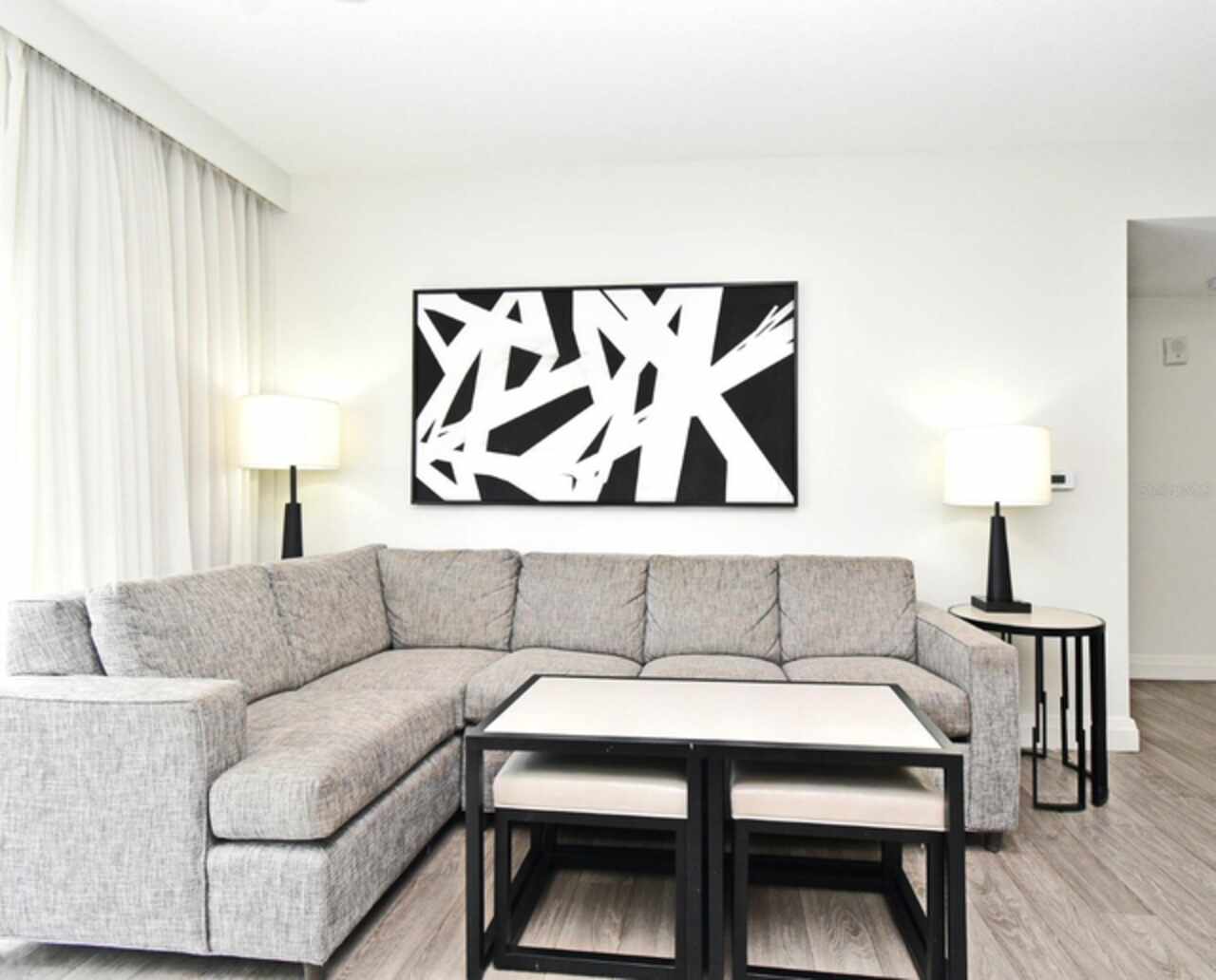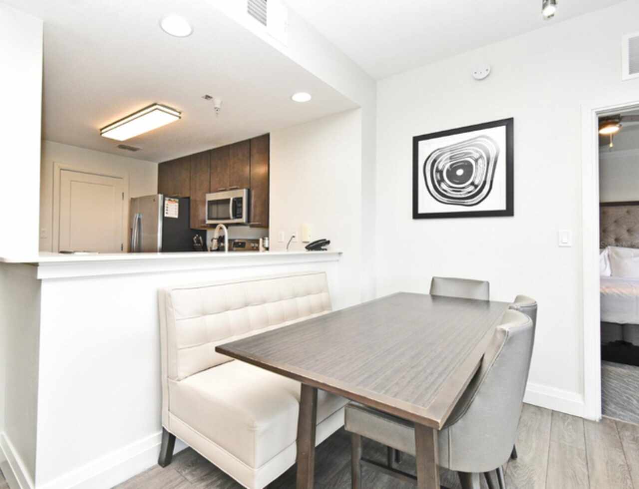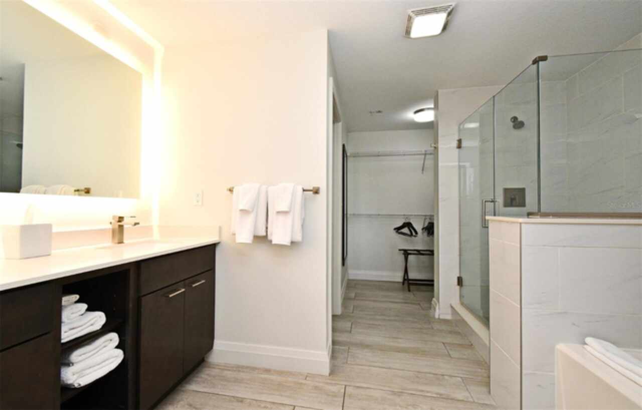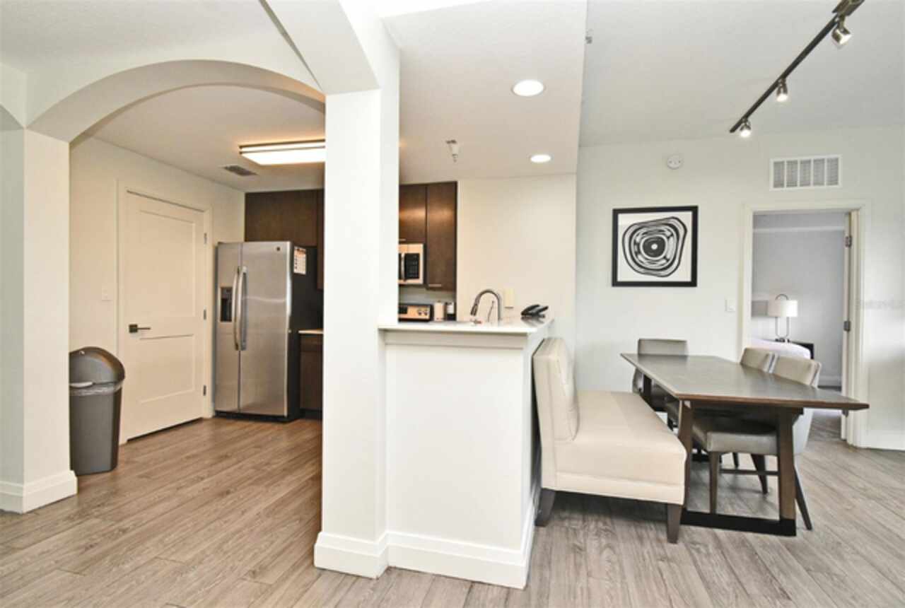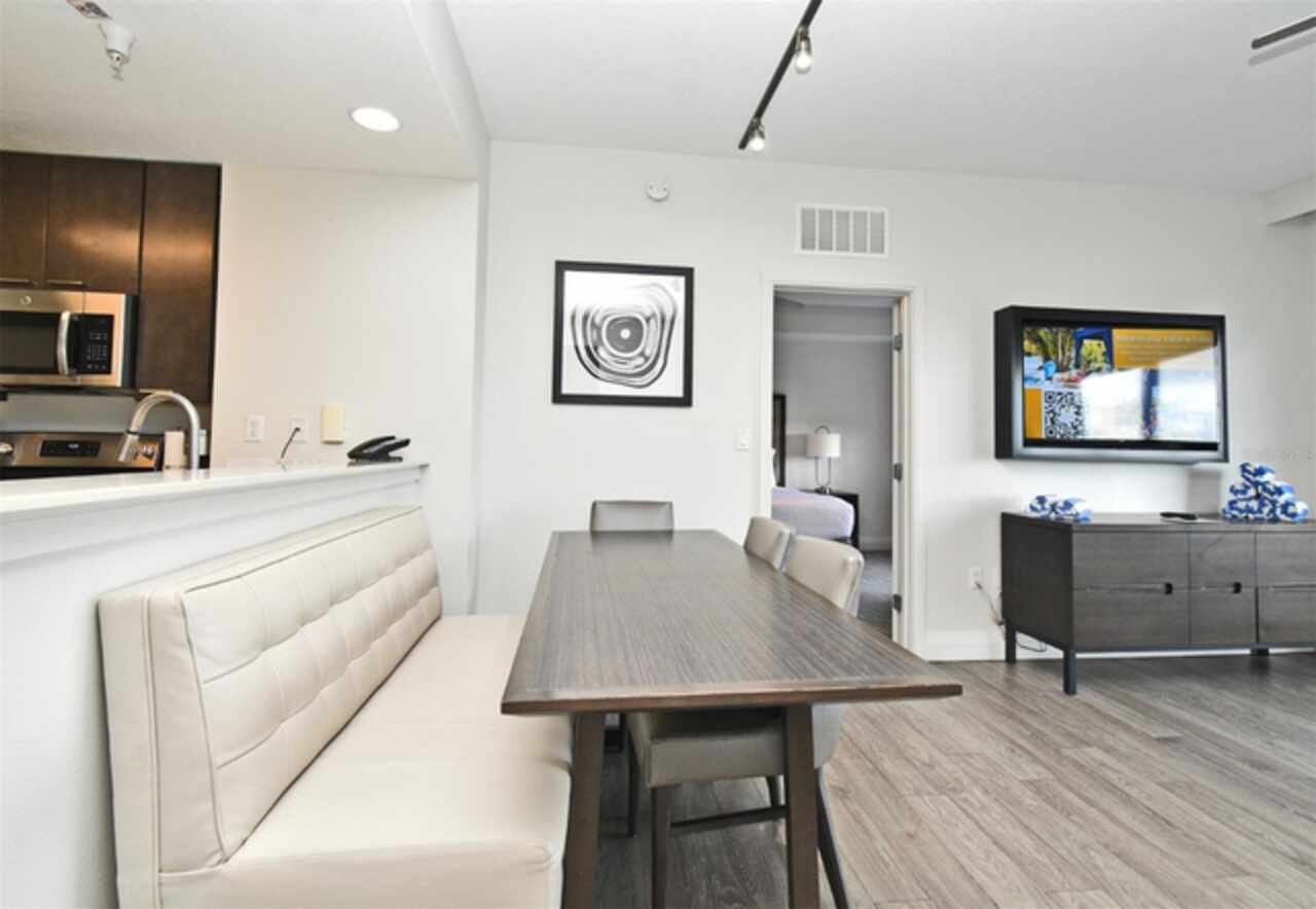 Welcome to this luxurious 3 bedroom, 2 bath vacation condo at the Grove Resort and Waterpark. This top floor condo is an ideal retreat for those looking to experience the Magic of Disney World and enjoy a wide range of amenities. Its proximity to Disney (just 6 miles away) and the shuttle service provided make it a convenient choice for guests. The inclusion of a water park, flow rider surf experience, spa, restaurant, business center, and inhouse market means that there's something for everyone. Whether you're seeking relaxation, adventure, or convenience the grove resort has it all. The covered parking adds an extra layer of convenience and protection for guests' vehicles. The unit is FULLY FURNISHED and tastefully decorated which provides a comfortable and inviting atmosphere. The quartz counter tops and modern cabinets in the kitchen and bathrooms add a touch of elegance. The open floor plan is conducive to relaxation and socializing, providing plenty of space for guests to unwind after a day at the parks or in the pool. The screened balcony overlooking a beautiful view of well-manicured palm trees and a serene, picturesque view is a major benefit to the unit. Given its desirable location and the range of amenities offered, it's clear why The Grove is a highly sought-after vacation spot. Overall, this condo is a fantastic investment opportunity for those looking to provide a memorable vacation experience to guests while also having a spot for their own enjoyment.