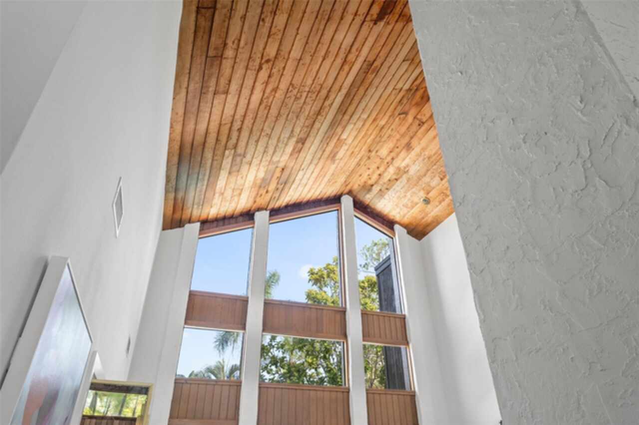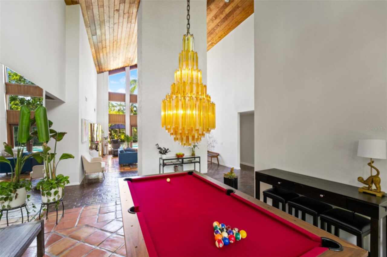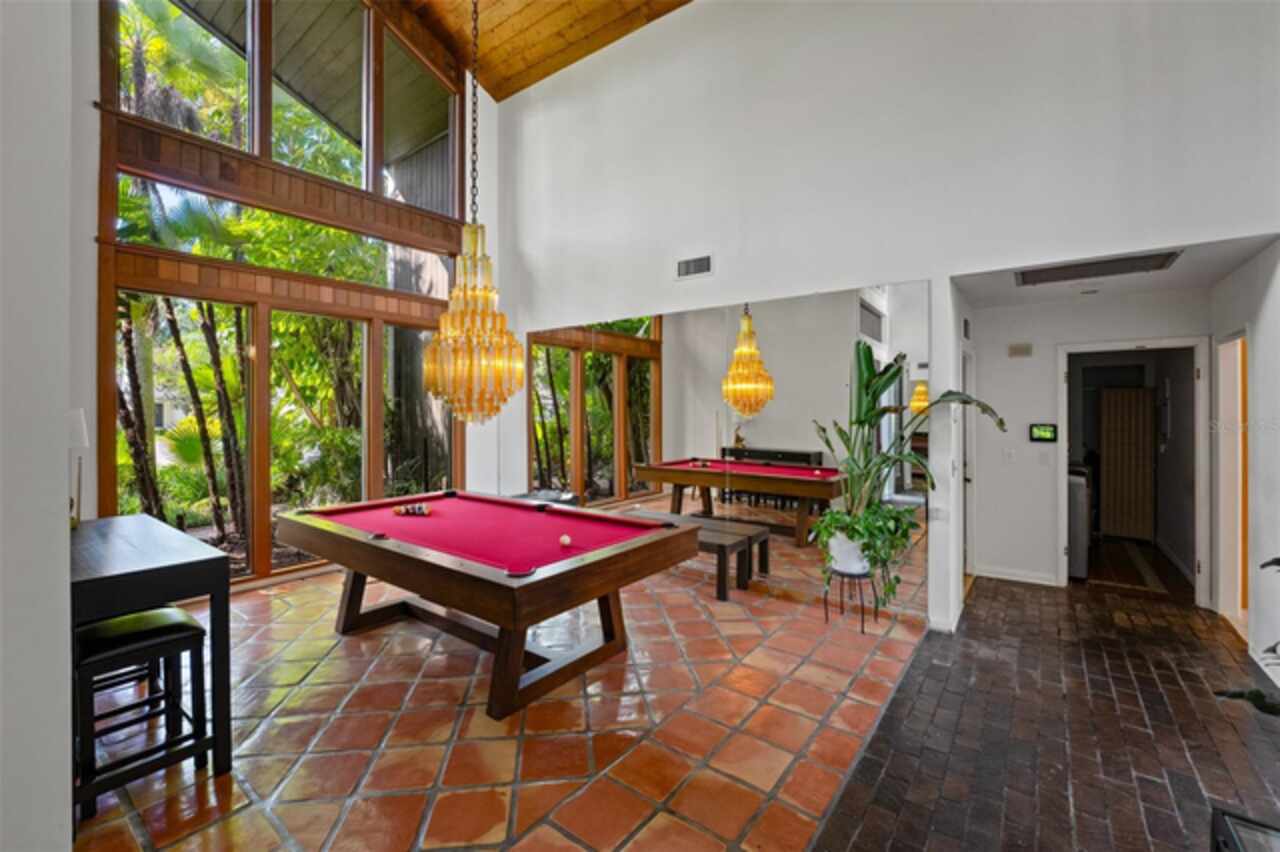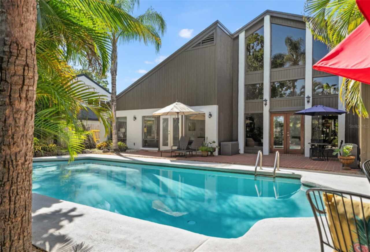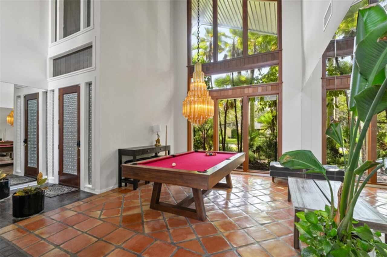 Welcome to 14506 Anchoret Road, a rare and remarkable mid-century modern gem nestled in the highly sought-after community of Carrollwood. This stunning 4-bedroom, 3-bathroom home offers a nostalgic escape into the timeless elegance of the 1970s while still embracing the comfort and flow of modern living. With dramatic architecture, soaring vaulted ceilings, and walls of windows that bathe the home in natural light, this residence is truly one of a kind. From the moment you arrive, you'll feel transported. Clean lines, angular details, and mature landscaping set the stage for what awaits inside. Step through the front door and be immediately greeted by a split floor plan filled with warmth, light, and character. The expansive living areas offer both a formal living room and a more relaxed family room—complete with a built in bar, ideal for entertaining in style. Two dining spaces give you the flexibility to host elegant dinners or casual game nights. Currently, one of the dining areas is playfully used as a billiards room, showcasing just how versatile this layout truly is. The oversized windows throughout the home create a seamless connection between indoors and out, flooding every room with sunshine and allowing views of the lush backyard oasis. Each of the four bedrooms is generously sized, offering ample room to unwind. The bathrooms are spacious as well, with thoughtful vintage touches and plenty of room to add your own flair. The architectural details—like original built-ins, dramatic ceiling heights, and period lighting—give this home soul, while still providing the footprint and flow today’s homeowners crave. And then there's the pool—your private retreat. Step outside to a sparkling backyard pool surrounded by tropical greenery and ample patio space for lounging, grilling, and soaking in the Florida sun. Whether you’re hosting weekend pool parties or enjoying a quiet evening under the stars, this outdoor space completes the full experience of mid-century Florida living. Additional peace of mind comes with a brand new roof installed in 2022, allowing you to move in with confidence and enjoy your home for years to come. Located in charming Carrollwood, you’re just minutes from Tampa’s best dining, shopping, and entertainment, yet tucked into a quiet, established neighborhood full of character. This is more than just a home—it’s a lifestyle, a design statement, and a piece of history. Don’t miss the opportunity to make this one-of-a-kind property yours.