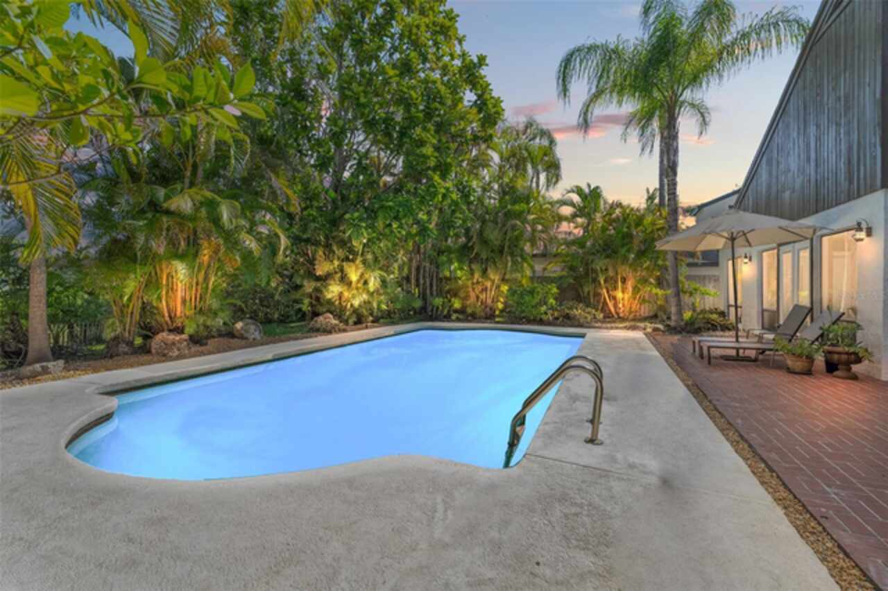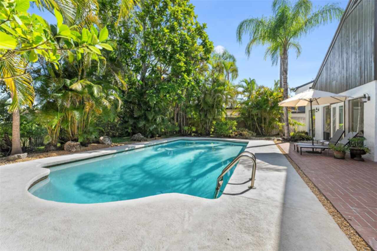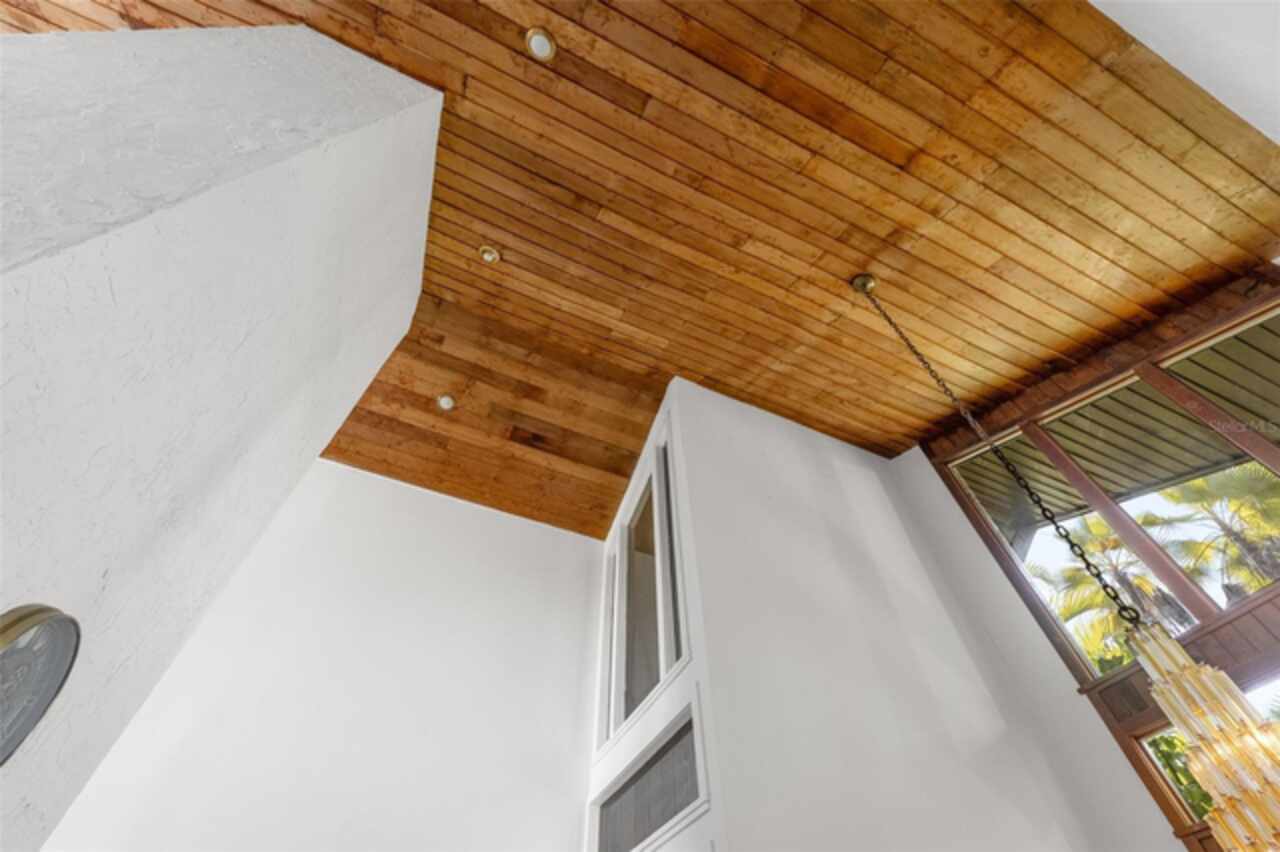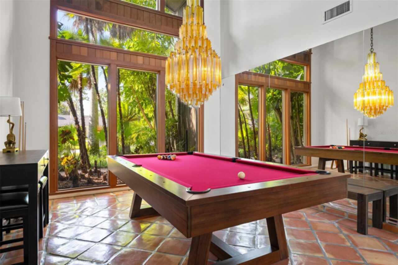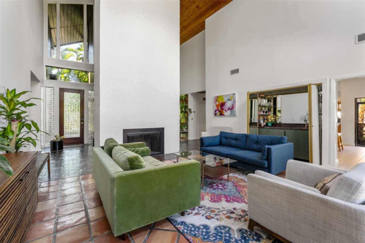 Welcome to 14506 Anchoret Road, a rare and remarkable mid-century modern gem nestled in the highly sought-after community of Carrollwood. This stunning 4-bedroom, 3-bathroom home offers a nostalgic escape into the timeless elegance of the 1970s while still embracing the comfort and flow of modern living. With dramatic architecture, soaring vaulted ceilings, and walls of windows that bathe the home in natural light, this residence is truly one of a kind. From the moment you arrive, you'll feel transported. Clean lines, angular details, and mature landscaping set the stage for what awaits inside. Step through the front door and be immediately greeted by a split floor plan filled with warmth, light, and character. The expansive living areas offer both a formal living room and a more relaxed family room—complete with a built in bar, ideal for entertaining in style. Two dining spaces give you the flexibility to host elegant dinners or casual game nights. Currently, one of the dining areas is playfully used as a billiards room, showcasing just how versatile this layout truly is. The oversized windows throughout the home create a seamless connection between indoors and out, flooding every room with sunshine and allowing views of the lush backyard oasis. Each of the four bedrooms is generously sized, offering ample room to unwind. The bathrooms are spacious as well, with thoughtful vintage touches and plenty of room to add your own flair. The architectural details—like original built-ins, dramatic ceiling heights, and period lighting—give this home soul, while still providing the footprint and flow today’s homeowners crave. And then there's the pool—your private retreat. Step outside to a sparkling backyard pool surrounded by tropical greenery and ample patio space for lounging, grilling, and soaking in the Florida sun. Whether you’re hosting weekend pool parties or enjoying a quiet evening under the stars, this outdoor space completes the full experience of mid-century Florida living. Additional peace of mind comes with a brand new roof installed in 2022, allowing you to move in with confidence and enjoy your home for years to come. Located in charming Carrollwood, you’re just minutes from Tampa’s best dining, shopping, and entertainment, yet tucked into a quiet, established neighborhood full of character. This is more than just a home—it’s a lifestyle, a design statement, and a piece of history. Don’t miss the opportunity to make this one-of-a-kind property yours.