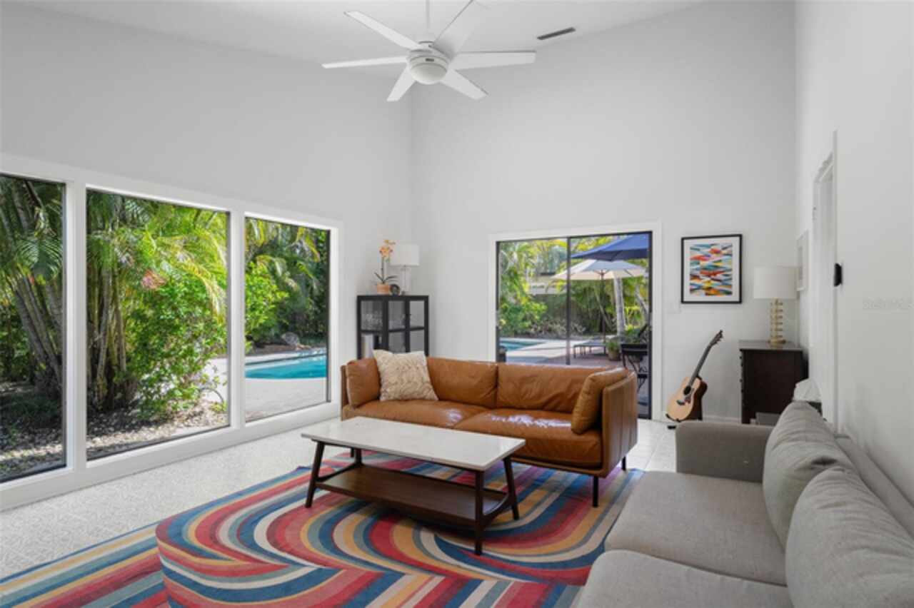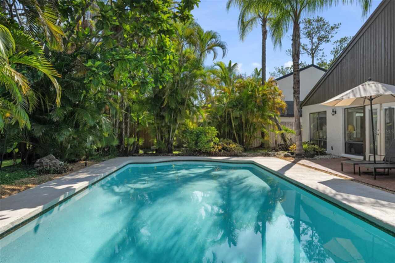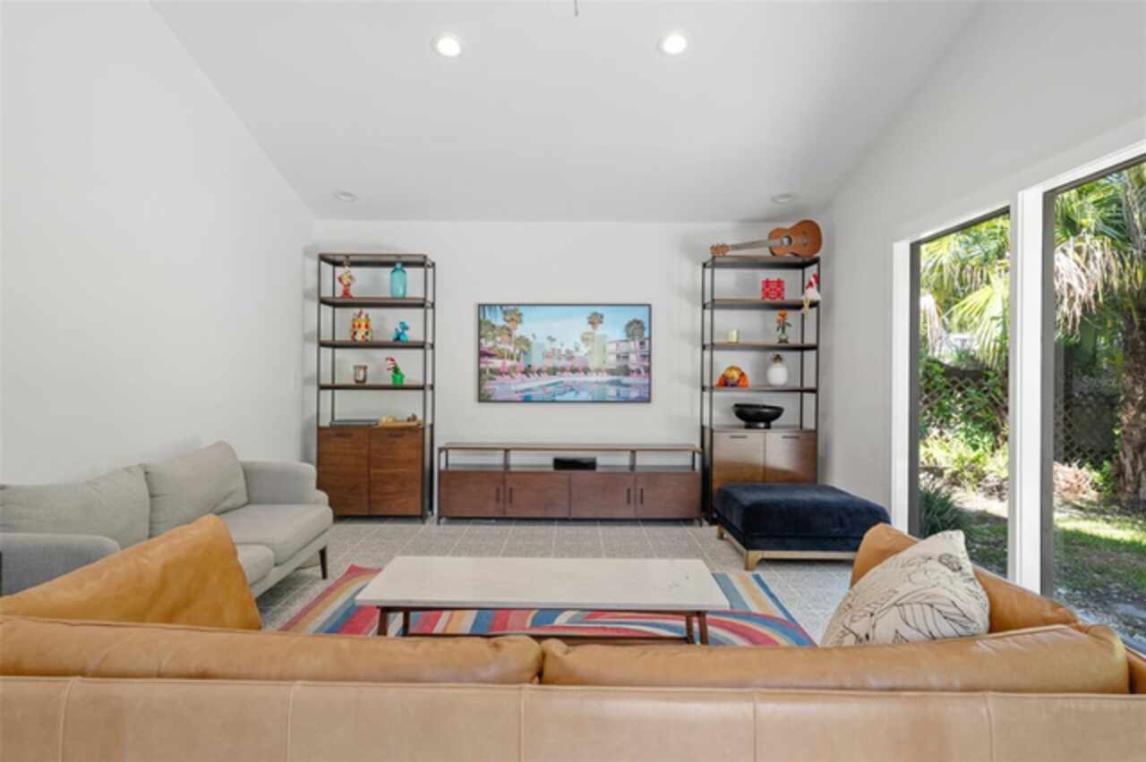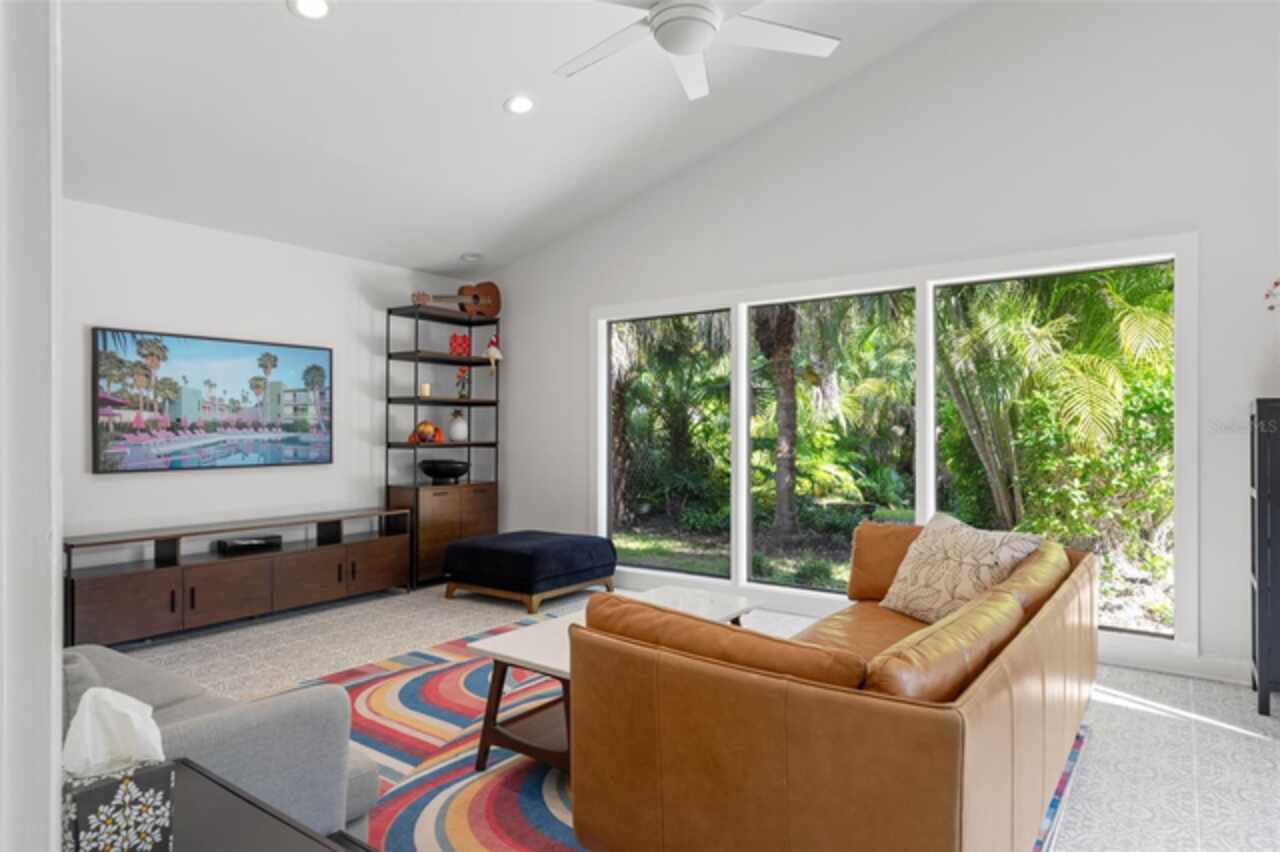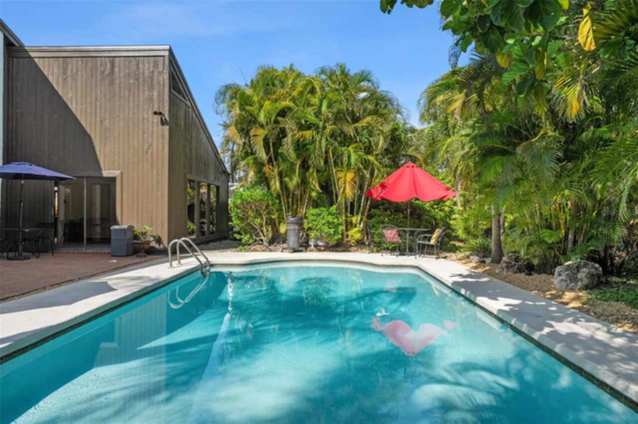 Welcome to 14506 Anchoret Road, a rare and remarkable mid-century modern gem nestled in the highly sought-after community of Carrollwood. This stunning 4-bedroom, 3-bathroom home offers a nostalgic escape into the timeless elegance of the 1970s while still embracing the comfort and flow of modern living. With dramatic architecture, soaring vaulted ceilings, and walls of windows that bathe the home in natural light, this residence is truly one of a kind. From the moment you arrive, you'll feel transported. Clean lines, angular details, and mature landscaping set the stage for what awaits inside. Step through the front door and be immediately greeted by a split floor plan filled with warmth, light, and character. The expansive living areas offer both a formal living room and a more relaxed family room—complete with a built in bar, ideal for entertaining in style. Two dining spaces give you the flexibility to host elegant dinners or casual game nights. Currently, one of the dining areas is playfully used as a billiards room, showcasing just how versatile this layout truly is. The oversized windows throughout the home create a seamless connection between indoors and out, flooding every room with sunshine and allowing views of the lush backyard oasis. Each of the four bedrooms is generously sized, offering ample room to unwind. The bathrooms are spacious as well, with thoughtful vintage touches and plenty of room to add your own flair. The architectural details—like original built-ins, dramatic ceiling heights, and period lighting—give this home soul, while still providing the footprint and flow today’s homeowners crave. And then there's the pool—your private retreat. Step outside to a sparkling backyard pool surrounded by tropical greenery and ample patio space for lounging, grilling, and soaking in the Florida sun. Whether you’re hosting weekend pool parties or enjoying a quiet evening under the stars, this outdoor space completes the full experience of mid-century Florida living. Additional peace of mind comes with a brand new roof installed in 2022, allowing you to move in with confidence and enjoy your home for years to come. Located in charming Carrollwood, you’re just minutes from Tampa’s best dining, shopping, and entertainment, yet tucked into a quiet, established neighborhood full of character. This is more than just a home—it’s a lifestyle, a design statement, and a piece of history. Don’t miss the opportunity to make this one-of-a-kind property yours.
