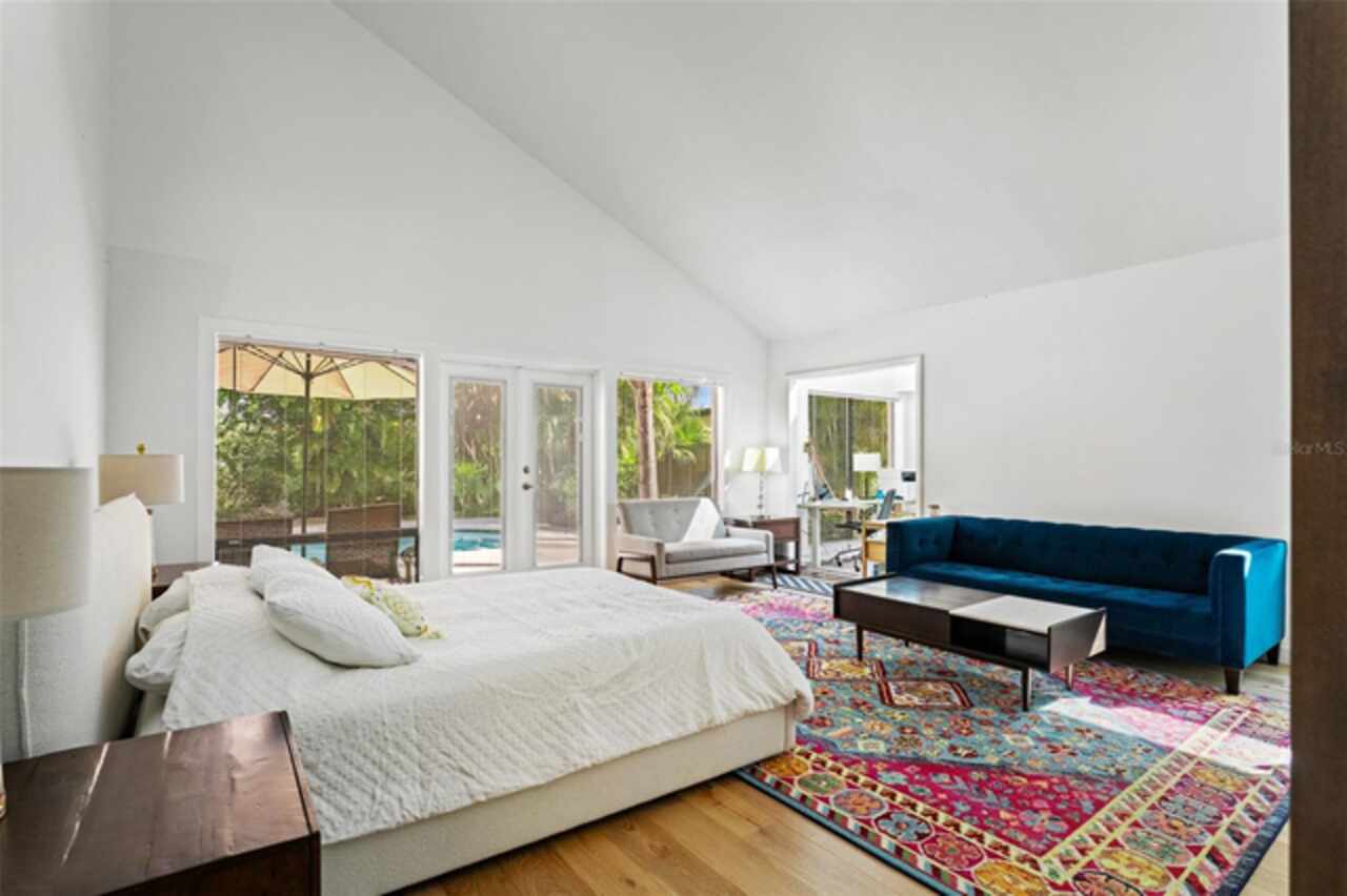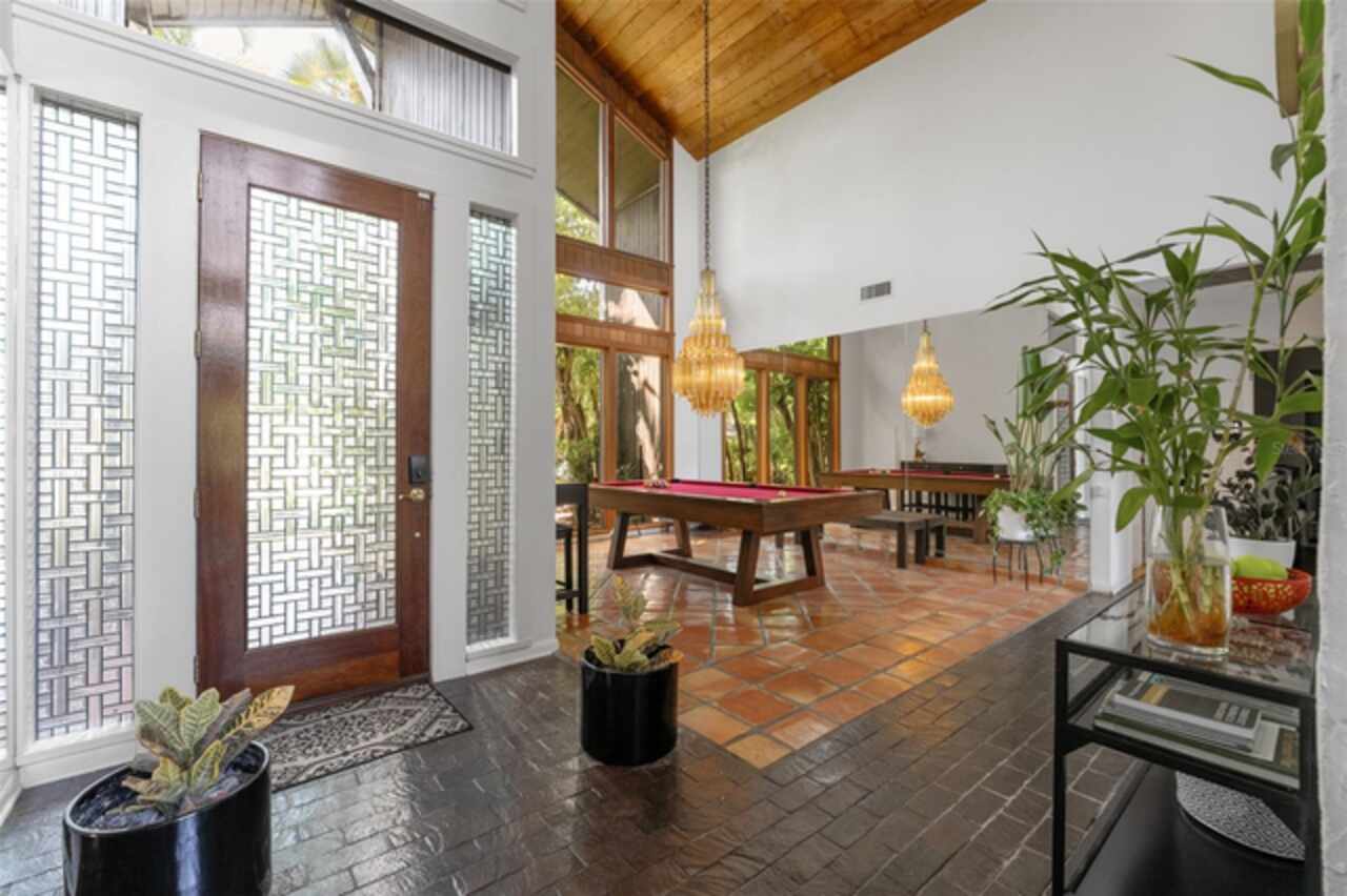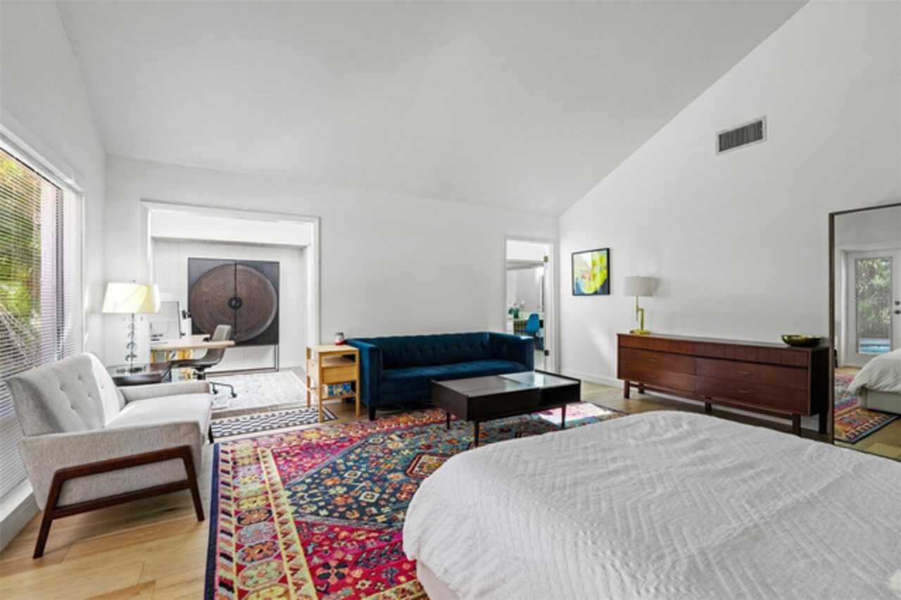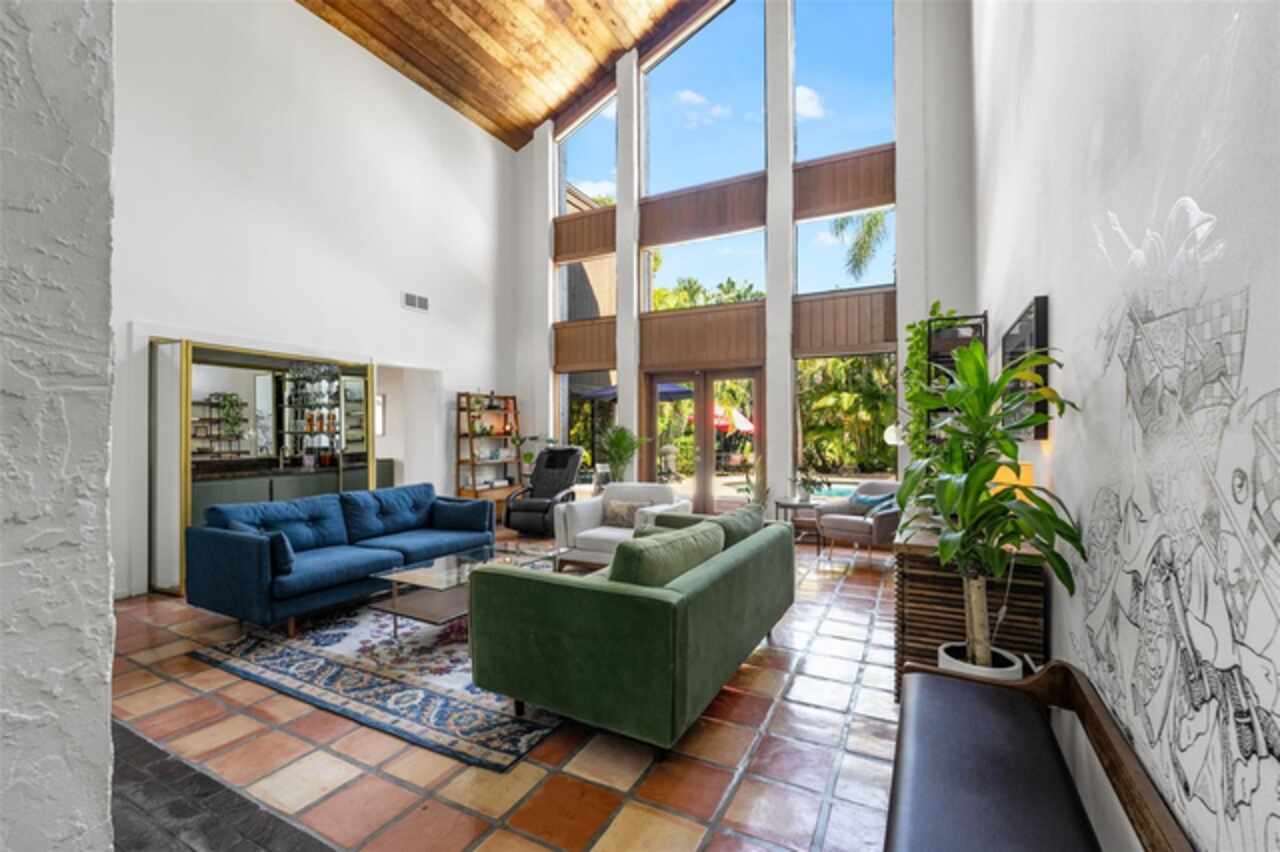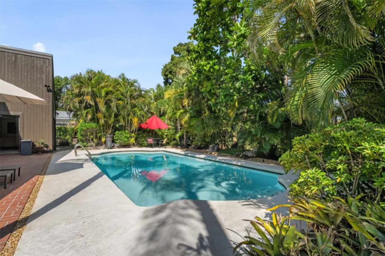 Welcome to 14506 Anchoret Road, a rare and remarkable mid-century modern gem nestled in the highly sought-after community of Carrollwood. This stunning 4-bedroom, 3-bathroom home offers a nostalgic escape into the timeless elegance of the 1970s while still embracing the comfort and flow of modern living. With dramatic architecture, soaring vaulted ceilings, and walls of windows that bathe the home in natural light, this residence is truly one of a kind. From the moment you arrive, you'll feel transported. Clean lines, angular details, and mature landscaping set the stage for what awaits inside. Step through the front door and be immediately greeted by a split floor plan filled with warmth, light, and character. The expansive living areas offer both a formal living room and a more relaxed family room—complete with a built in bar, ideal for entertaining in style. Two dining spaces give you the flexibility to host elegant dinners or casual game nights. Currently, one of the dining areas is playfully used as a billiards room, showcasing just how versatile this layout truly is. The oversized windows throughout the home create a seamless connection between indoors and out, flooding every room with sunshine and allowing views of the lush backyard oasis. Each of the four bedrooms is generously sized, offering ample room to unwind. The bathrooms are spacious as well, with thoughtful vintage touches and plenty of room to add your own flair. The architectural details—like original built-ins, dramatic ceiling heights, and period lighting—give this home soul, while still providing the footprint and flow today’s homeowners crave. And then there's the pool—your private retreat. Step outside to a sparkling backyard pool surrounded by tropical greenery and ample patio space for lounging, grilling, and soaking in the Florida sun. Whether you’re hosting weekend pool parties or enjoying a quiet evening under the stars, this outdoor space completes the full experience of mid-century Florida living. Additional peace of mind comes with a brand new roof installed in 2022, allowing you to move in with confidence and enjoy your home for years to come. Located in charming Carrollwood, you’re just minutes from Tampa’s best dining, shopping, and entertainment, yet tucked into a quiet, established neighborhood full of character. This is more than just a home—it’s a lifestyle, a design statement, and a piece of history. Don’t miss the opportunity to make this one-of-a-kind property yours.