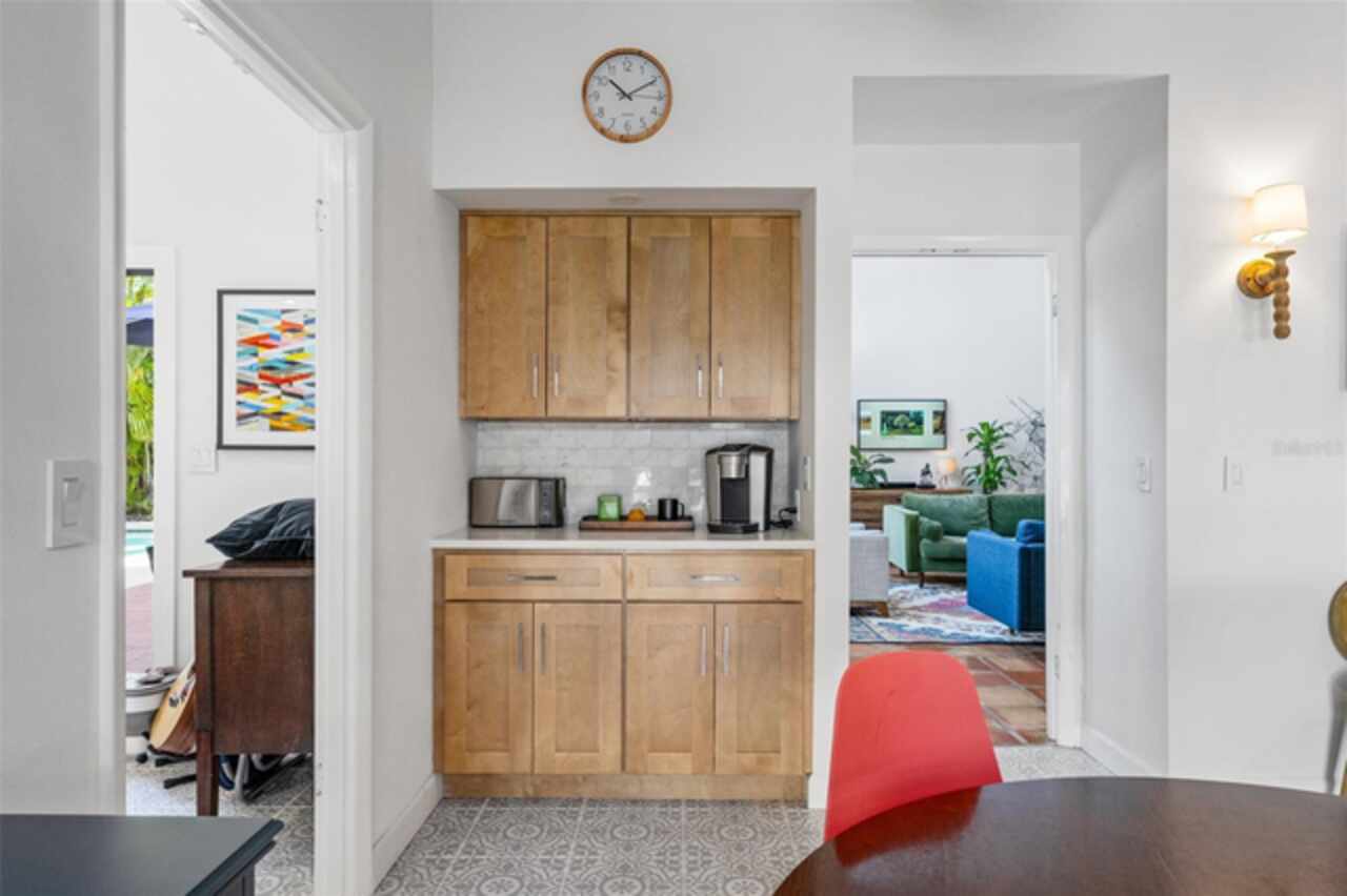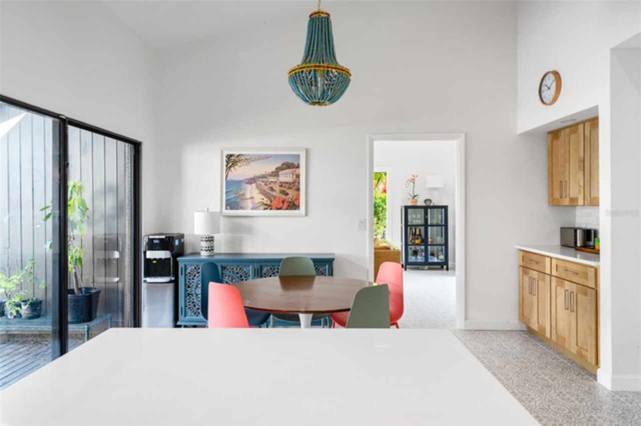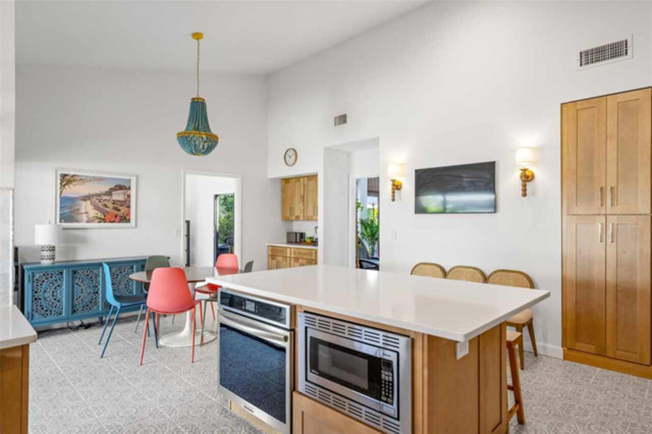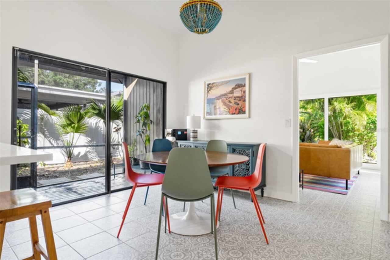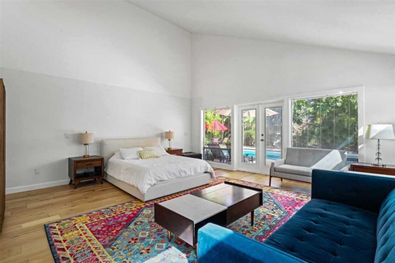 Welcome to 14506 Anchoret Road, a rare and remarkable mid-century modern gem nestled in the highly sought-after community of Carrollwood. This stunning 4-bedroom, 3-bathroom home offers a nostalgic escape into the timeless elegance of the 1970s while still embracing the comfort and flow of modern living. With dramatic architecture, soaring vaulted ceilings, and walls of windows that bathe the home in natural light, this residence is truly one of a kind. From the moment you arrive, you'll feel transported. Clean lines, angular details, and mature landscaping set the stage for what awaits inside. Step through the front door and be immediately greeted by a split floor plan filled with warmth, light, and character. The expansive living areas offer both a formal living room and a more relaxed family room—complete with a built in bar, ideal for entertaining in style. Two dining spaces give you the flexibility to host elegant dinners or casual game nights. Currently, one of the dining areas is playfully used as a billiards room, showcasing just how versatile this layout truly is. The oversized windows throughout the home create a seamless connection between indoors and out, flooding every room with sunshine and allowing views of the lush backyard oasis. Each of the four bedrooms is generously sized, offering ample room to unwind. The bathrooms are spacious as well, with thoughtful vintage touches and plenty of room to add your own flair. The architectural details—like original built-ins, dramatic ceiling heights, and period lighting—give this home soul, while still providing the footprint and flow today’s homeowners crave. And then there's the pool—your private retreat. Step outside to a sparkling backyard pool surrounded by tropical greenery and ample patio space for lounging, grilling, and soaking in the Florida sun. Whether you’re hosting weekend pool parties or enjoying a quiet evening under the stars, this outdoor space completes the full experience of mid-century Florida living. Additional peace of mind comes with a brand new roof installed in 2022, allowing you to move in with confidence and enjoy your home for years to come. Located in charming Carrollwood, you’re just minutes from Tampa’s best dining, shopping, and entertainment, yet tucked into a quiet, established neighborhood full of character. This is more than just a home—it’s a lifestyle, a design statement, and a piece of history. Don’t miss the opportunity to make this one-of-a-kind property yours.