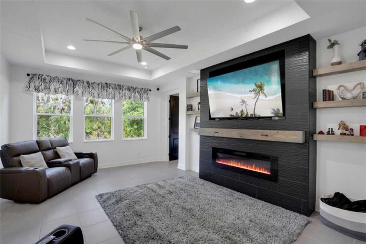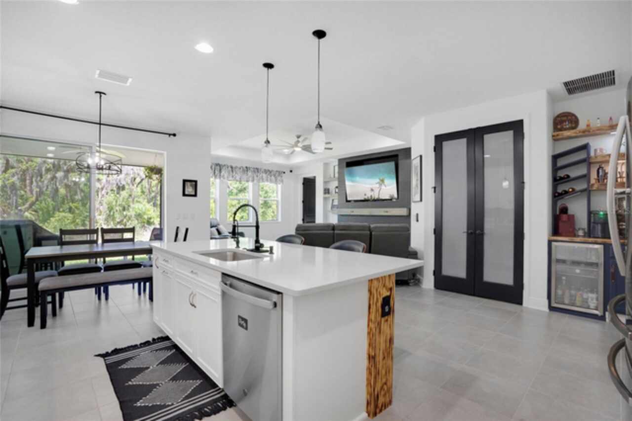 NEW PRICE – INCREDIBLE VALUE WITH CUSTOM UPGRADES ALREADY INCLUDED! Why pay inflated builder prices for upgrades when you can move right into this beautifully upgraded MI Homes “Calusa” model? Built in 2021, this popular floor plan features 4-bedrooms, 3-baths and offers the luxury features buyers typically spend thousands more to add. Step inside and you’ll immediately notice the soaring 10-foot ceilings, upgraded baseboards, and elegant finishes throughout. The gourmet kitchen includes quartz countertops, a custom wood-accented island, stylish backsplash, under-cabinet lighting, and a walk-in pantry with glass doors and custom shelving. A built-in coffee bar with wine refrigerator adds a boutique touch rarely found in comparable homes. The open-concept living area boasts a custom entertainment center with an electric fireplace and LED lighting for instant ambiance. Remote-controlled shades, plantation shutters, upgraded carpet padding, and a custom laundry room with cabinetry and folding station further elevate the home. Outdoors, enjoy a screened lanai with tongue-and-groove ceiling and peaceful conservation views, already pre-wired for a pool and outdoor lighting. Smart upgrades like whole-home water softener, reverse osmosis system, epoxy garage flooring with ceiling storage, and transferable warranties on many of the extra features adding everyday comfort and peace of mind. With this new price, this is the best price per square foot in Twin Rivers. Why wait months for new construction and spend extra on upgrades when this home has it all ready to go? Don’t miss this chance to own a move-in ready home in a vibrant community with playgrounds, sports courts, trails, and river access. Schedule your showing today!