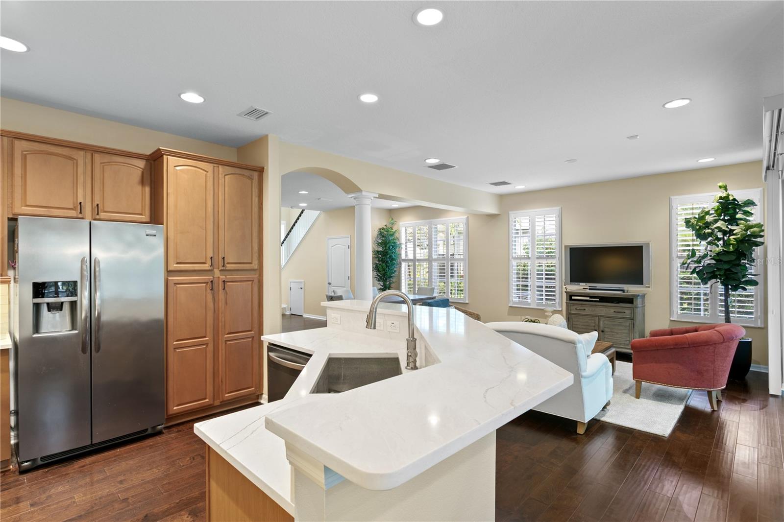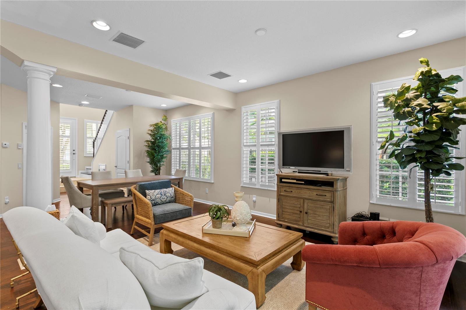 Traditional Elegance in the 24-hour guard GATED neighborhood of Waterchase. Enjoy RESORT-STYLE living with endless amenities including an AMAZING 6, 400 sq ft clubhouse with an on-site activities coordinator, 2 pools w/a spiral waterslide, fitness center, basketball courts, 4 tennis courts, pickleball courts, athletic field, playground, & a top-rated school district! This is a rare opportunity to own a MAINTENANCE FREE upgraded townhome with a private backyard that can be fully fenced in with HOA approval. **The monthly $365 HOA fee includes: Community Pools, Tennis Courts, Basketball Courts, Play Areas, Roof Replacement, Exterior paint, Lawn & Irrigation Maintenance**. This spectacular home features 3 bedrooms + Office + 2.5 baths + 2 car garage. The foyer entryway opens into the living room, dining room and kitchen that showcases Piazza Umber wood floors, high ceilings and an open floorplan. The kitchen showcases wood cabinetry with subway tile backsplash and Pompeii Siena Quartz counters, a center island, and a pantry, appliance package that opens into the dinette and living room. The upstairs spacious primary suite features a tray ceiling, crown molding, large walk in closet and a balcony. The primary bathroom highlights two separate vanities, a new oversized seamless glass shower, and a garden tub. Three additional bedrooms share a large bathroom with a doulbe vanity. The loft area is perfect for a desk or extra storage. Additional Upgrades include: NEW Barrel Tile Roof 2025, NEW Interior Paint 2017-25 (except guest rooms and guest bath), Rheem AC System 2020, Upgraded Kitchen 2025, Upgraded Guest Bathroom 2025, NEW Dishwasher 2025, NEW Seamless Glass Shower Enclosure 2025, Plantation Shutters 2016, Wood Floors 2016, Inspired By Life Plush Carpet in the bedrooms, Washer and Dryer 2024, Sliding Door 2013, French Doors 2016, NEWER Exterior Paint. Top A RATED SCHOOL district – Mary Bryant, Farnell, and Sickles. The Westchase area offers a variety of shops, restaurants, parks, playgrounds, golf, and more. Easy access to the Veteran’s, Airport, Downtown, & 30/45 minutes to Clearwater/St. Pete beaches.