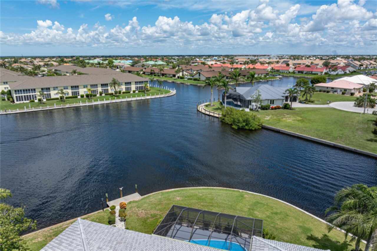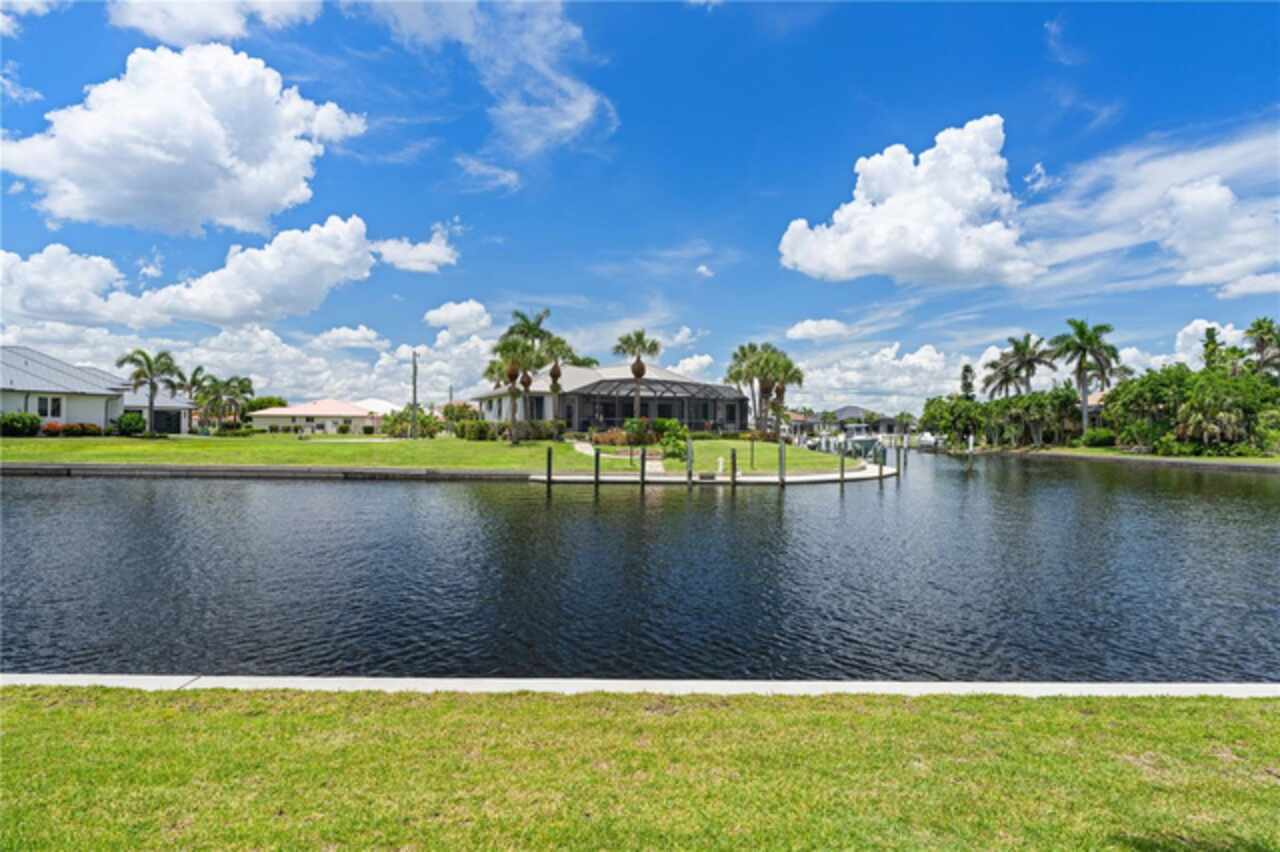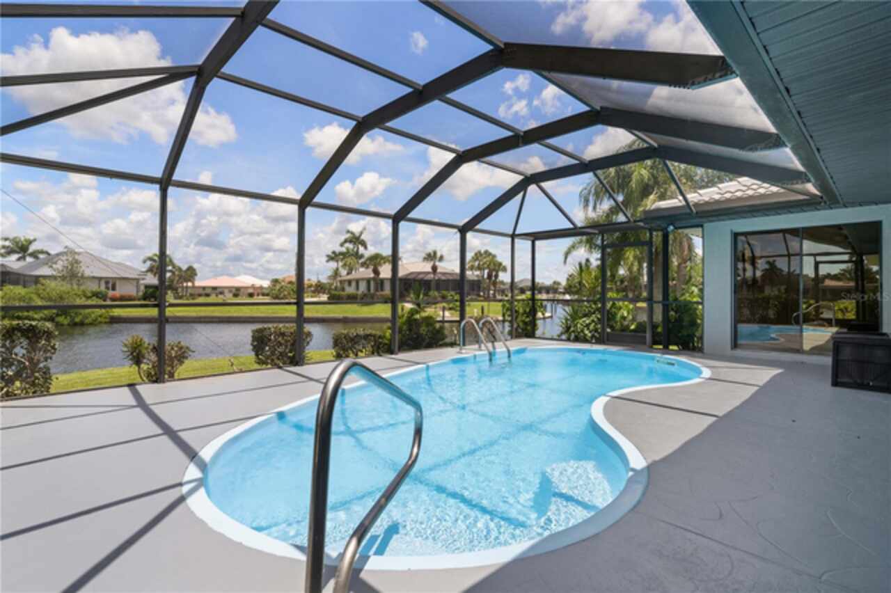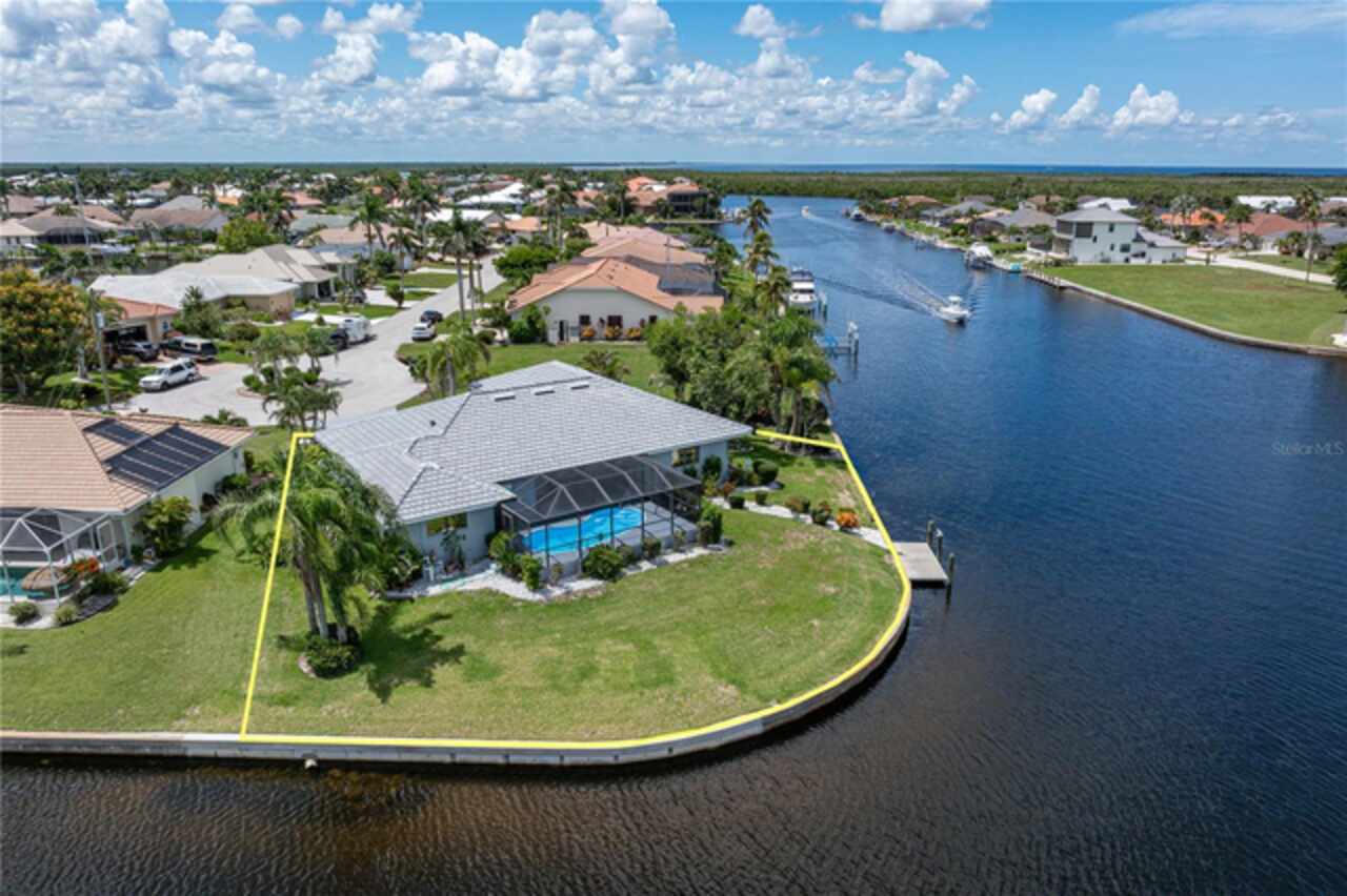 One or more photo(s) has been virtually staged. PGI WATERFRONT HOME ON TIP LOT WITH 173FT OF SEAWALL, INTERSECTING CANAL VIEWS & **NEW ROOF**- Situated on an oversized, tip lot in Punta Gorda Isles, this 3 bed/2 bath waterfront pool home delivers exceptional sailboat access to Charlotte Harbor in minutes via Buckley’s Pass or Ponce Outlet. Boasting 173 feet of city-maintained seawall, a wide turning basin, and intersecting canal views, this home offers the ultimate boating lifestyle from your backyard. Inside, the home features a bright and welcoming layout with fresh neutral finishes and thoughtful upgrades. The heart of the home—a recently updated kitchen—offers granite countertops, all-white cabinetry, LED lighting, and a versatile, mobile center island. The spacious great room flows seamlessly to the lanai through disappearing sliding glass doors, creating a spacious indoor/outdoor connection. The split-bedroom floor plan ensures privacy for owners and guests alike. The generous master suite includes walk-out access to the lanai, two picture windows framing the water view, a walk-in closet, and an en-suite bath with dual sinks, a garden tub, and a separate shower. Both guest bedrooms are comfortably sized with walk-in closets; one guest suite has direct access to the pool and shares a beautifully remodeled guest bath with dual sinks and a walk-in tiled shower. Step outside to the screened lanai that includes an in-ground pool surrounded by covered seating area that is perfect for al fresco dining or catching gorgeous sunset views. A concrete dock awaits your boat just steps from the home. Thanks to the extended wraparound seawall, the location of the dock does not compromise the fantastic view. There's plenty of room to add a 2nd dock & still not affect the view. Additional features include a brand-new roof (2024), new A/C system (2022), hot water heater (2025) attic insulation, upgraded ceiling fans and light fixtures, fresh living room carpet, and a full-size laundry room with utility sink and newer washer/dryer. Hot tub hookup added - ready for hot tub if buyer so desires. The side-facing oversized two-car garage offers a storage bump-out for your tools or gear. Located just minutes from St. Andrews South Golf Club, Isles Yacht Club, Fishermen’s Village, and historic downtown Punta Gorda, this home combines the best of boating, golfing, and dining. Enjoy SW Florida’s year-round sunshine and coastal lifestyle from one of the finest waterfront properties on the market. Boat is for sale separately.