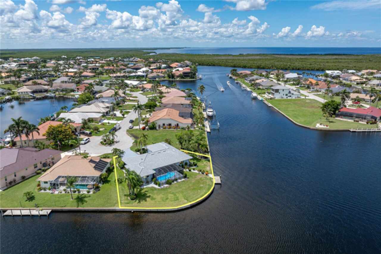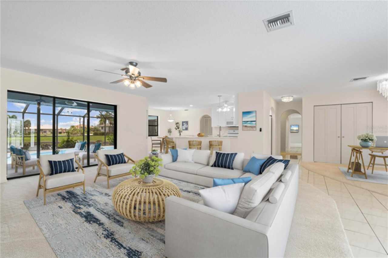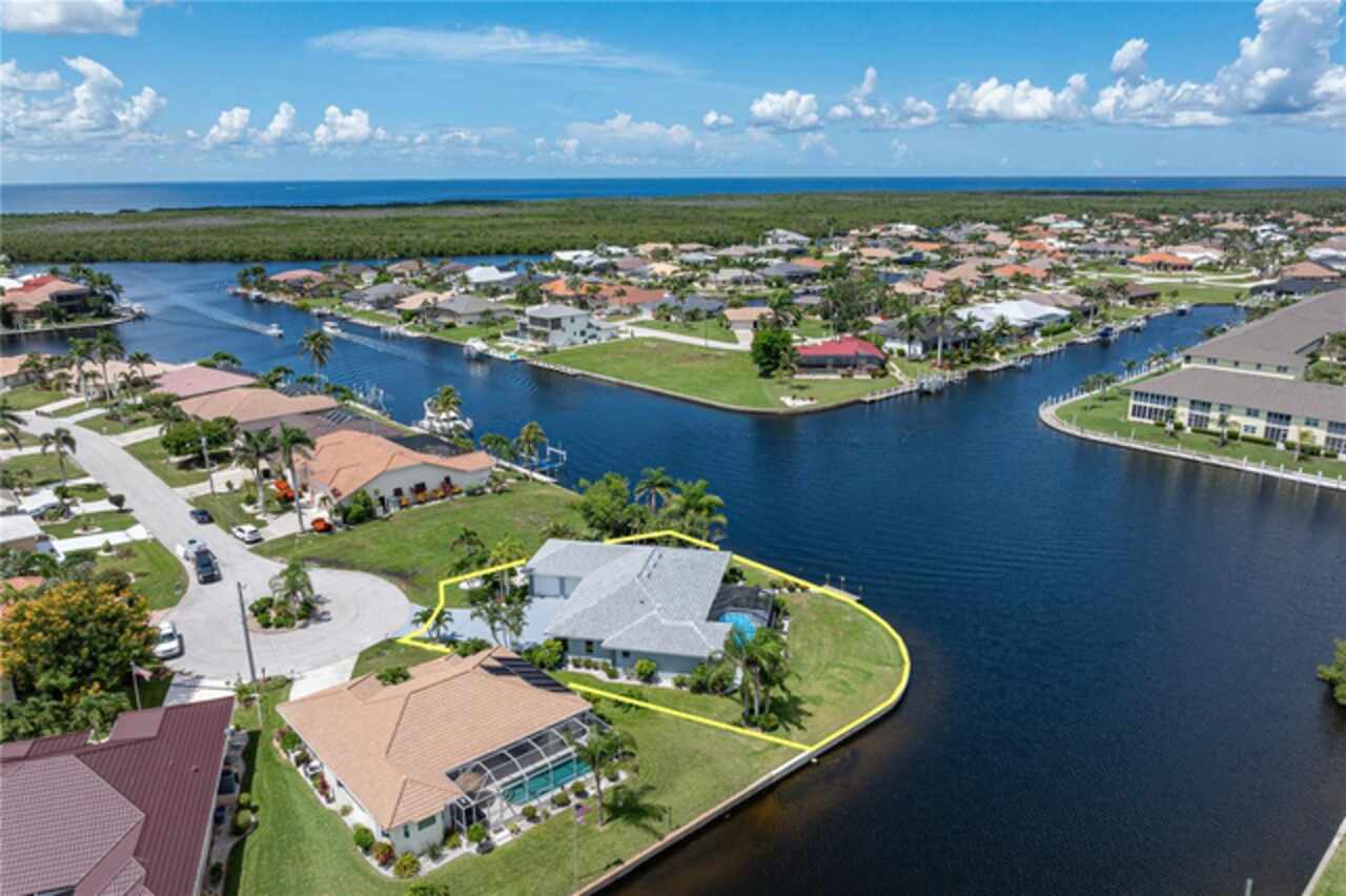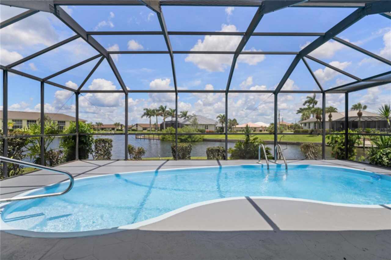 One or more photo(s) has been virtually staged. PGI WATERFRONT HOME ON TIP LOT WITH 173FT OF SEAWALL, INTERSECTING CANAL VIEWS & **NEW ROOF**- Situated on an oversized, tip lot in Punta Gorda Isles, this 3 bed/2 bath waterfront pool home delivers exceptional sailboat access to Charlotte Harbor in minutes via Buckley’s Pass or Ponce Outlet. Boasting 173 feet of city-maintained seawall, a wide turning basin, and intersecting canal views, this home offers the ultimate boating lifestyle from your backyard. Inside, the home features a bright and welcoming layout with fresh neutral finishes and thoughtful upgrades. The heart of the home—a recently updated kitchen—offers granite countertops, all-white cabinetry, LED lighting, and a versatile, mobile center island. The spacious great room flows seamlessly to the lanai through disappearing sliding glass doors, creating a spacious indoor/outdoor connection. The split-bedroom floor plan ensures privacy for owners and guests alike. The generous master suite includes walk-out access to the lanai, two picture windows framing the water view, a walk-in closet, and an en-suite bath with dual sinks, a garden tub, and a separate shower. Both guest bedrooms are comfortably sized with walk-in closets; one guest suite has direct access to the pool and shares a beautifully remodeled guest bath with dual sinks and a walk-in tiled shower. Step outside to the screened lanai that includes an in-ground pool surrounded by covered seating area that is perfect for al fresco dining or catching gorgeous sunset views. A concrete dock awaits your boat just steps from the home. Thanks to the extended wraparound seawall, the location of the dock does not compromise the fantastic view. There's plenty of room to add a 2nd dock & still not affect the view. Additional features include a brand-new roof (2024), new A/C system (2022), hot water heater (2025) attic insulation, upgraded ceiling fans and light fixtures, fresh living room carpet, and a full-size laundry room with utility sink and newer washer/dryer. Hot tub hookup added - ready for hot tub if buyer so desires. The side-facing oversized two-car garage offers a storage bump-out for your tools or gear. Located just minutes from St. Andrews South Golf Club, Isles Yacht Club, Fishermen’s Village, and historic downtown Punta Gorda, this home combines the best of boating, golfing, and dining. Enjoy SW Florida’s year-round sunshine and coastal lifestyle from one of the finest waterfront properties on the market. Boat is for sale separately.