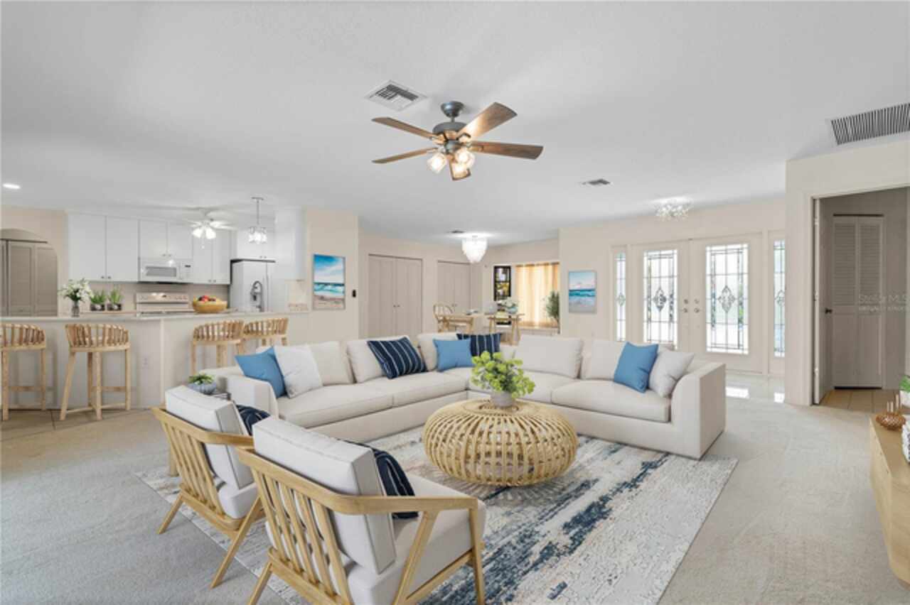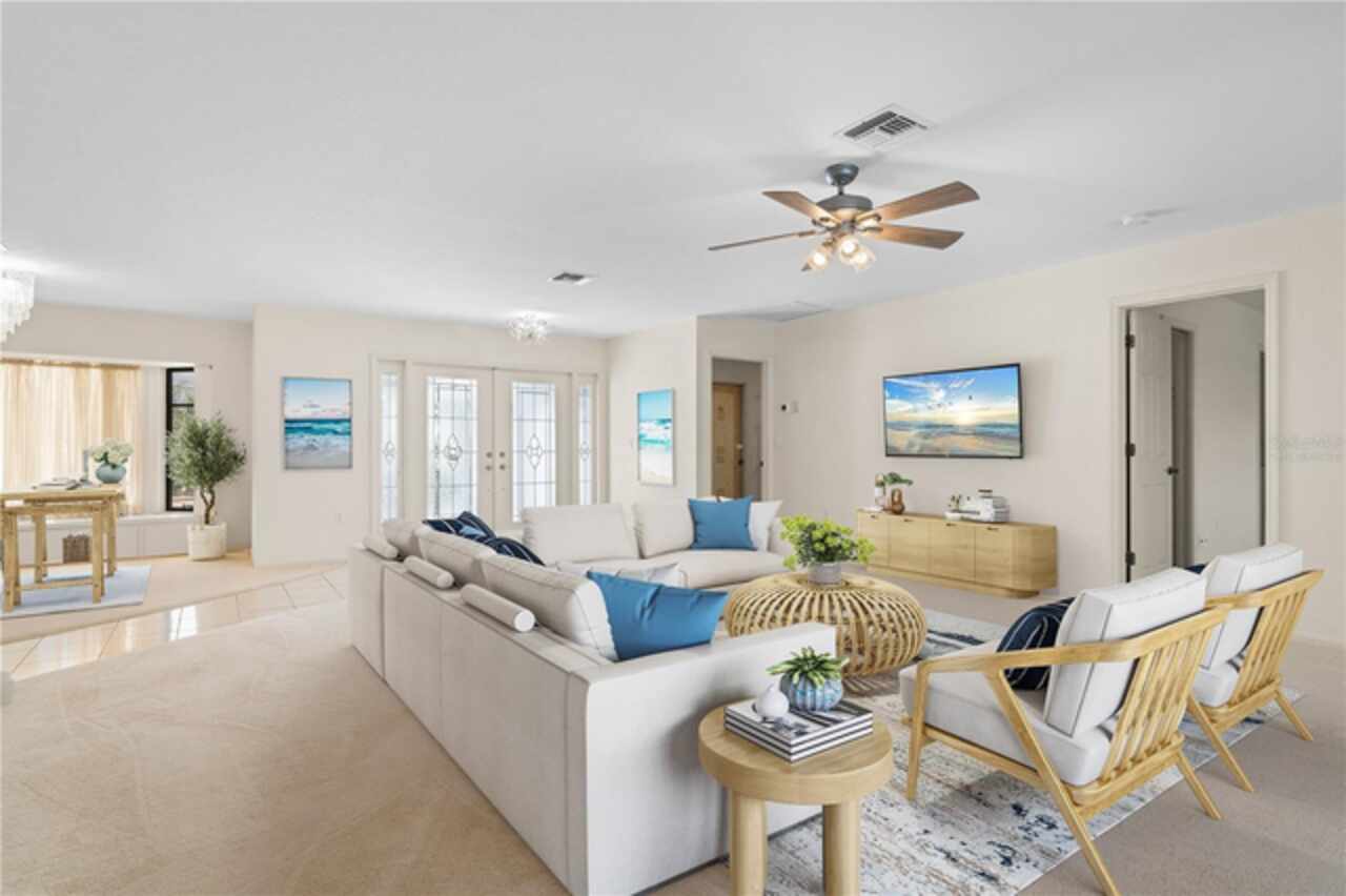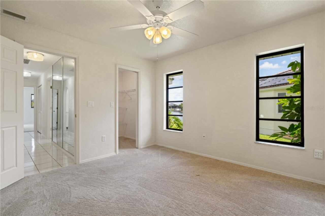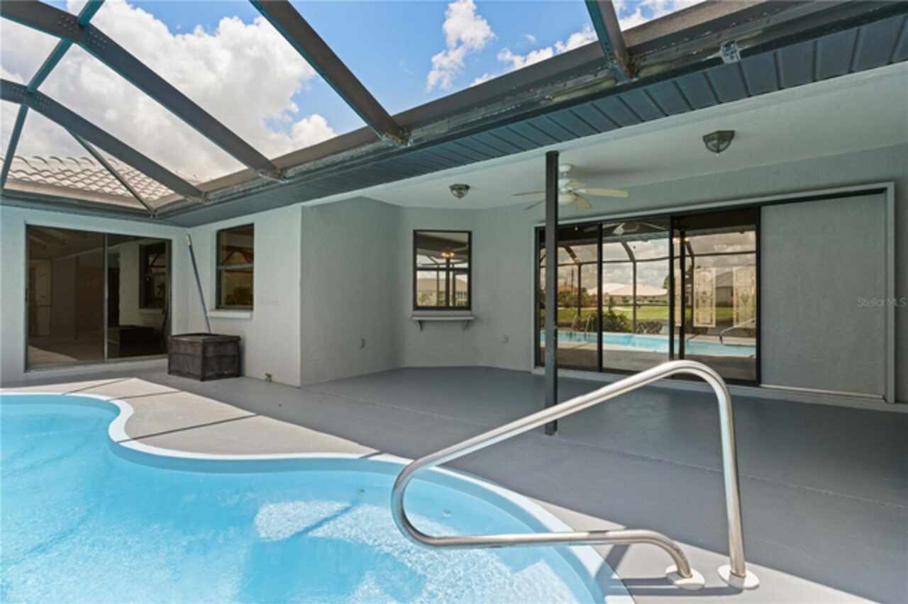 One or more photo(s) has been virtually staged. PGI WATERFRONT HOME ON TIP LOT WITH 173FT OF SEAWALL, INTERSECTING CANAL VIEWS & **NEW ROOF**- Situated on an oversized, tip lot in Punta Gorda Isles, this 3 bed/2 bath waterfront pool home delivers exceptional sailboat access to Charlotte Harbor in minutes via Buckley’s Pass or Ponce Outlet. Boasting 173 feet of city-maintained seawall, a wide turning basin, and intersecting canal views, this home offers the ultimate boating lifestyle from your backyard. Inside, the home features a bright and welcoming layout with fresh neutral finishes and thoughtful upgrades. The heart of the home—a recently updated kitchen—offers granite countertops, all-white cabinetry, LED lighting, and a versatile, mobile center island. The spacious great room flows seamlessly to the lanai through disappearing sliding glass doors, creating a spacious indoor/outdoor connection. The split-bedroom floor plan ensures privacy for owners and guests alike. The generous master suite includes walk-out access to the lanai, two picture windows framing the water view, a walk-in closet, and an en-suite bath with dual sinks, a garden tub, and a separate shower. Both guest bedrooms are comfortably sized with walk-in closets; one guest suite has direct access to the pool and shares a beautifully remodeled guest bath with dual sinks and a walk-in tiled shower. Step outside to the screened lanai that includes an in-ground pool surrounded by covered seating area that is perfect for al fresco dining or catching gorgeous sunset views. A concrete dock awaits your boat just steps from the home. Thanks to the extended wraparound seawall, the location of the dock does not compromise the fantastic view. There's plenty of room to add a 2nd dock & still not affect the view. Additional features include a brand-new roof (2024), new A/C system (2022), hot water heater (2025) attic insulation, upgraded ceiling fans and light fixtures, fresh living room carpet, and a full-size laundry room with utility sink and newer washer/dryer. Hot tub hookup added - ready for hot tub if buyer so desires. The side-facing oversized two-car garage offers a storage bump-out for your tools or gear. Located just minutes from St. Andrews South Golf Club, Isles Yacht Club, Fishermen’s Village, and historic downtown Punta Gorda, this home combines the best of boating, golfing, and dining. Enjoy SW Florida’s year-round sunshine and coastal lifestyle from one of the finest waterfront properties on the market. Boat is for sale separately.