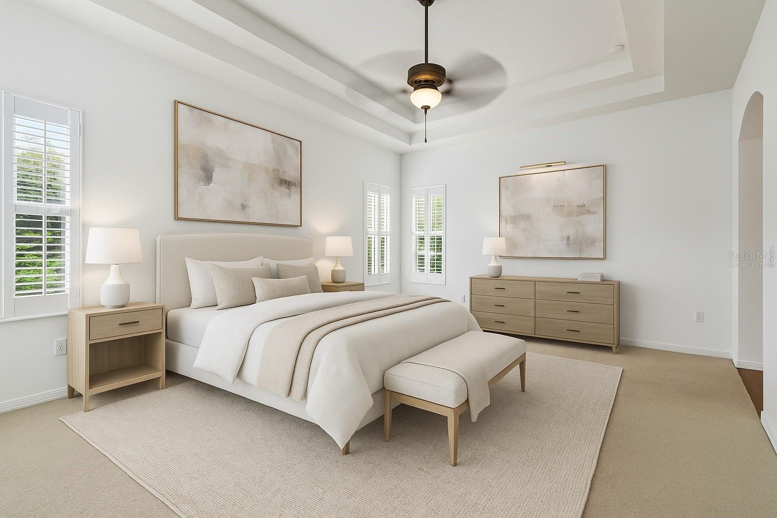 Ceiling Fans(s), Crown Molding, Kitchen/Family Room Combo, Open Floorplan, Primary Bedroom Main Floor, Solid Surface Counters, Walk-In Closet(s), Window Treatments