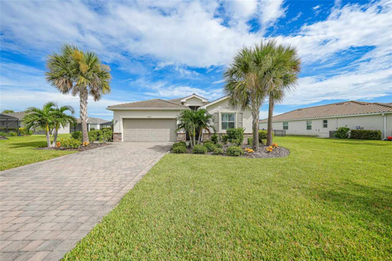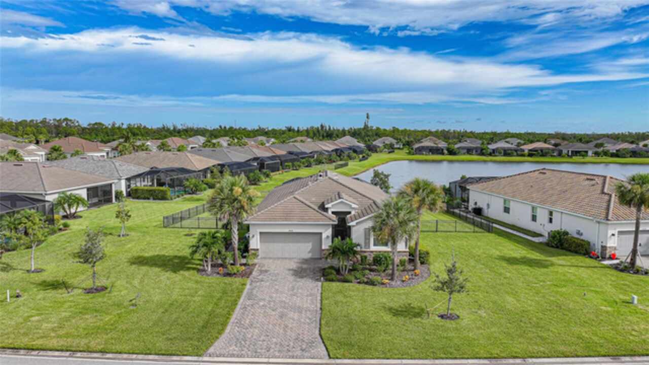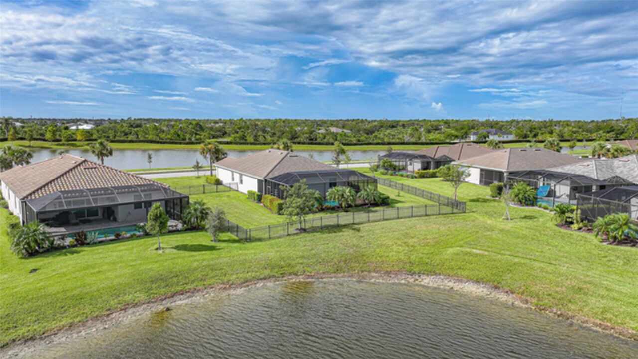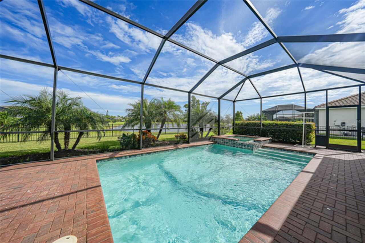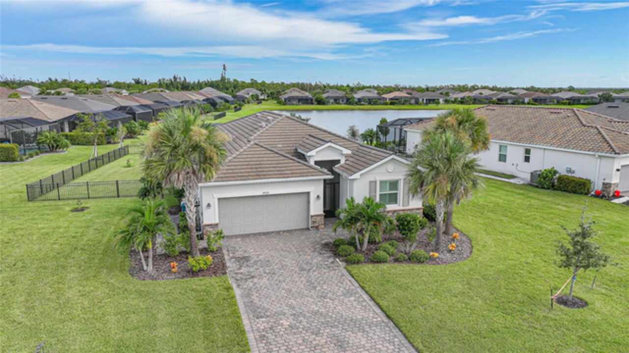BEST VALUE IN HARBOR WEST! Enjoy the largest interior lot in the community that is completely FENCED and has a HUGE BACKYARD. This 4-bedroom, 3-bathroom home boasts a HEATED POOL & SPA, an EXTENDED LANAI and an already large patio that is perfect for relaxing and enjoying the serene LAKE-VIEW while sitting by the pool. The home is fitted with IMPACT WINDOWS AND SLIDERS that grant FULL HURRICANE PROTECTION but also give you the benefit of never having to worry about putting up or taking down any hurricane shutters. Enjoy the convenience of a TILE ROOF that typically last much longer than a standard shingle roof and gives the home a Mediterranean style look. Inside you'll find a spacious open-floor plan with a split bedroom layout outfitted with 12x24 throughout the home and beautiful granite countertops across all of the countertops in both the kitchen and bathrooms. The charming upgraded white kitchen features a large island for an informal dining space, a large pantry, and stainless-steel appliances. The primary bedroom is ample in space and comes with two big-walk in closets. The primary bathroom comes complete with his and her sinks and a large shower with a Kohler Artifacts Hydro rail system with a rain head attachment or a handheld attachment for your showering pleasure. The 2nd bedroom is also very spacious and is positioned in a private part of the home away from the other bedrooms and comes with its very own on-suite bathroom. The front wing of the home comes with two more well-sized bedrooms that can be used for a variety of things besides just a bedroom, maybe a den, office, workout room, etc. The front wing comes with its own convenient bathroom. Great for guests or for quick use. The large laundry room is located just off the 2-car garage and is outfitted with 42' soft close cabinets. Underrated features include charming plantation shutters on the interior of all the windows, elegant lighting and upscale fans, Koehler faucets in master bathroom and matching towel and toiletry bars in all baths. The brick paver patio has been maintained and resealed to increase its longevity. The paver driveway is large and wraps around to the air handler. The home has a nice screened in entryway with decorative front shutters. The whole house has gutters around it. Gray plank tile throughout and a warm light neutral gray interior lends the perfect backdrop for your designer inspirations. This is located in Harbor West which is a GATED COMMUNITY with NO CDD FEES. The lawn Maintenace and irrigation is taken care of by the community. This property is not one that you'll want to miss. BE SURE TO VIEW THE 3D VIRTUAL TOUR ON ZILLOW. Don't forget the close proximity this property has to both Manasota Key Beach and Englewood Beach as well to Restaurants, bars, grocery stores, medical offices. Tampa Rays and Atlanta Braves play Spring Training nearby every year. You won't be disappointed with this located! This home has NEVER FLOODED, and a Survey and Elevation Certificate are available. Call your agent to book your showing today!