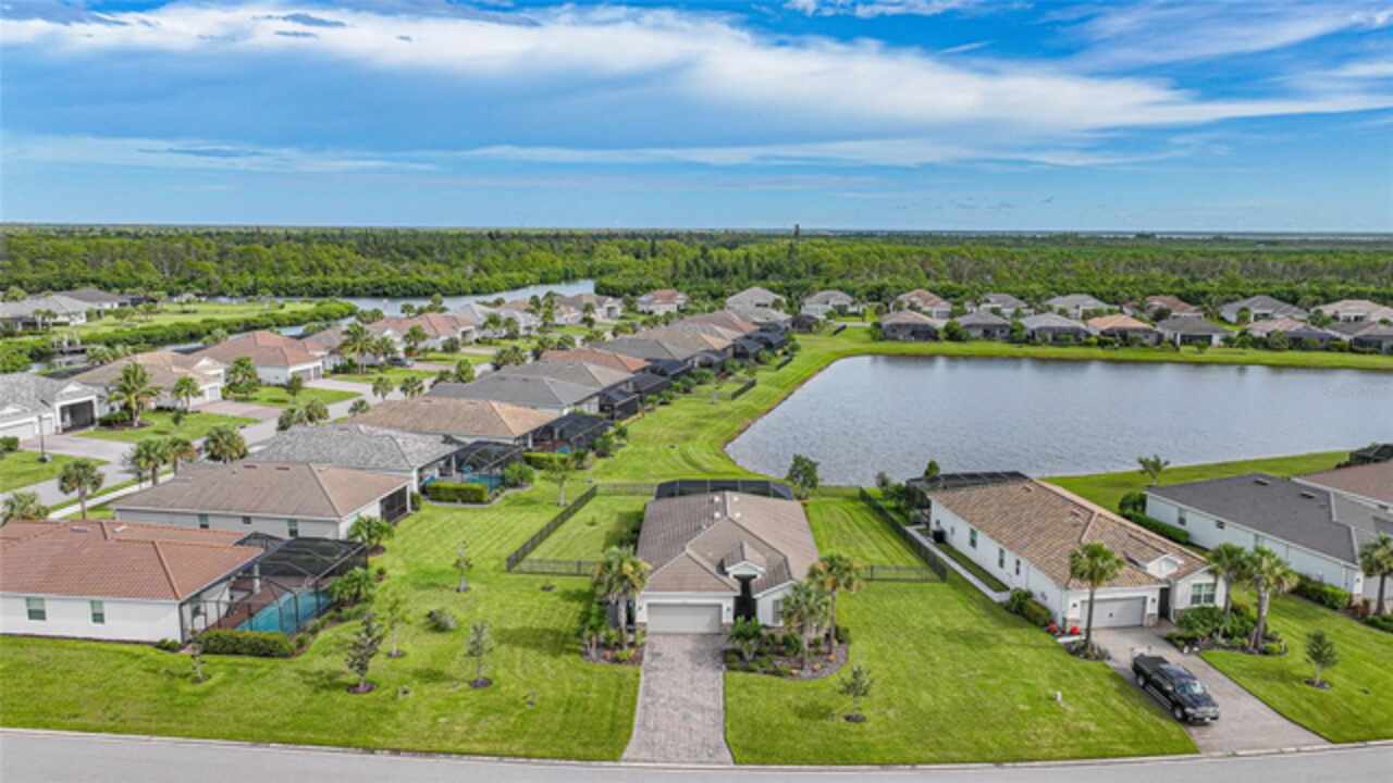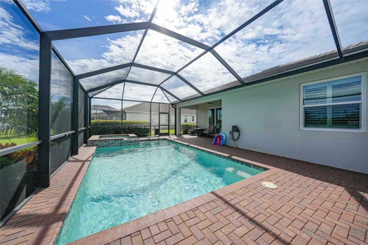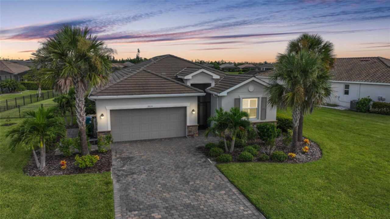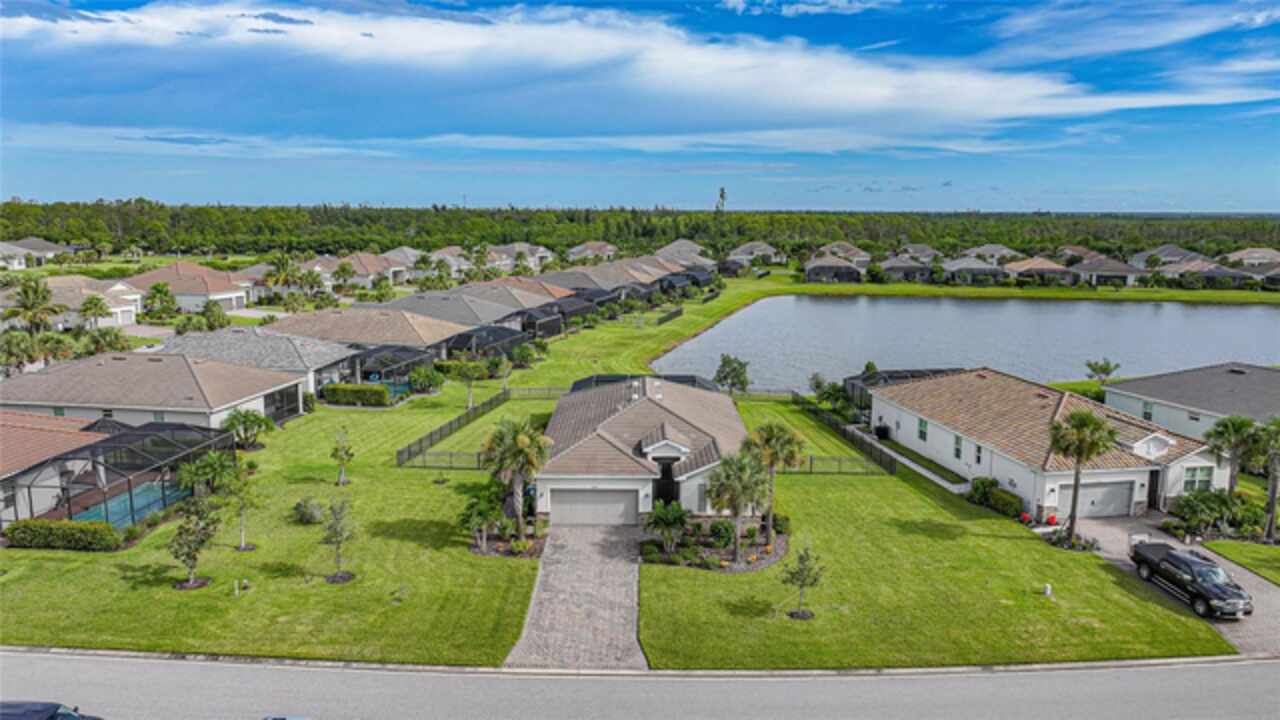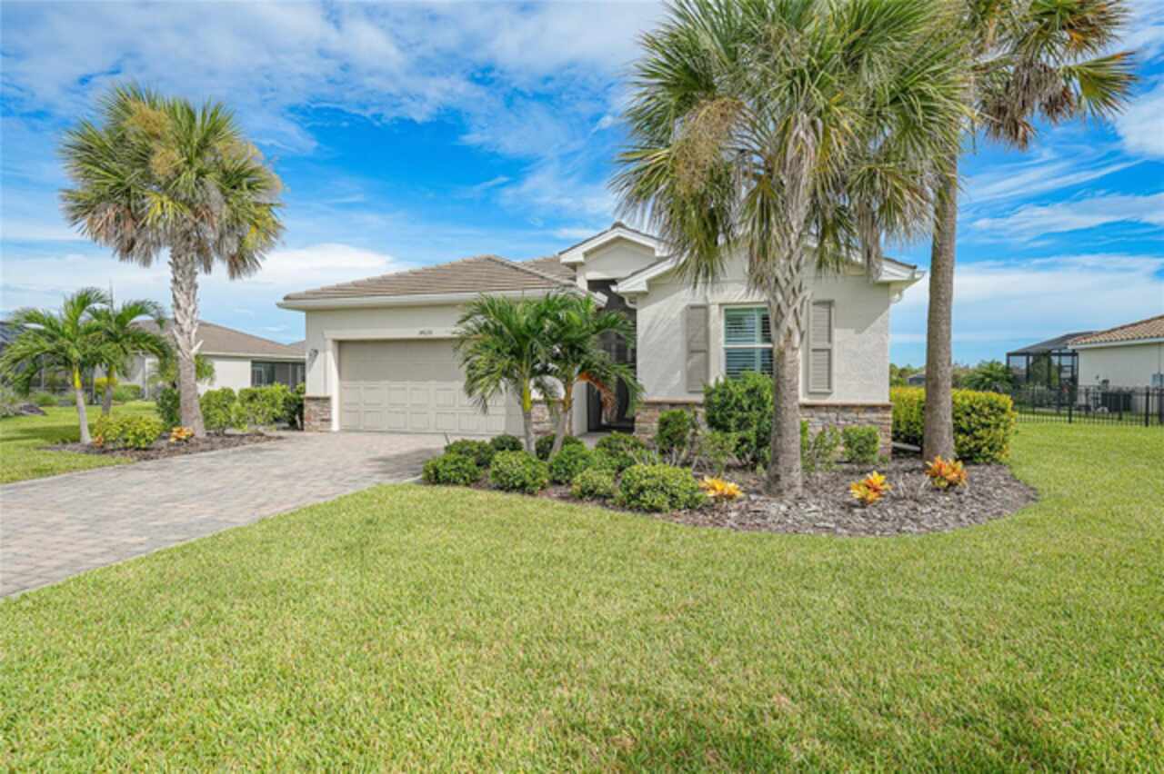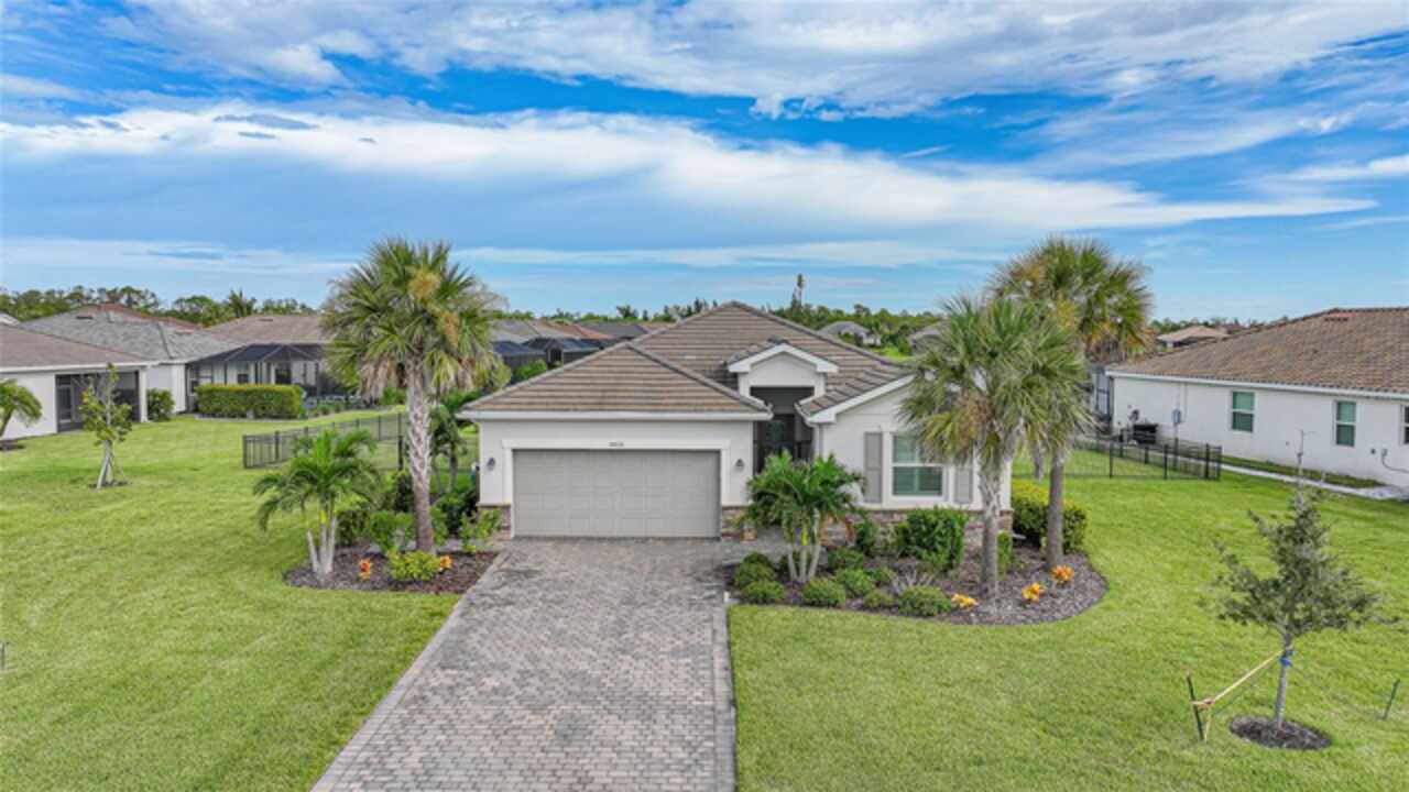 BEST VALUE IN HARBOR WEST! Enjoy the largest interior lot in the community that is completely FENCED and has a HUGE BACKYARD. This 4-bedroom, 3-bathroom home boasts a HEATED POOL & SPA, an EXTENDED LANAI and an already large patio that is perfect for relaxing and enjoying the serene LAKE-VIEW while sitting by the pool. The home is fitted with IMPACT WINDOWS AND SLIDERS that grant FULL HURRICANE PROTECTION but also give you the benefit of never having to worry about putting up or taking down any hurricane shutters. Enjoy the convenience of a TILE ROOF that typically last much longer than a standard shingle roof and gives the home a Mediterranean style look. Inside you'll find a spacious open-floor plan with a split bedroom layout outfitted with 12x24 throughout the home and beautiful granite countertops across all of the countertops in both the kitchen and bathrooms. The charming upgraded white kitchen features a large island for an informal dining space, a large pantry, and stainless-steel appliances. The primary bedroom is ample in space and comes with two big-walk in closets. The primary bathroom comes complete with his and her sinks and a large shower with a Kohler Artifacts Hydro rail system with a rain head attachment or a handheld attachment for your showering pleasure. The 2nd bedroom is also very spacious and is positioned in a private part of the home away from the other bedrooms and comes with its very own on-suite bathroom. The front wing of the home comes with two more well-sized bedrooms that can be used for a variety of things besides just a bedroom, maybe a den, office, workout room, etc. The front wing comes with its own convenient bathroom. Great for guests or for quick use. The large laundry room is located just off the 2-car garage and is outfitted with 42' soft close cabinets. Underrated features include charming plantation shutters on the interior of all the windows, elegant lighting and upscale fans, Koehler faucets in master bathroom and matching towel and toiletry bars in all baths. The brick paver patio has been maintained and resealed to increase its longevity. The paver driveway is large and wraps around to the air handler. The home has a nice screened in entryway with decorative front shutters. The whole house has gutters around it. Gray plank tile throughout and a warm light neutral gray interior lends the perfect backdrop for your designer inspirations. This is located in Harbor West which is a GATED COMMUNITY with NO CDD FEES. The lawn Maintenace and irrigation is taken care of by the community. This property is not one that you'll want to miss. BE SURE TO VIEW THE 3D VIRTUAL TOUR ON ZILLOW. Don't forget the close proximity this property has to both Manasota Key Beach and Englewood Beach as well to Restaurants, bars, grocery stores, medical offices. Tampa Rays and Atlanta Braves play Spring Training nearby every year. You won't be disappointed with this located! This home has NEVER FLOODED, and a Survey and Elevation Certificate are available. Call your agent to book your showing today!