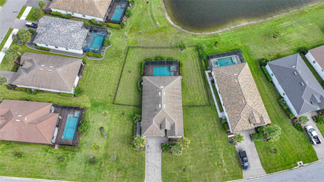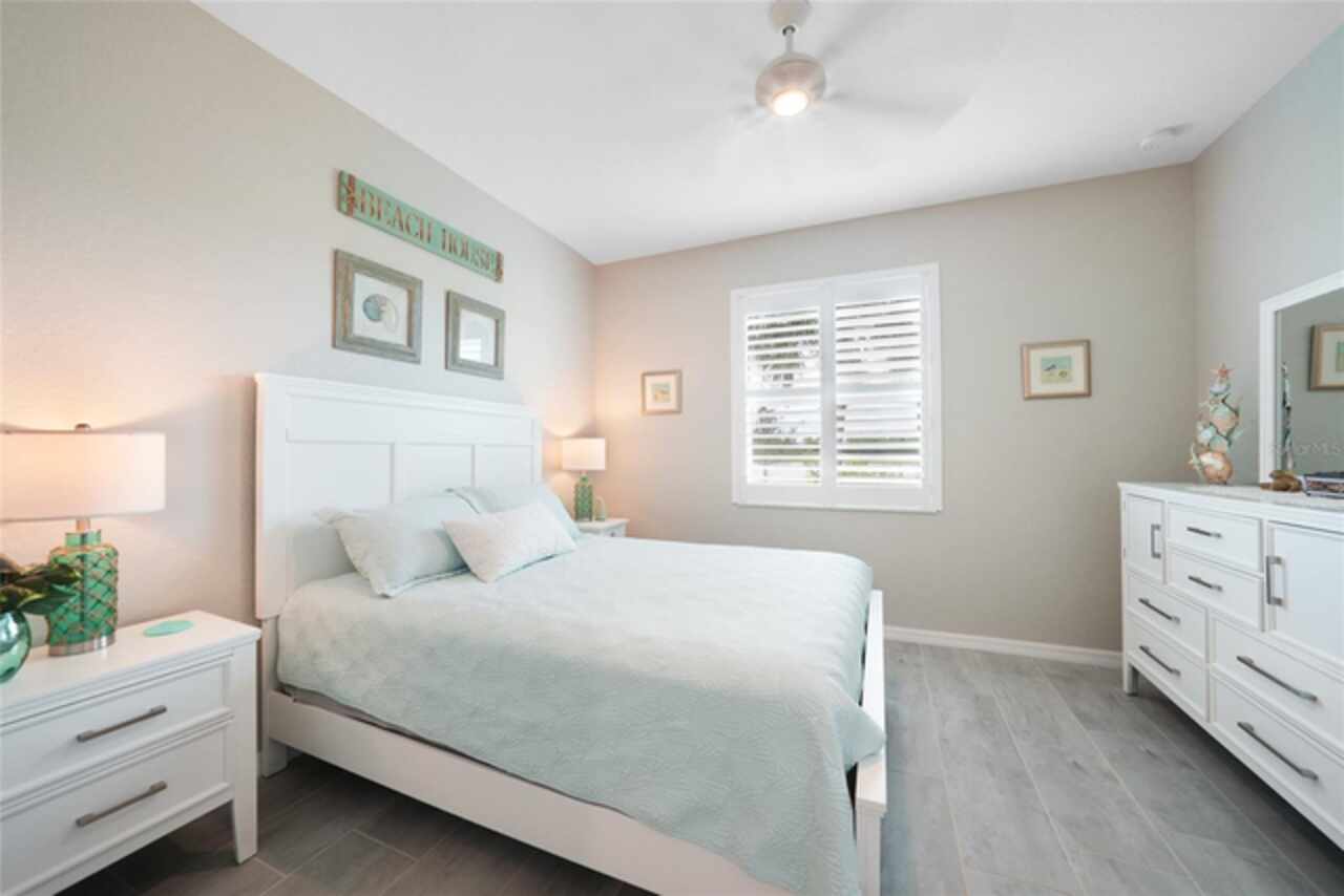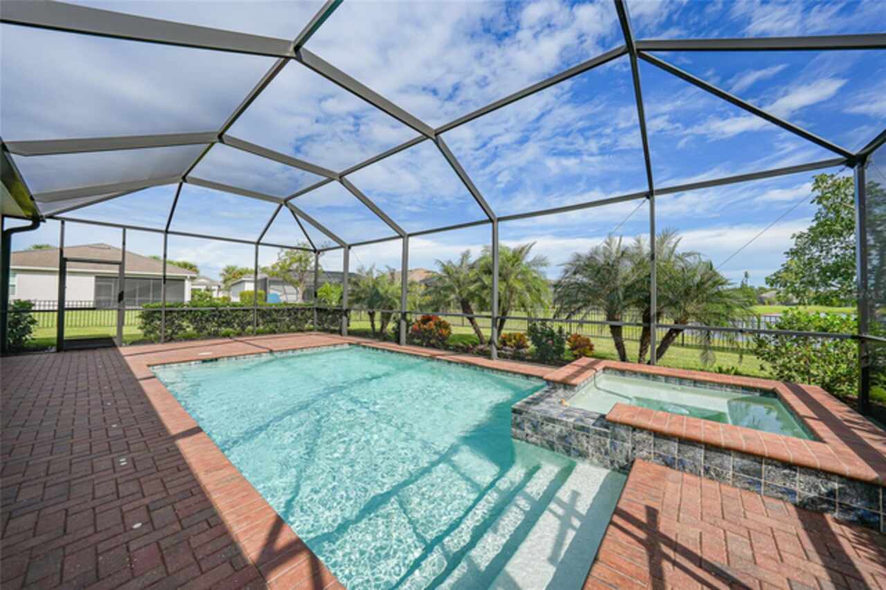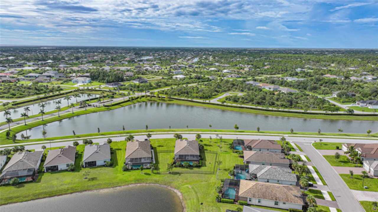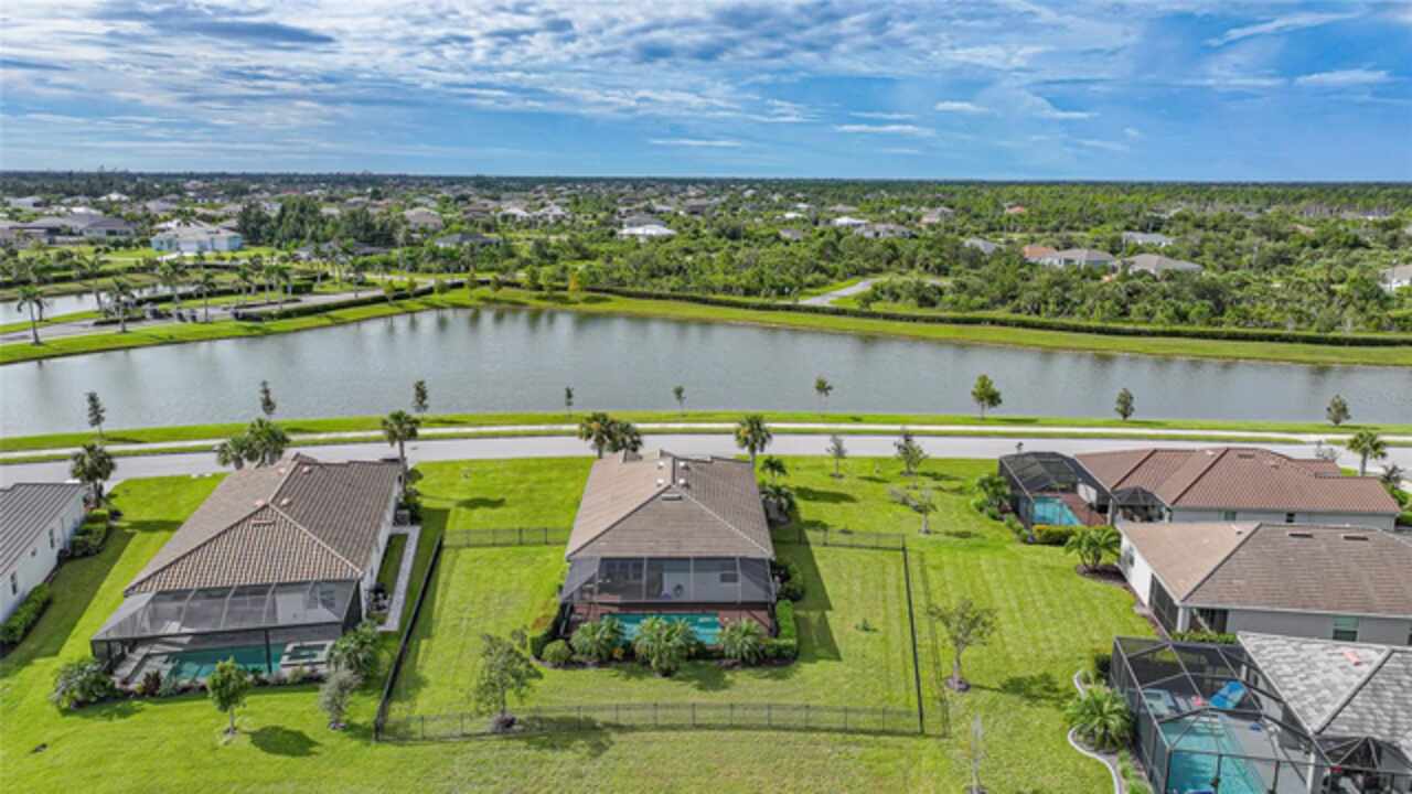 BEST VALUE IN HARBOR WEST! Enjoy the largest interior lot in the community that is completely FENCED and has a HUGE BACKYARD. This 4-bedroom, 3-bathroom home boasts a HEATED POOL & SPA, an EXTENDED LANAI and an already large patio that is perfect for relaxing and enjoying the serene LAKE-VIEW while sitting by the pool. The home is fitted with IMPACT WINDOWS AND SLIDERS that grant FULL HURRICANE PROTECTION but also give you the benefit of never having to worry about putting up or taking down any hurricane shutters. Enjoy the convenience of a TILE ROOF that typically last much longer than a standard shingle roof and gives the home a Mediterranean style look. Inside you'll find a spacious open-floor plan with a split bedroom layout outfitted with 12x24 throughout the home and beautiful granite countertops across all of the countertops in both the kitchen and bathrooms. The charming upgraded white kitchen features a large island for an informal dining space, a large pantry, and stainless-steel appliances. The primary bedroom is ample in space and comes with two big-walk in closets. The primary bathroom comes complete with his and her sinks and a large shower with a Kohler Artifacts Hydro rail system with a rain head attachment or a handheld attachment for your showering pleasure. The 2nd bedroom is also very spacious and is positioned in a private part of the home away from the other bedrooms and comes with its very own on-suite bathroom. The front wing of the home comes with two more well-sized bedrooms that can be used for a variety of things besides just a bedroom, maybe a den, office, workout room, etc. The front wing comes with its own convenient bathroom. Great for guests or for quick use. The large laundry room is located just off the 2-car garage and is outfitted with 42' soft close cabinets. Underrated features include charming plantation shutters on the interior of all the windows, elegant lighting and upscale fans, Koehler faucets in master bathroom and matching towel and toiletry bars in all baths. The brick paver patio has been maintained and resealed to increase its longevity. The paver driveway is large and wraps around to the air handler. The home has a nice screened in entryway with decorative front shutters. The whole house has gutters around it. Gray plank tile throughout and a warm light neutral gray interior lends the perfect backdrop for your designer inspirations. This is located in Harbor West which is a GATED COMMUNITY with NO CDD FEES. The lawn Maintenace and irrigation is taken care of by the community. This property is not one that you'll want to miss. BE SURE TO VIEW THE 3D VIRTUAL TOUR ON ZILLOW. Don't forget the close proximity this property has to both Manasota Key Beach and Englewood Beach as well to Restaurants, bars, grocery stores, medical offices. Tampa Rays and Atlanta Braves play Spring Training nearby every year. You won't be disappointed with this located! This home has NEVER FLOODED, and a Survey and Elevation Certificate are available. Call your agent to book your showing today!