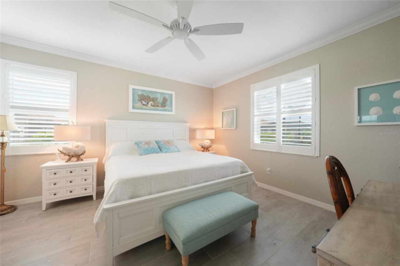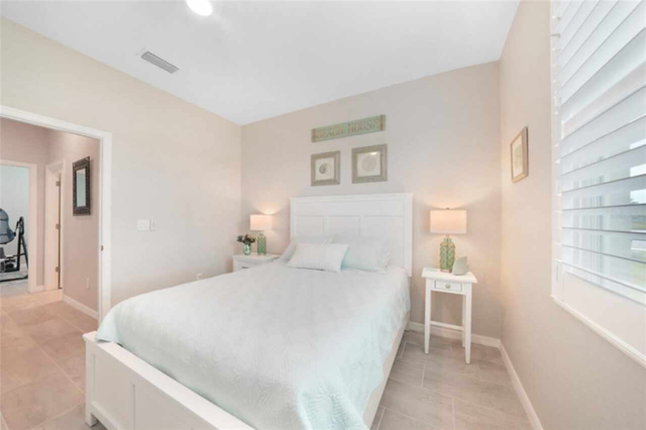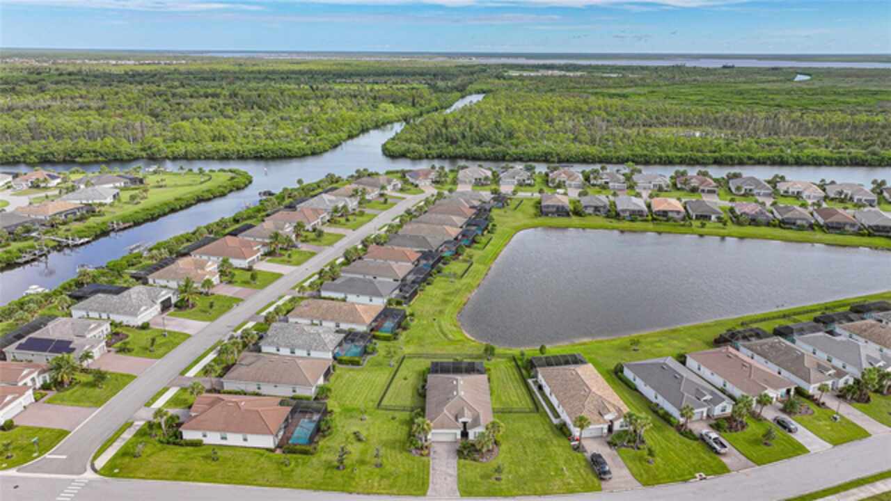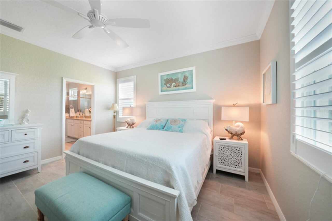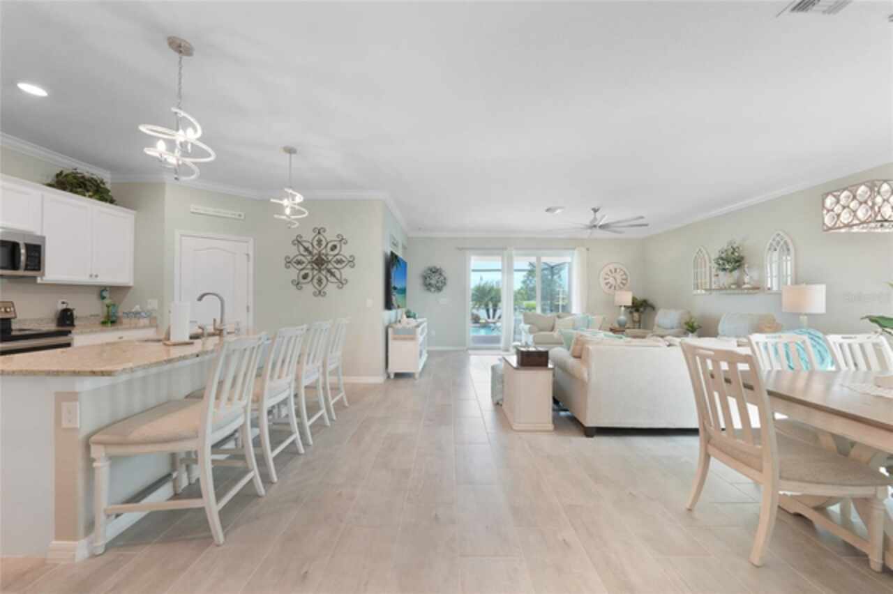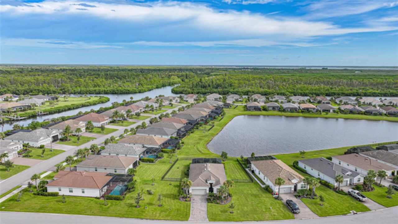 BEST VALUE IN HARBOR WEST! Enjoy the largest interior lot in the community that is completely FENCED and has a HUGE BACKYARD. This 4-bedroom, 3-bathroom home boasts a HEATED POOL & SPA, an EXTENDED LANAI and an already large patio that is perfect for relaxing and enjoying the serene LAKE-VIEW while sitting by the pool. The home is fitted with IMPACT WINDOWS AND SLIDERS that grant FULL HURRICANE PROTECTION but also give you the benefit of never having to worry about putting up or taking down any hurricane shutters. Enjoy the convenience of a TILE ROOF that typically last much longer than a standard shingle roof and gives the home a Mediterranean style look. Inside you'll find a spacious open-floor plan with a split bedroom layout outfitted with 12x24 throughout the home and beautiful granite countertops across all of the countertops in both the kitchen and bathrooms. The charming upgraded white kitchen features a large island for an informal dining space, a large pantry, and stainless-steel appliances. The primary bedroom is ample in space and comes with two big-walk in closets. The primary bathroom comes complete with his and her sinks and a large shower with a Kohler Artifacts Hydro rail system with a rain head attachment or a handheld attachment for your showering pleasure. The 2nd bedroom is also very spacious and is positioned in a private part of the home away from the other bedrooms and comes with its very own on-suite bathroom. The front wing of the home comes with two more well-sized bedrooms that can be used for a variety of things besides just a bedroom, maybe a den, office, workout room, etc. The front wing comes with its own convenient bathroom. Great for guests or for quick use. The large laundry room is located just off the 2-car garage and is outfitted with 42' soft close cabinets. Underrated features include charming plantation shutters on the interior of all the windows, elegant lighting and upscale fans, Koehler faucets in master bathroom and matching towel and toiletry bars in all baths. The brick paver patio has been maintained and resealed to increase its longevity. The paver driveway is large and wraps around to the air handler. The home has a nice screened in entryway with decorative front shutters. The whole house has gutters around it. Gray plank tile throughout and a warm light neutral gray interior lends the perfect backdrop for your designer inspirations. This is located in Harbor West which is a GATED COMMUNITY with NO CDD FEES. The lawn Maintenace and irrigation is taken care of by the community. This property is not one that you'll want to miss. BE SURE TO VIEW THE 3D VIRTUAL TOUR ON ZILLOW. Don't forget the close proximity this property has to both Manasota Key Beach and Englewood Beach as well to Restaurants, bars, grocery stores, medical offices. Tampa Rays and Atlanta Braves play Spring Training nearby every year. You won't be disappointed with this located! This home has NEVER FLOODED, and a Survey and Elevation Certificate are available. Call your agent to book your showing today!