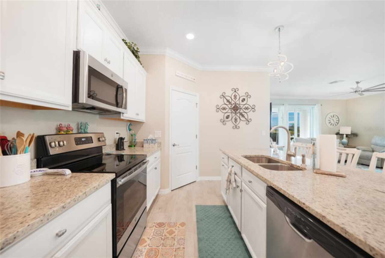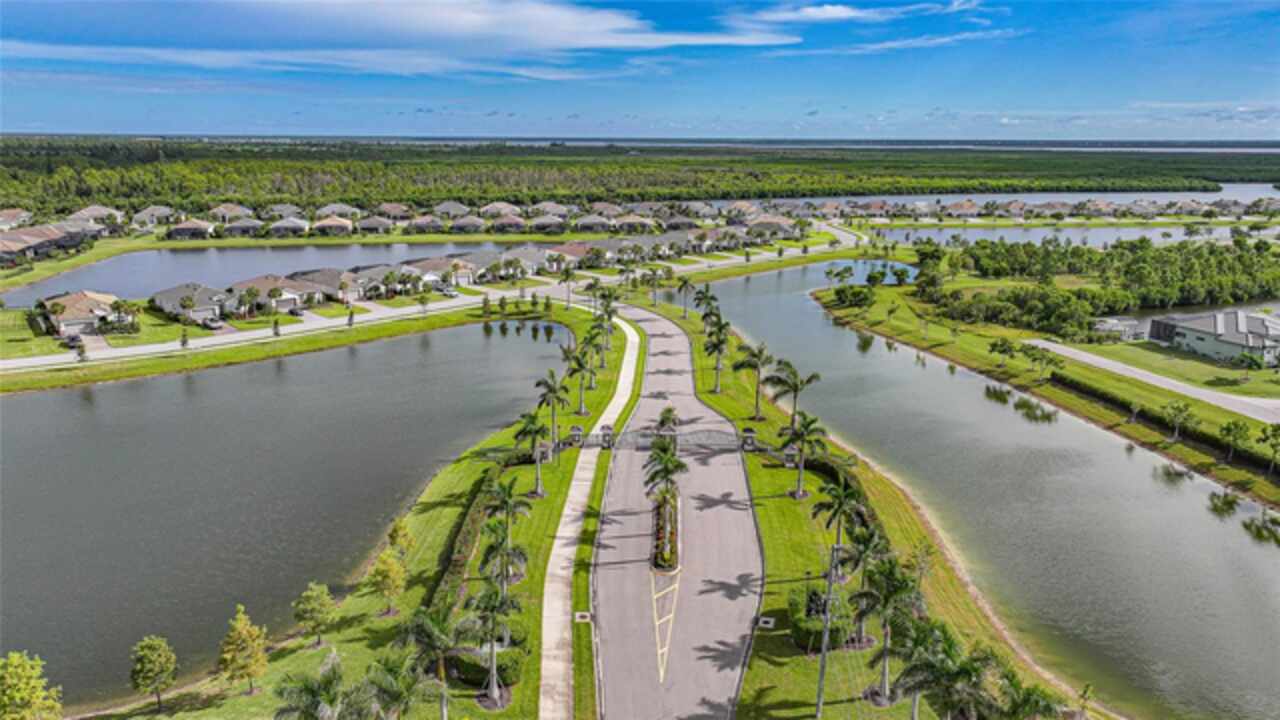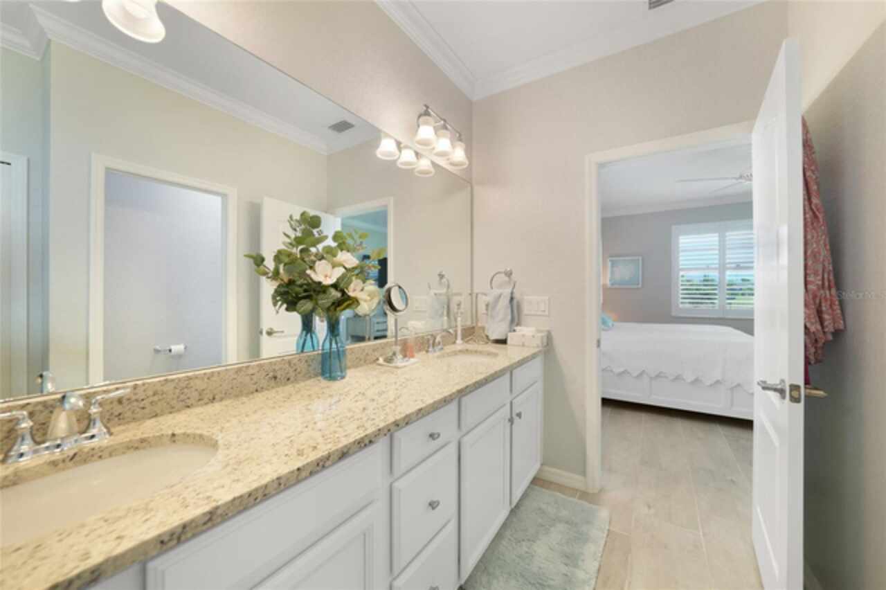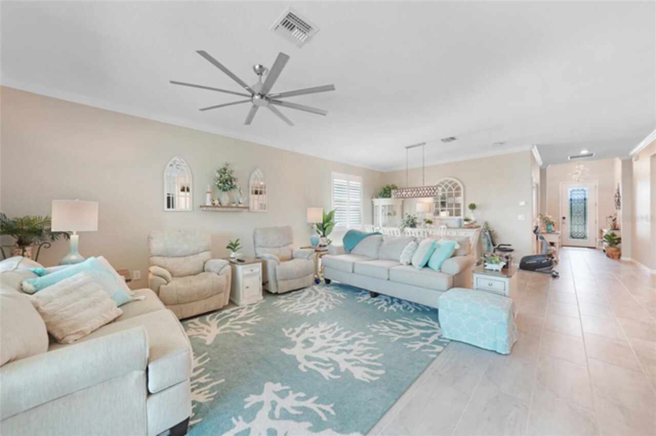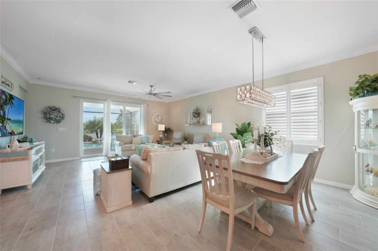 BEST VALUE IN HARBOR WEST! Enjoy the largest interior lot in the community that is completely FENCED and has a HUGE BACKYARD. This 4-bedroom, 3-bathroom home boasts a HEATED POOL & SPA, an EXTENDED LANAI and an already large patio that is perfect for relaxing and enjoying the serene LAKE-VIEW while sitting by the pool. The home is fitted with IMPACT WINDOWS AND SLIDERS that grant FULL HURRICANE PROTECTION but also give you the benefit of never having to worry about putting up or taking down any hurricane shutters. Enjoy the convenience of a TILE ROOF that typically last much longer than a standard shingle roof and gives the home a Mediterranean style look. Inside you'll find a spacious open-floor plan with a split bedroom layout outfitted with 12x24 throughout the home and beautiful granite countertops across all of the countertops in both the kitchen and bathrooms. The charming upgraded white kitchen features a large island for an informal dining space, a large pantry, and stainless-steel appliances. The primary bedroom is ample in space and comes with two big-walk in closets. The primary bathroom comes complete with his and her sinks and a large shower with a Kohler Artifacts Hydro rail system with a rain head attachment or a handheld attachment for your showering pleasure. The 2nd bedroom is also very spacious and is positioned in a private part of the home away from the other bedrooms and comes with its very own on-suite bathroom. The front wing of the home comes with two more well-sized bedrooms that can be used for a variety of things besides just a bedroom, maybe a den, office, workout room, etc. The front wing comes with its own convenient bathroom. Great for guests or for quick use. The large laundry room is located just off the 2-car garage and is outfitted with 42' soft close cabinets. Underrated features include charming plantation shutters on the interior of all the windows, elegant lighting and upscale fans, Koehler faucets in master bathroom and matching towel and toiletry bars in all baths. The brick paver patio has been maintained and resealed to increase its longevity. The paver driveway is large and wraps around to the air handler. The home has a nice screened in entryway with decorative front shutters. The whole house has gutters around it. Gray plank tile throughout and a warm light neutral gray interior lends the perfect backdrop for your designer inspirations. This is located in Harbor West which is a GATED COMMUNITY with NO CDD FEES. The lawn Maintenace and irrigation is taken care of by the community. This property is not one that you'll want to miss. BE SURE TO VIEW THE 3D VIRTUAL TOUR ON ZILLOW. Don't forget the close proximity this property has to both Manasota Key Beach and Englewood Beach as well to Restaurants, bars, grocery stores, medical offices. Tampa Rays and Atlanta Braves play Spring Training nearby every year. You won't be disappointed with this located! This home has NEVER FLOODED, and a Survey and Elevation Certificate are available. Call your agent to book your showing today!