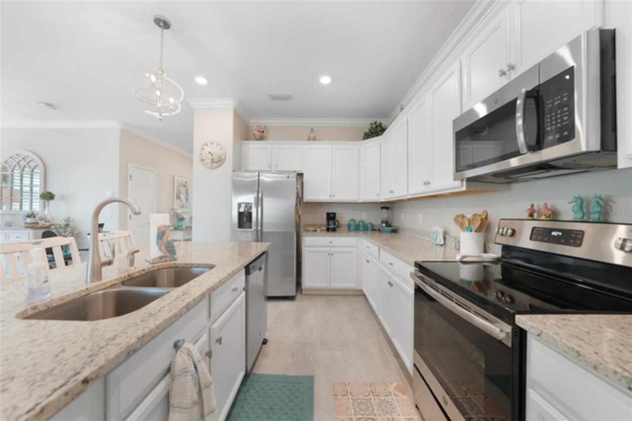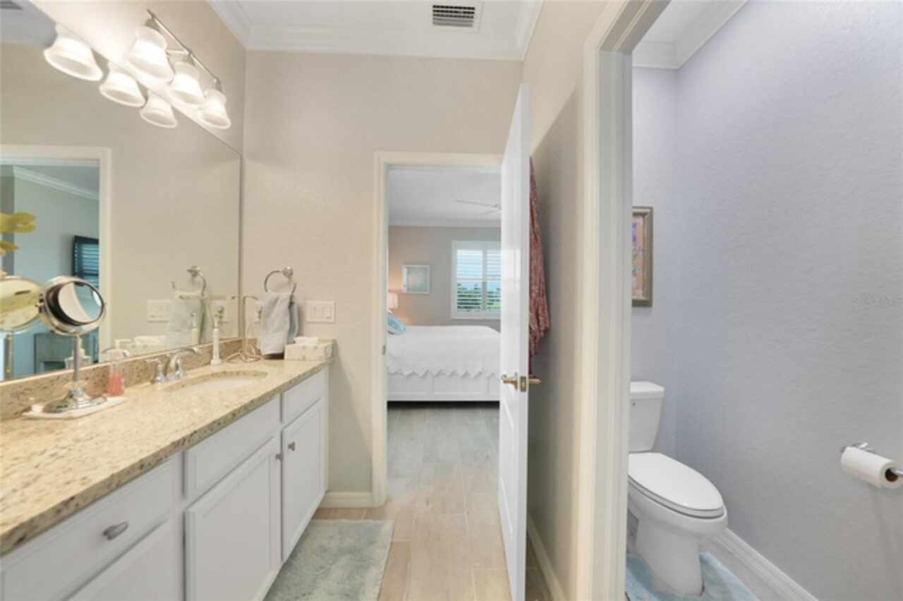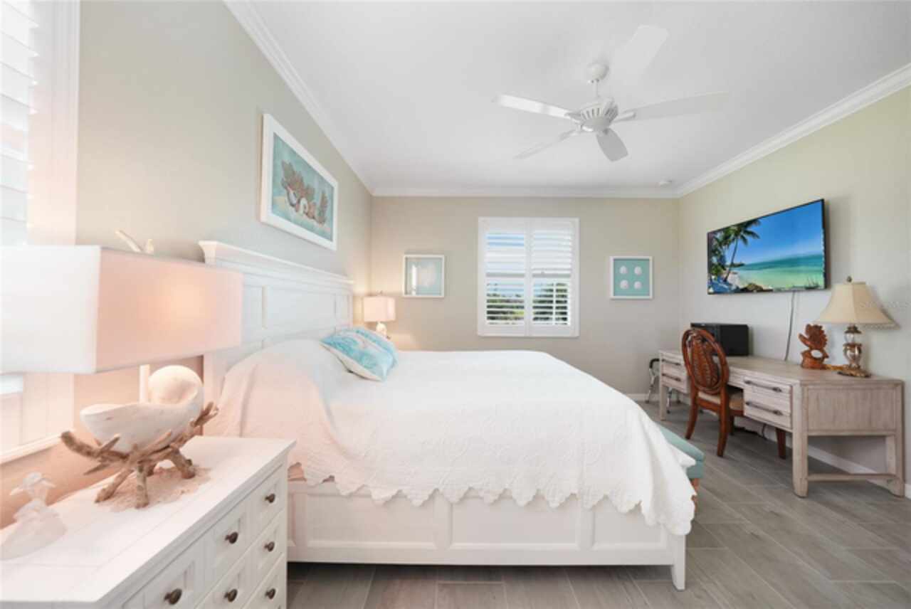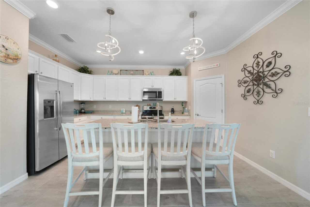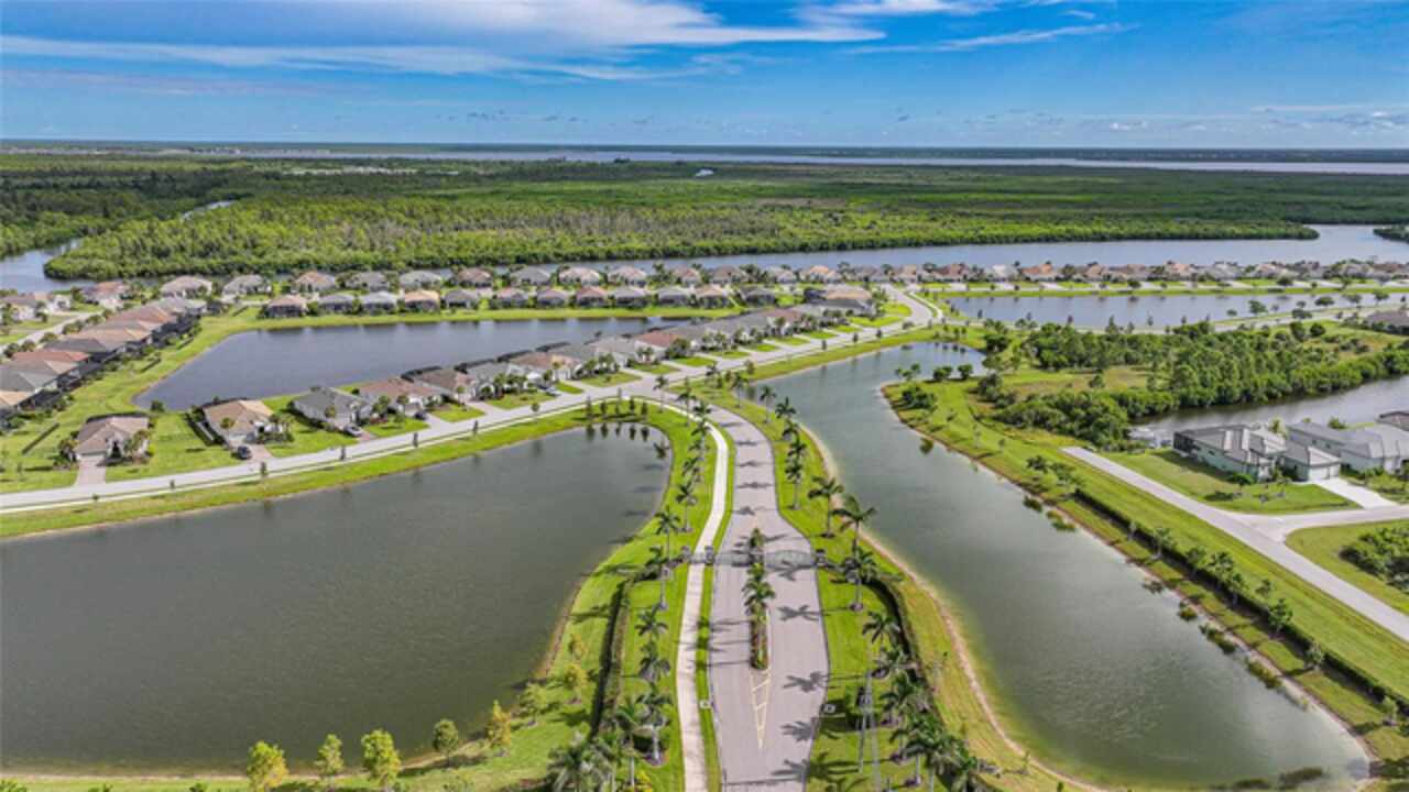 BEST VALUE IN HARBOR WEST! Enjoy the largest interior lot in the community that is completely FENCED and has a HUGE BACKYARD. This 4-bedroom, 3-bathroom home boasts a HEATED POOL & SPA, an EXTENDED LANAI and an already large patio that is perfect for relaxing and enjoying the serene LAKE-VIEW while sitting by the pool. The home is fitted with IMPACT WINDOWS AND SLIDERS that grant FULL HURRICANE PROTECTION but also give you the benefit of never having to worry about putting up or taking down any hurricane shutters. Enjoy the convenience of a TILE ROOF that typically last much longer than a standard shingle roof and gives the home a Mediterranean style look. Inside you'll find a spacious open-floor plan with a split bedroom layout outfitted with 12x24 throughout the home and beautiful granite countertops across all of the countertops in both the kitchen and bathrooms. The charming upgraded white kitchen features a large island for an informal dining space, a large pantry, and stainless-steel appliances. The primary bedroom is ample in space and comes with two big-walk in closets. The primary bathroom comes complete with his and her sinks and a large shower with a Kohler Artifacts Hydro rail system with a rain head attachment or a handheld attachment for your showering pleasure. The 2nd bedroom is also very spacious and is positioned in a private part of the home away from the other bedrooms and comes with its very own on-suite bathroom. The front wing of the home comes with two more well-sized bedrooms that can be used for a variety of things besides just a bedroom, maybe a den, office, workout room, etc. The front wing comes with its own convenient bathroom. Great for guests or for quick use. The large laundry room is located just off the 2-car garage and is outfitted with 42' soft close cabinets. Underrated features include charming plantation shutters on the interior of all the windows, elegant lighting and upscale fans, Koehler faucets in master bathroom and matching towel and toiletry bars in all baths. The brick paver patio has been maintained and resealed to increase its longevity. The paver driveway is large and wraps around to the air handler. The home has a nice screened in entryway with decorative front shutters. The whole house has gutters around it. Gray plank tile throughout and a warm light neutral gray interior lends the perfect backdrop for your designer inspirations. This is located in Harbor West which is a GATED COMMUNITY with NO CDD FEES. The lawn Maintenace and irrigation is taken care of by the community. This property is not one that you'll want to miss. BE SURE TO VIEW THE 3D VIRTUAL TOUR ON ZILLOW. Don't forget the close proximity this property has to both Manasota Key Beach and Englewood Beach as well to Restaurants, bars, grocery stores, medical offices. Tampa Rays and Atlanta Braves play Spring Training nearby every year. You won't be disappointed with this located! This home has NEVER FLOODED, and a Survey and Elevation Certificate are available. Call your agent to book your showing today!