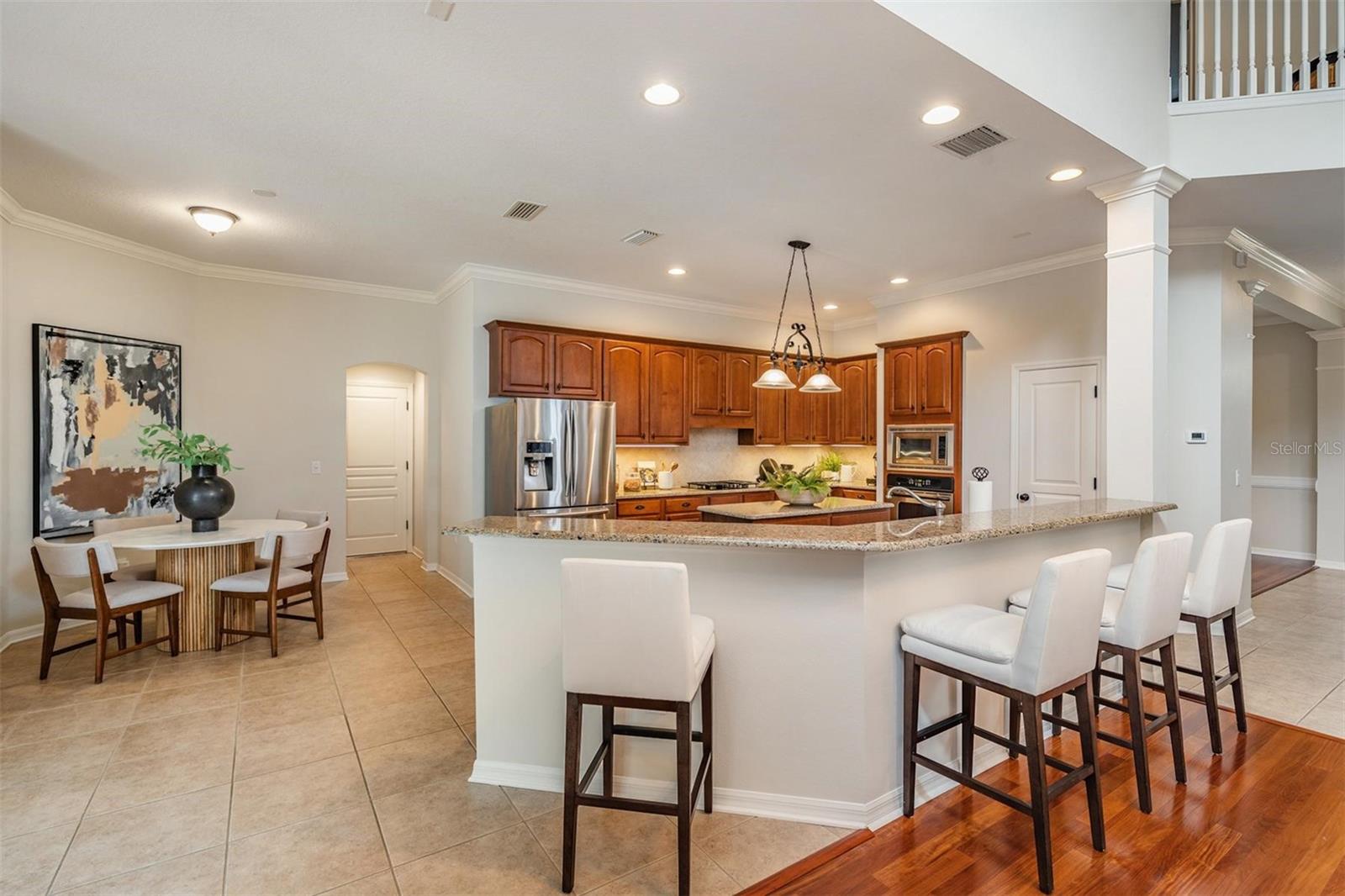 Crown Molding, Eat-in Kitchen, High Ceilings, Open Floorplan, Primary Bedroom Main Floor, Thermostat, Walk-In Closet(s)