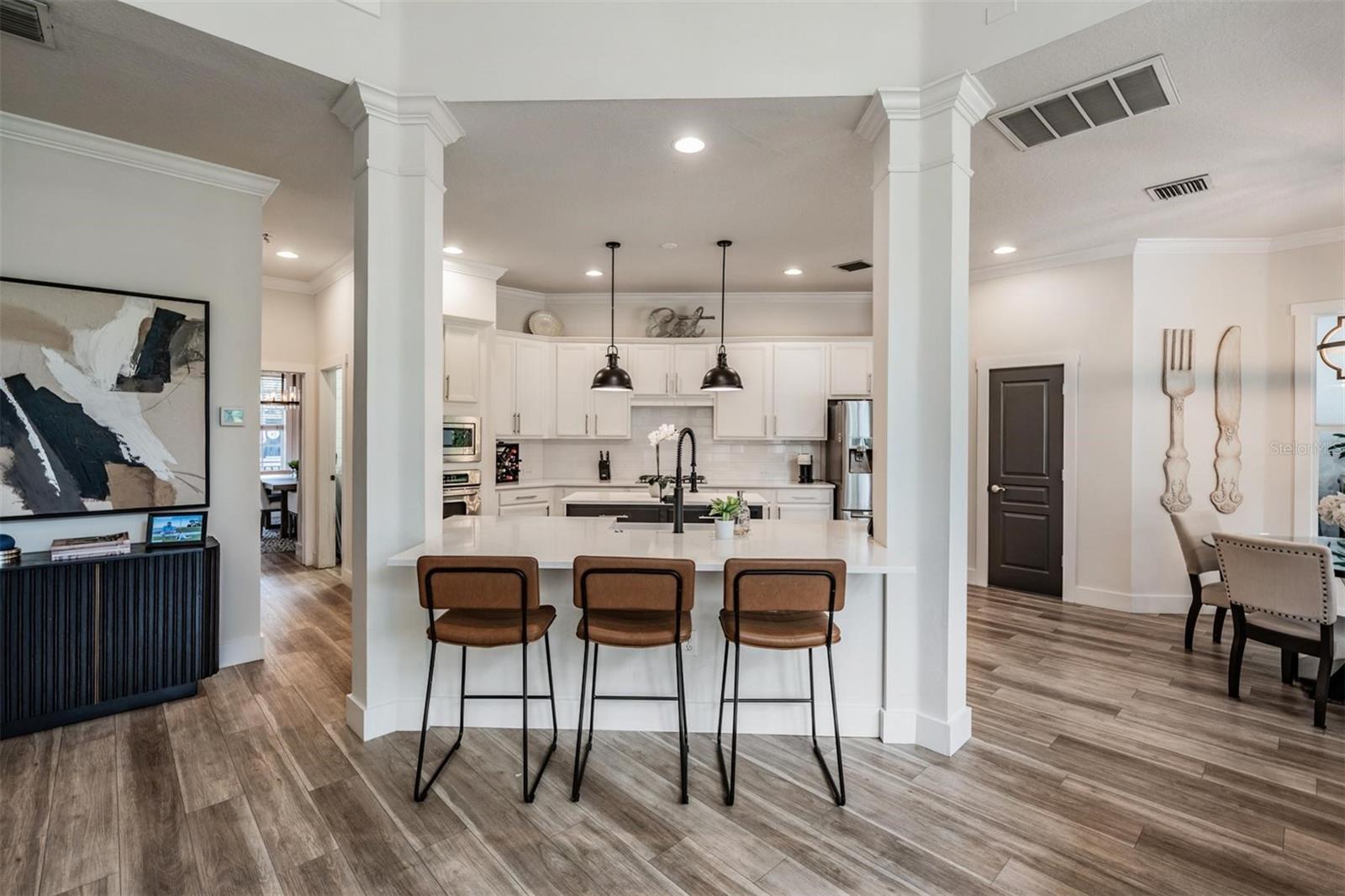 Stunning 5-bedroom, 3.5-bathroom pool home in the highly sought-after Highland Park community. This beautifully updated residence offers a very spacious and open floorplan, newly painted interior and exterior, new luxury vinyl flooring, a new downstairs AC, and a new roof installed in November 2021. The expansive chef’s kitchen features quartz countertops, 42-inch cabinetry, stainless steel appliances, a gas cooktop, a large center island, and a walk-in pantry, all overlooking the bright and open family room complete with a custom-built fireplace and elegant woodwork. The first-floor primary suite offers tranquil views of the pool and conservation area, along with a fully updated master bathroom featuring a walk-in shower, jetted garden tub, dual granite vanities, and a huge walk-in closet. Upstairs you will find four additional full bedrooms and two bathrooms, providing ample space for family and guests. The backyard features a beautifully refinished pool and spa and a sprawling, fully fenced yard overlooking peaceful conservation—perfect for entertaining and enjoying Florida living. Highland Park offers exceptional resort-style amenities including a lakeside clubhouse, a stunning pool overlooking Galt Lake, a renovated fitness center, playground, Atlas Pizza, a neighborhood wine and beer bar, and a variety of community events throughout the year. Ideally located just minutes from shopping, dining, the Ed Radice Sports soccer and baseball complex, Tampa International Airport, Downtown Tampa, and Florida’s award-winning Gulf beaches, this home truly combines luxury, comfort, and convenience in one of Tampa’s most desirable communities.