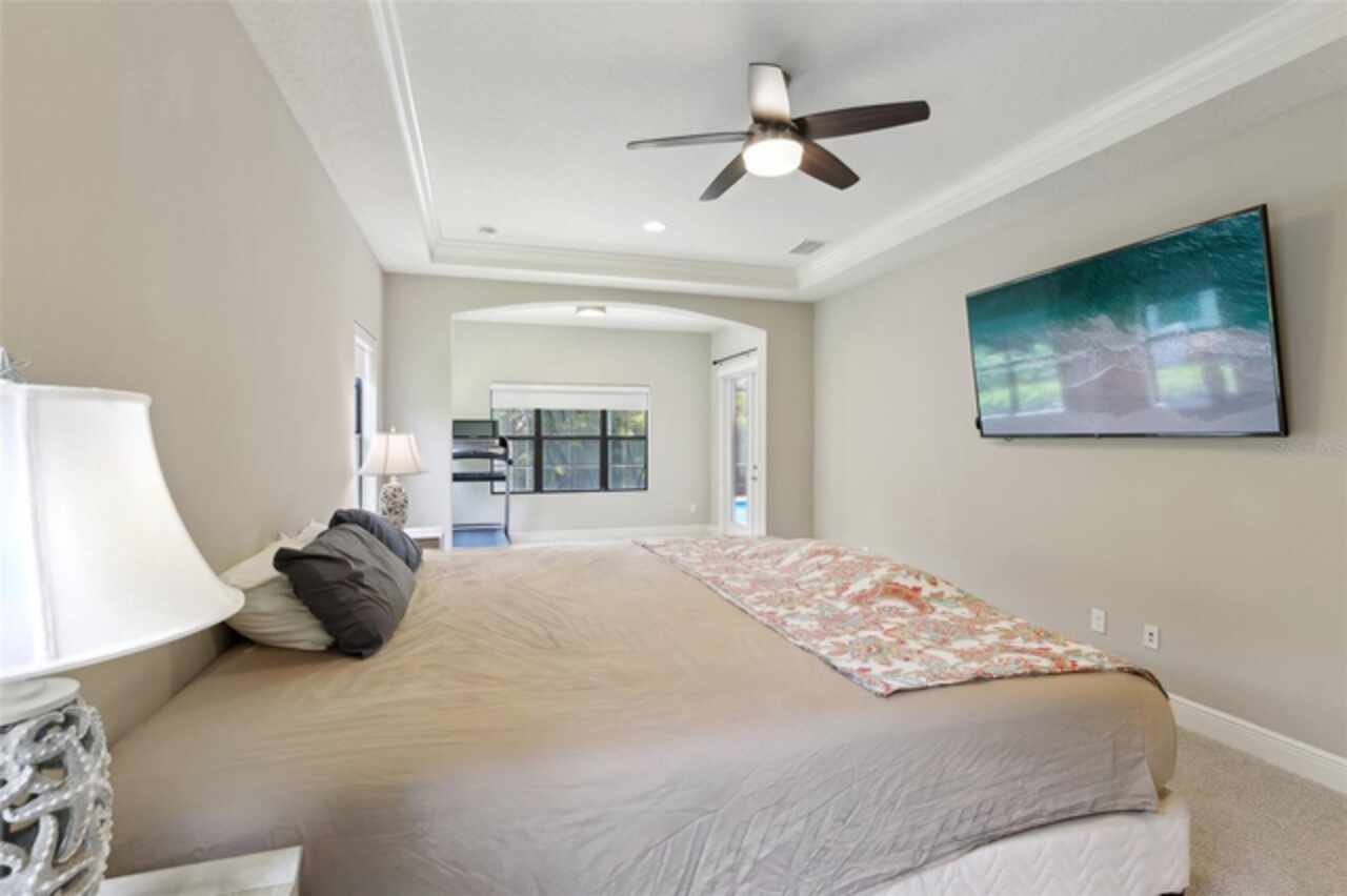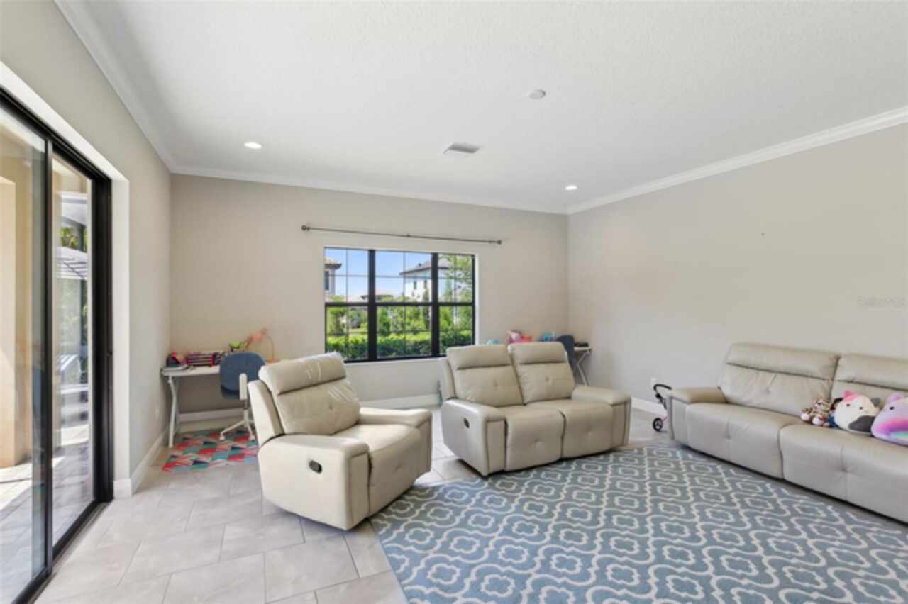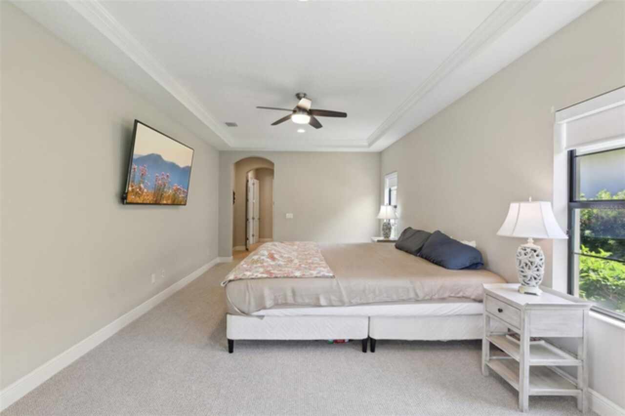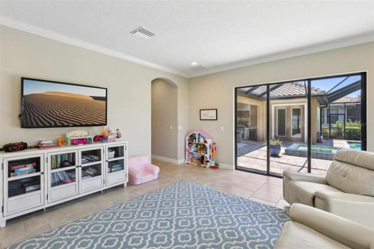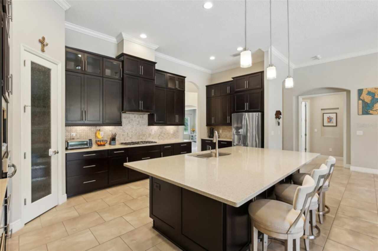 Welcome to 14715 FishHawk Preserve Drive—a beautifully upgraded WestBay “Carrera” executive home in the exclusive gated enclave of The Preserve at FishHawk Ranch. This spacious one-story residence offers over 3, 600 sq ft of functional luxury on a private, elevated lot. You’ll be immediately impressed by the tile roof, stacked stone accents, pavered driveway, and side-entry garage. Inside, the home boasts soaring ceilings, wide baseboards, crown molding, and neutral tones, creating an elegant and welcoming atmosphere. A dedicated office with French doors and a formal dining room with tray ceiling greet you at the entrance—perfect for both productivity and entertaining. At the heart of the home, the open kitchen and great room are built for connection and comfort. The kitchen features espresso-finish maple cabinets, Zodiaq quartz countertops, a large island, built-in oven, walk-in pantry, and stainless steel appliances. The great room showcases a stacked stone electric fireplace and a 4-panel slider leading to the lanai and pool. The primary suite is a serene retreat, complete with tray ceiling, custom window treatments, French door access to the lanai, and two walk-in closets. The en-suite bath offers dual vanities, a soaking tub, and a walk-in shower. All bedrooms feature brand-new plush carpet. A large bonus room at the rear of the home is perfect for a media room or future bar—with wet bar pre-plumbing already in place. Step outside to your private resort-style lanai, featuring a saltwater pool and spa with bubbling fountains, pavered decking, and an outdoor kitchen with grill, sink, and fridge—perfect for hosting family and friends. Residents of The Preserve enjoy world-class amenities, including clubhouses, resort pools, tennis courts, fitness centers, playgrounds, and 25+ miles of trails. Zoned for A-rated schools and minutes from shopping, dining, Tampa, MacDill AFB, and Florida’s beautiful beaches—this home truly has it all.