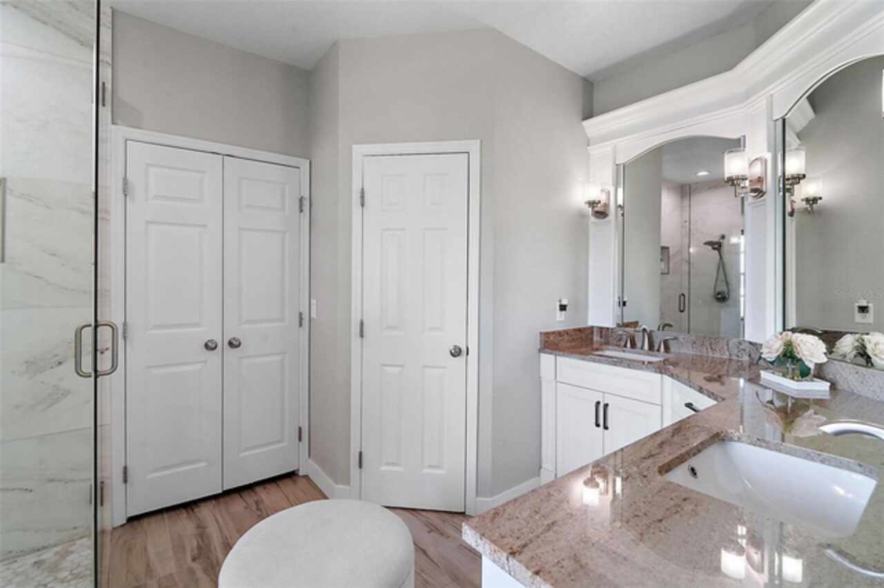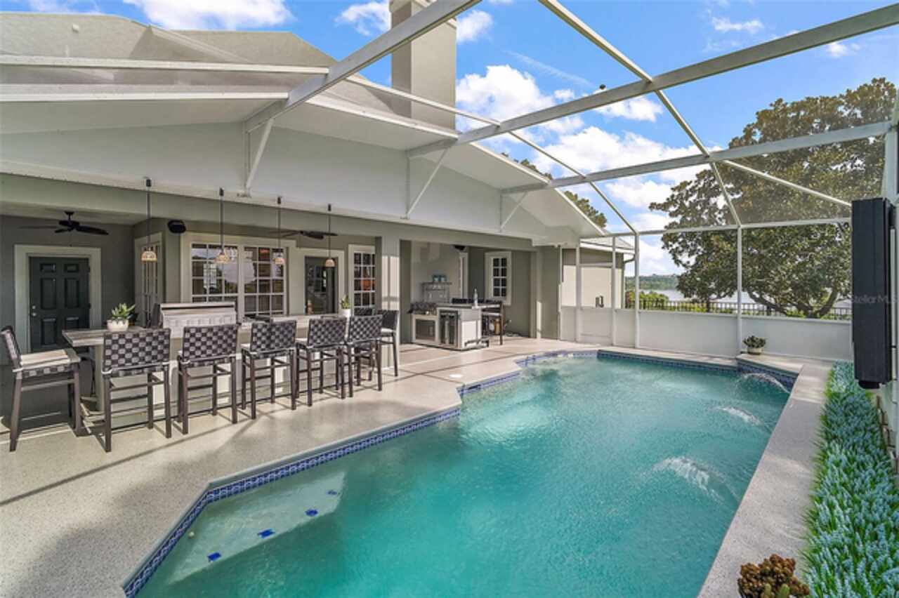 SIGNIFICANT PRICE DROP!! SELLERS ARE MOTIVATED. DO NOT MISS OUT ON THIS GORGEOUS LAKE ACCESS-LAKEVIEW HOME. ONLY 26 HOMES IN THIS QUAINT NEIGHBORHOOD! Experience luxury living in Gourd Neck Springs, a private, gated waterfront community with exclusive resident-only access to Lake Apopka via a private boat ramp. This beautifully renovated 4-bedroom, 3.5-bath home sits on a 0.69-acre fully fenced corner lot and showcases over $250, 000 in recent updates, offering stunning water views, a screen-enclosed pool, and premium finishes throughout. Major Renovations Include: Fully painted interior, exterior, pool deck, and garage (epoxy flooring by OX Floors in garage and pool deck)New pool deck drain, pool screen, and heat pump Outdoor kitchen & bar with built-in grill, cooktop, TV hookup, and sound system New paver patios, fenced backyard, and refreshed landscaping with all new bushes New insulated garage door and mini-split A/C in garage Upgraded heat pump with multiple zones New flooring throughout home Custom staircase treads and railings New custom kitchen with granite countertops, full granite backsplash, and gas cooktop with pot filler Breakfast nook and living room entertainment center with custom cabinets and seating Updated baseboards, hinges, and door hardware throughout Luxurious master bath remodel with custom cabinets and spa-style shower Custom bedroom closet systems Half-bath with marble accent wall Complete re-plumbing of the home with new faucets and valves Automatic fire sprinkler system for enhanced safety Interior Highlights: As you step inside, you’ll be greeted by soaring ceilings, crown molding, and oversized windows that flood the home with natural light. The open floor plan creates an airy flow, featuring a formal dining room and a versatile sitting area or office. The main-floor primary suite offers breathtaking lake views, a walk-in closet, and a spa-like en-suite bath with dual vanities, a jetted tub, and a separate shower. Upstairs, enjoy a private junior suite with its own full bath, plus two additional bedrooms and another full bathroom. Outdoor Living: The screen-enclosed pool and expansive covered lanai create the perfect setting for relaxation and entertaining. With a full outdoor kitchen and bar, plus new paver patios and a beautifully landscaped backyard, this home is ideal for enjoying Florida’s year-round sunshine. Location: Just minutes from Montverde Academy, Bella Collina, and downtown Winter Garden, with easy access to the West Orange Trail, Orlando’s major attractions, and the international airport. This move-in-ready home combines luxury, comfort, and thoughtful updates—making it a rare find in one of the area’s most sought-after communities.