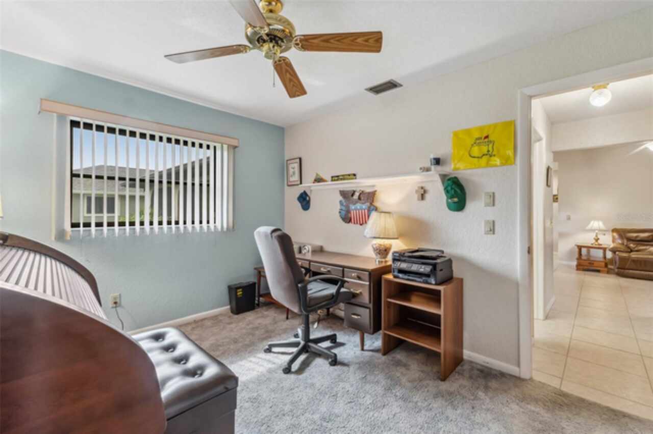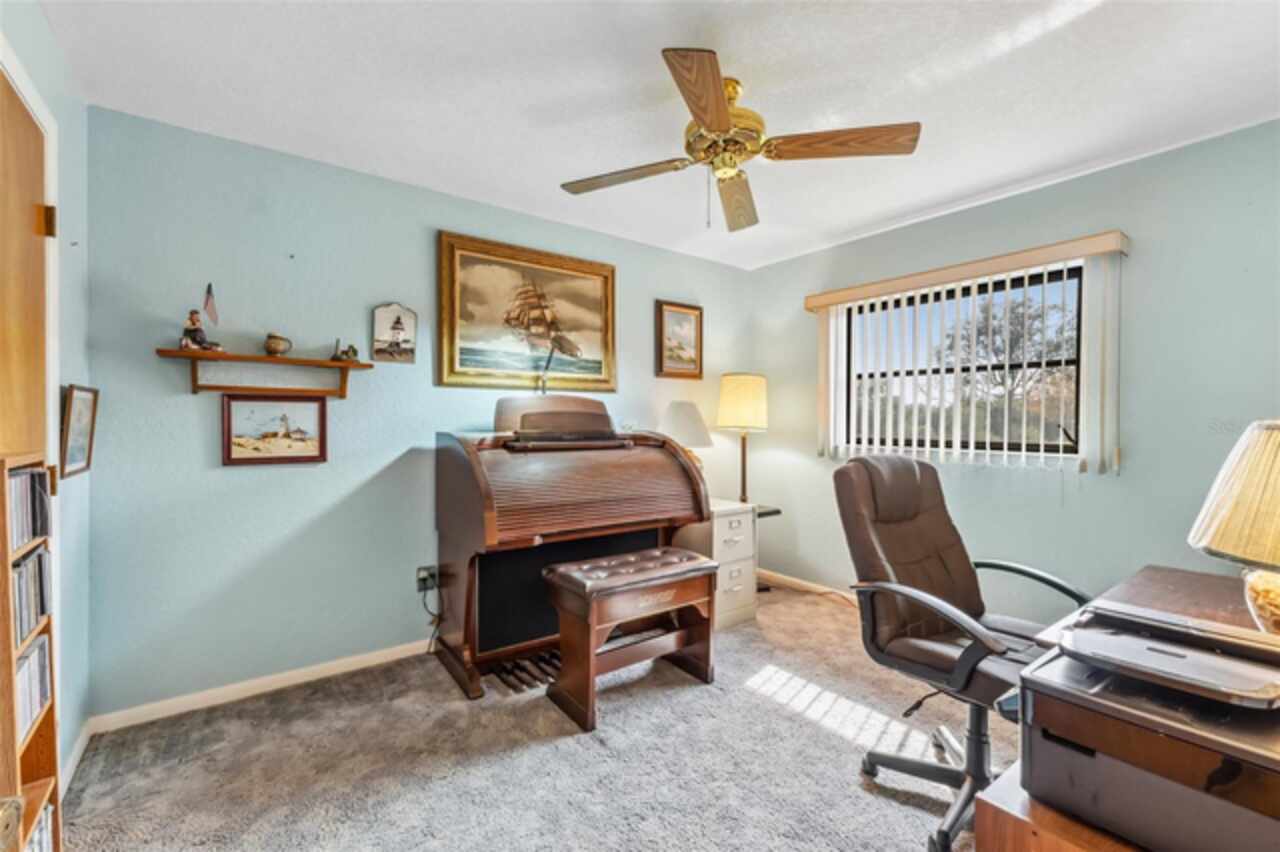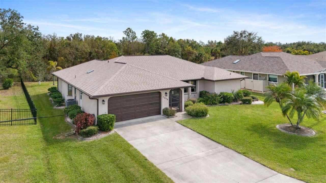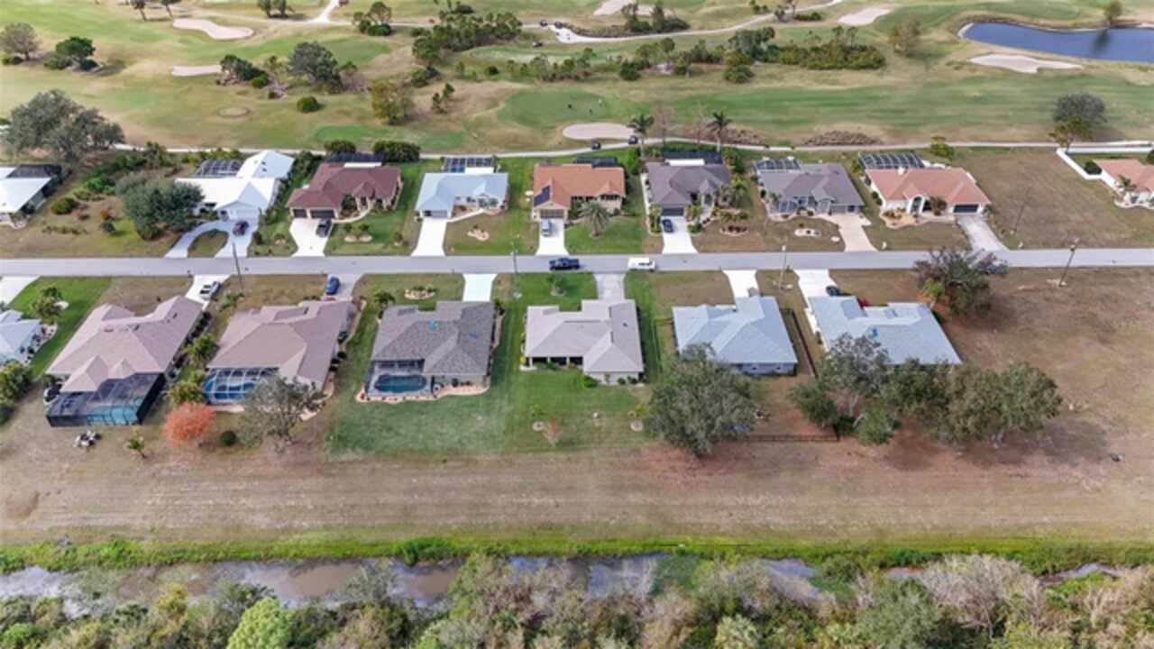 ALL MAJOR COMPONENTS ARE NEW WITHIN 2 YEARS. WATER HEATER, A/C, ROOF, SHUTTERS HURRICANE RATED FOR LOWER INSURANCE TOO! ARTESIAN WELL FOR WATERING...This living room, dining room combo home when built was a hit as best floor plan to copy in it time. Many builders had great success with slight variations. The huge, covered liana 29x12 extends much of the back view which is a creek as Greenbelt and woods beyond that. Will never be neighbors in the back. That said houses on both sides have been there a while with the good charm to this street. Great golfing community as well. Inside a large, structured home with many new features. Place has a 300' well system for sprinklers Q System garage door opener, double pantry in kitchen, laundry inside with skylight, under wood cabinet lighting in kitchen, Granite counter tops, stainless steel refrigerator and many more. GREAT FAMILY HOME!