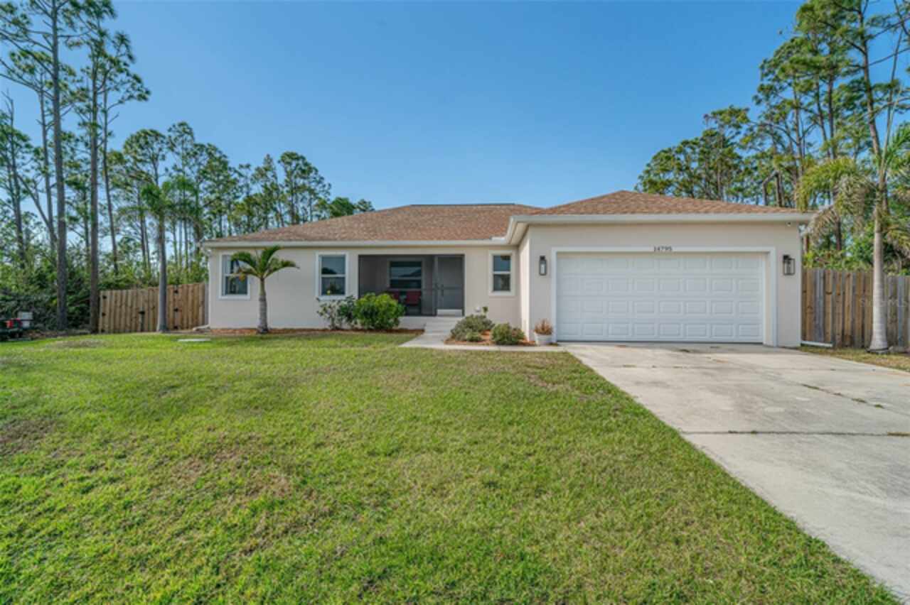 Nestled in the highly desirable South Gulf Cove community of Port Charlotte, this beautifully upgraded 3-bedroom, 2-bathroom home offers modern comfort and coastal charm. Featuring an open-concept design, the spacious living area is perfect for both entertaining and everyday relaxation. The gourmet kitchen boasts stainless steel appliances, granite countertops, and custom cabinetry, creating a stylish and functional space for cooking and gathering. The primary suite provides a peaceful retreat with a walk-in closet and an en-suite bathroom featuring dual vanities. Step outside to enjoy the fully fenced-in yard, offering privacy and ample space for pets, or outdoor entertaining. A screened lanai allows you to relax and take in the beautiful Florida weather year-round. The 2-car garage provides plenty of storage and convenience. Thoughtfully upgraded throughout, this home is move-in ready and designed for modern living. Located in a boater’s paradise, South Gulf Cove offers direct access to Charlotte Harbor and the Gulf of Mexico, making it a dream location for water enthusiasts. Just a short drive away, you’ll find Boca Grande Beach, Englewood Beach, and Manasota Key, as well as world-class fishing and public boat ramps. Golf lovers will appreciate the proximity to Rotonda Golf & Country Club and Riverwood Golf Club, while shoppers and food lovers can explore Port Charlotte Town Center and Fishermen’s Village in nearby Punta Gorda. Outdoor enthusiasts will love the nearby parks and nature preserves, including Myakka State Forest, Charlotte Harbor Preserve, and Stump Pass Beach State Park. With no HOA fees and optional community membership, this home offers the perfect balance of tranquility and convenience. Don’t miss your chance to own a piece of paradise in South Gulf Cove—schedule your showing today!