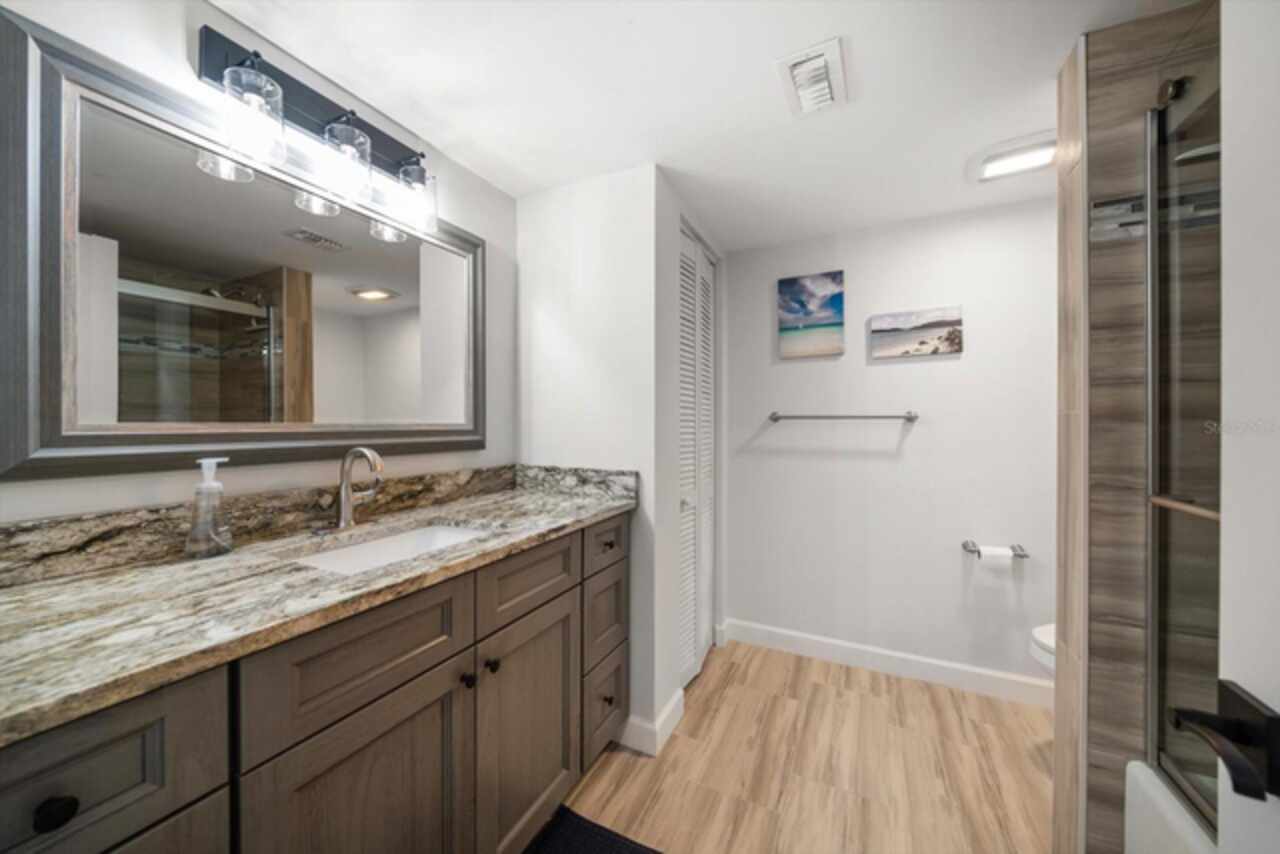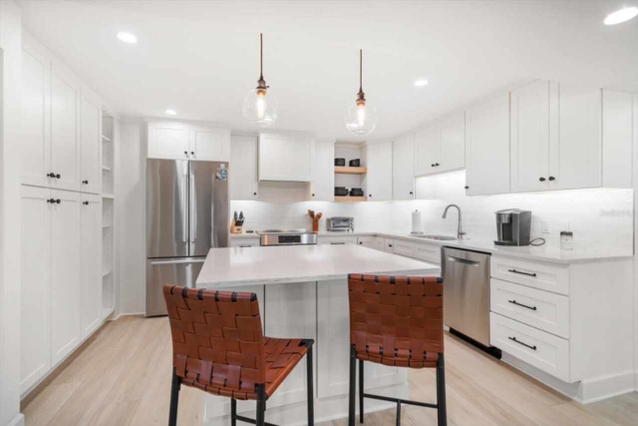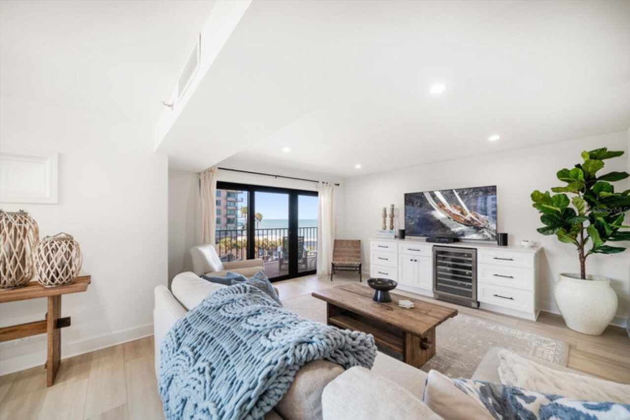 No expense was spared in the remarkable remodel of this exquisite gulf-front condo, designed to offer the ultimate beachside living experience with abundant living space and high-end upgrades. Featuring a spacious open floor plan that maximizes breathtaking beach views from every room, this home effortlessly blends style with function. The gourmet kitchen boasts solid wood cabinetry, luxurious quartz countertops, and a convenient breakfast island, perfect for casual dining or entertaining. Luxury vinyl flooring runs seamlessly throughout the entire space, while custom closets provide ample storage. The floor plan has been thoughtfully reconfigured to include a small office with a stunning Gulf view – ideal for remote work or a quiet retreat. This condo has been upgraded with all-new hurricane-impact-resistant windows and sliding glass doors, offering peace of mind and uninterrupted views. Custom lighting throughout the space creates a tranquil coastal ambiance, making it the perfect place to unwind and take in the beauty of the Gulf Coast. Enjoy breathtaking sunsets every evening and the added convenience of underbuilding parking. South Beach IV is a vibrant gated community that occupies one of the most pristine stretches of beach anywhere in the world! Amenities include a resort-style pool that overlooks the Gulf, tiki huts, gas grills, and a shaded pavilion, offering the perfect setting for relaxation and entertainment. Milestone Inspections and SIRS completed! Close to great shops, restaurants, entertainment, and the Jolly Trolly. This extraordinary property is a must-see for those seeking a luxurious coastal lifestyle, and turn-key furnishings are optional.