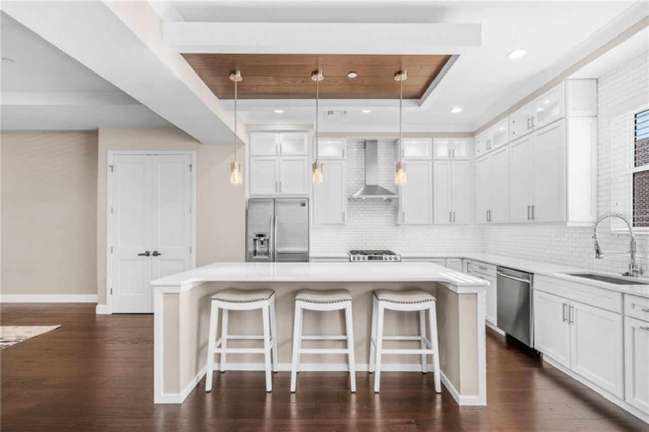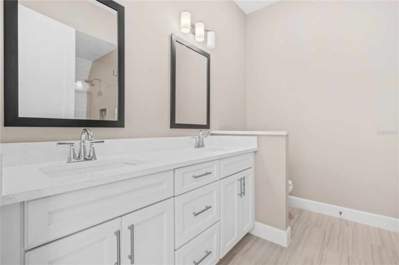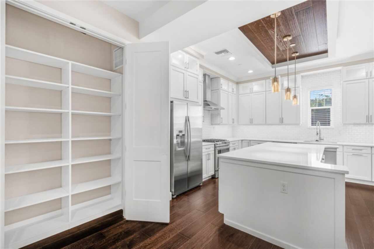 Gorgeous former model in this beautiful masonry wrapped complex in the heart of Winter Garden! Only 4 of these large 2900 SF units in entire complex which have a separate golf cart garage in addition to the two-car garage. Click on virtual tour for Matterport walk through and floorplan. This unit is elevator ready!! Ground level features a nice en-suite bedroom with walk in closet, full bath and option for additional washer and dryer. Gorgeous dark wood floors in all main areas. Main level offers a light and bright open floorplan with gourmet kitchen, custom inlay ceilings, pantry, dining area and light and bright living space with balcony and large windows and doors. The highly upgraded kitchen offers glass door cabinetry, lighting, stainless Samsung appliances, gas range, and beautiful granite counter tops with huge island for that special entertaining. The third floor is a wonderful retreat with spacious master suite and additional bedroom, both with full en-suite bathrooms and laundry area. Master suite has TWO huge walk-in closets and adjoining master bath featuring a double vanity, tile walls, luxury soaker tub, large glass enclosed walk-in shower. Additional features are Crown molding, recessed lighting, ceiling fans, custom plantation shutters, custom build in shelving organizers, pantry, on demand hot water heater, fire sprinklers, smoke and carbon monoxide detectors, prewired and plumbed for central vacuum system and so much more. Truly one of the most elegant units in the complex. This complex offers carefree lifestyle with a two-minute walk to all restaurants and shops in beautiful historic downtown Winter Garden. Some pictures have been virtually staged with furniture.