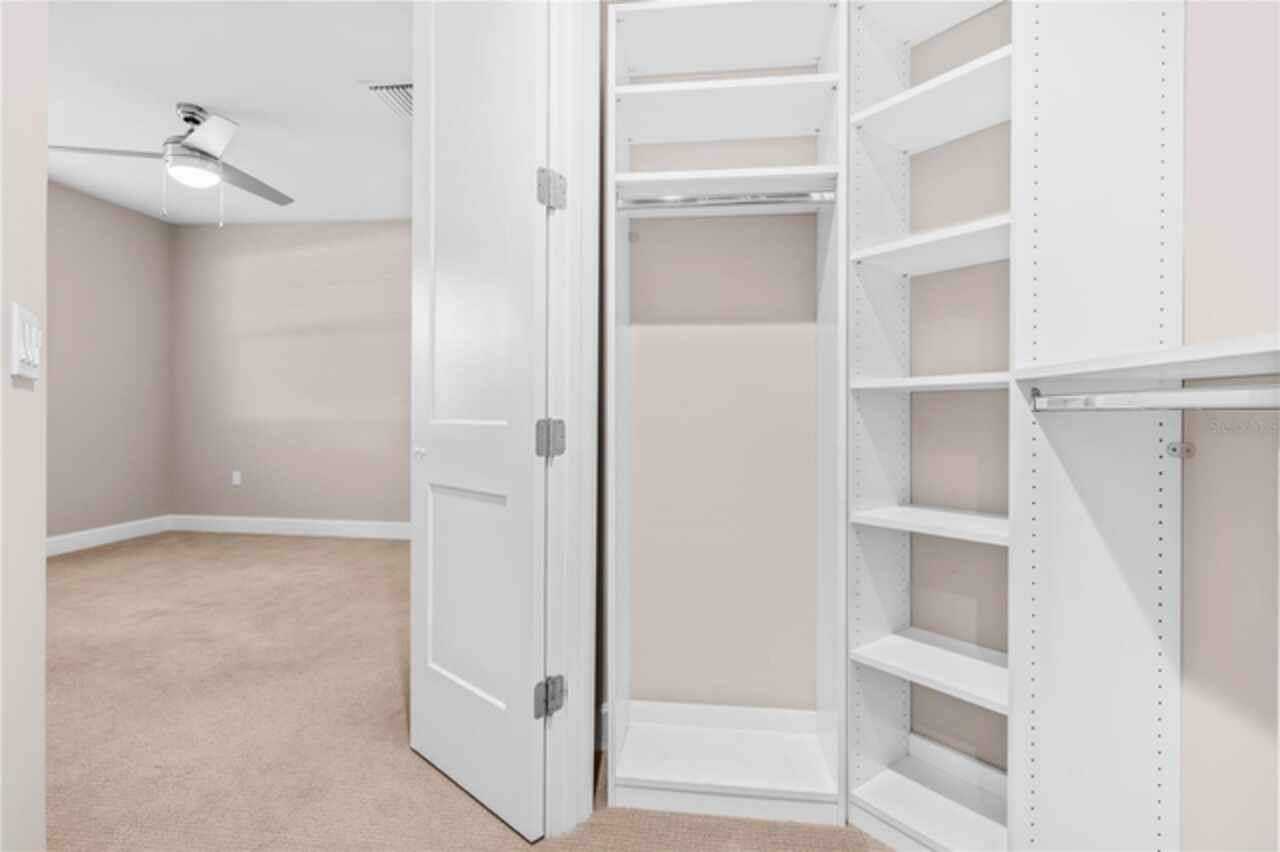 Ceiling Fans(s), Crown Molding, Eat-in Kitchen, Kitchen/Family Room Combo, PrimaryBedroom Upstairs, Solid Surface Counters, Stone Counters, Walk-In Closet(s)