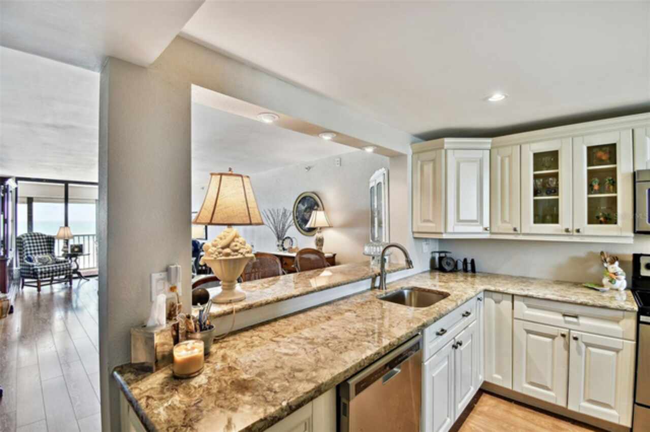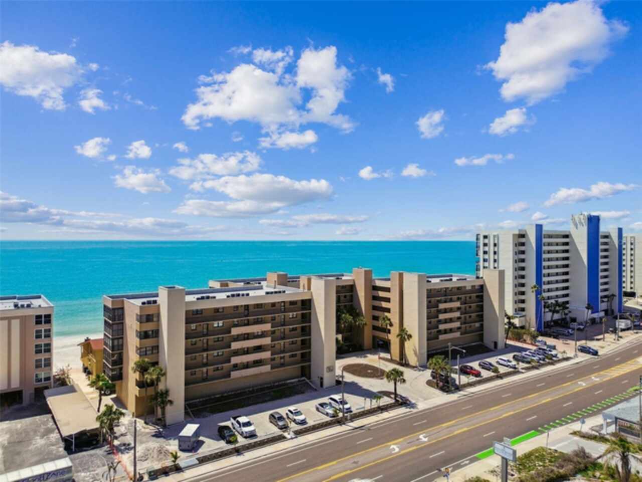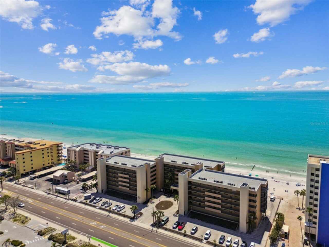 Seller is offering to pay monthly HOA dues through the end of the year with acceptable offer. Step into coastal elegance in this stunning beachfront condo, where breathtaking Gulf views and refined updates come together to create your personal slice of paradise. From the moment you enter, you’ll be drawn to the seamless open-concept layout, thoughtfully designed to showcase the sparkling water views and capture the essence of beachside living. The fully renovated kitchen is a beautiful blend of form and function, featuring solid wood cabinetry with soft-close doors and roll-out shelving, luxurious quartz countertops, a pantry, and sleek stainless steel appliances—ideal for everyday living and entertaining alike. Both spacious bedroom suites offer private ensuite bathrooms, creating the perfect setup for comfort, privacy, and guests. Notable upgrades include electric storm shutters, a new water heater, and updated finishes throughout. This well-maintained, concrete block building features a newer roof and resort-style amenities including a heated pool, spa, private beach access, and pet-friendly policies. The HOA covers cable, water, sewer, trash, building insurance, a deeded covered parking space, a secure private lobby entrance for peace of mind and more—offering low-maintenance luxury in an unbeatable location. Ideally located in the heart of Madeira Beach, you’re just steps from local restaurants, boutique shops, and beachside cafes, with John’s Pass Village just a short trolley ride away. Downtown St. Pete and Tampa International Airport are both within easy reach. Whether you’re seeking a full-time residence, a vacation retreat, or a smart investment—this is a rare opportunity to own your very own Gulf-front home in one of Florida’s most sought after coastal communities.