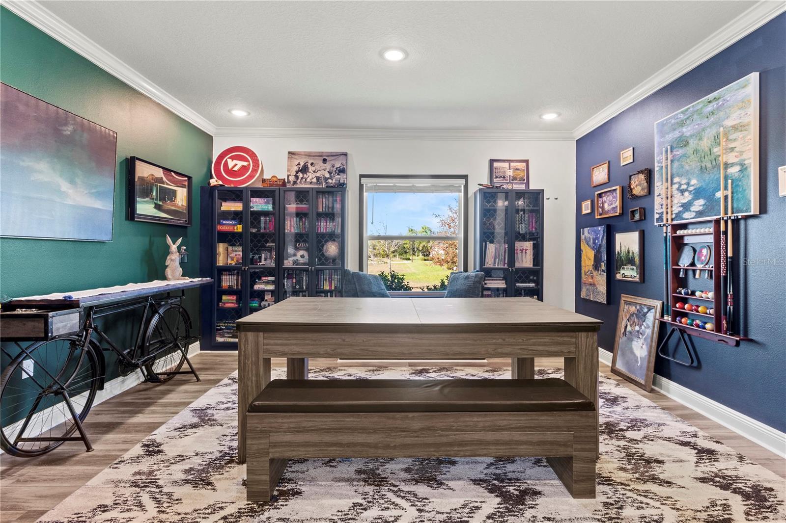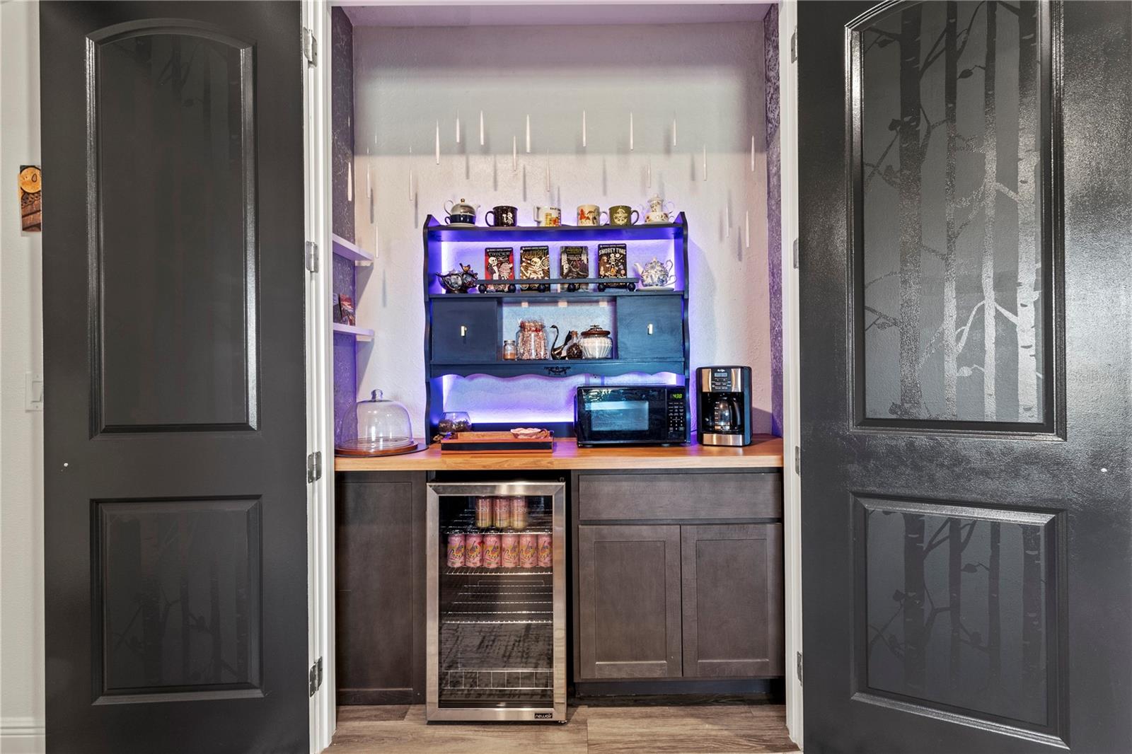 Crown Molding, Dry Bar, Eat-in Kitchen, High Ceilings, Living Room/Dining Room Combo, Open Floorplan, Primary Bedroom Main Floor, Walk-In Closet(s), Window Treatments
