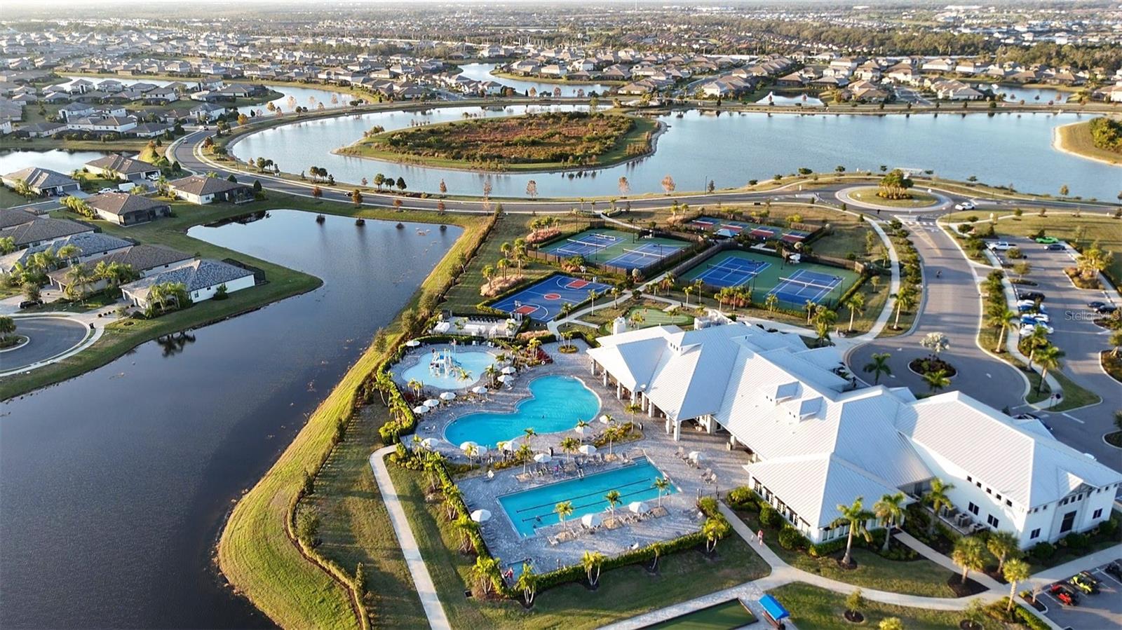 Welcome to your brand-new three-bedroom, three-bath retreat, perfectly positioned on a desirable corner lot in one of the area’s most amenity-rich communities. This light-filled home features an inviting open floor plan with quartz countertops, crisp white cabinetry, designer lighting, and a stunning designer kitchen that anchors the space. The owner’s suite is a true haven with dual walk-in closets and double vanities, offering comfort and convenience. Enjoy an extended screened-in lanai with paver flooring, ideal for relaxing or entertaining, and an epoxy-coated garage floor for added durability and style. A tankless water heater provides efficient, on-demand hot water throughout the home. With resort-style community amenities and close proximity to shopping, top-rated schools, and popular restaurants, this home delivers the perfect blend of style, comfort, and location. Move-in ready and waiting for you!