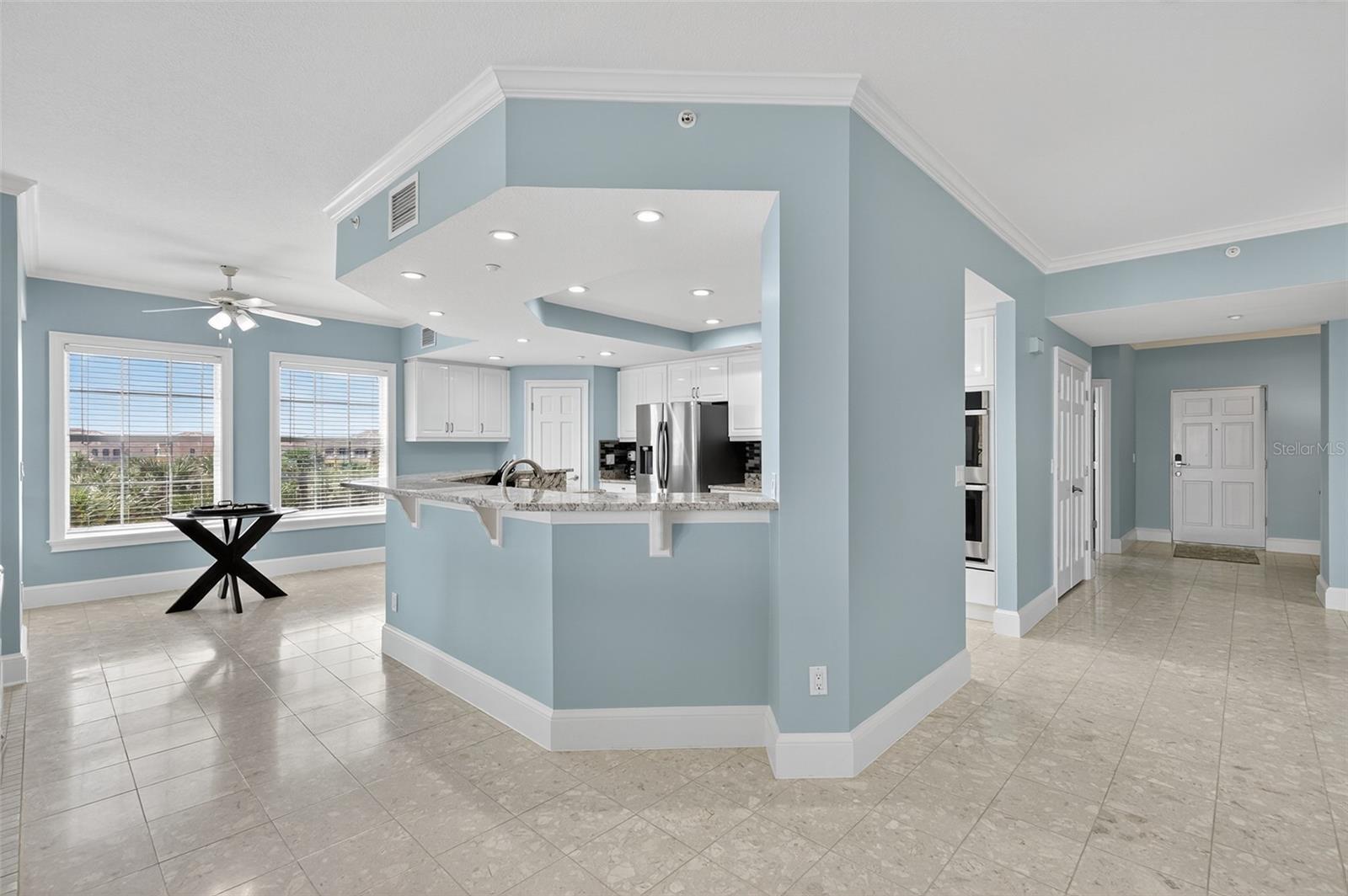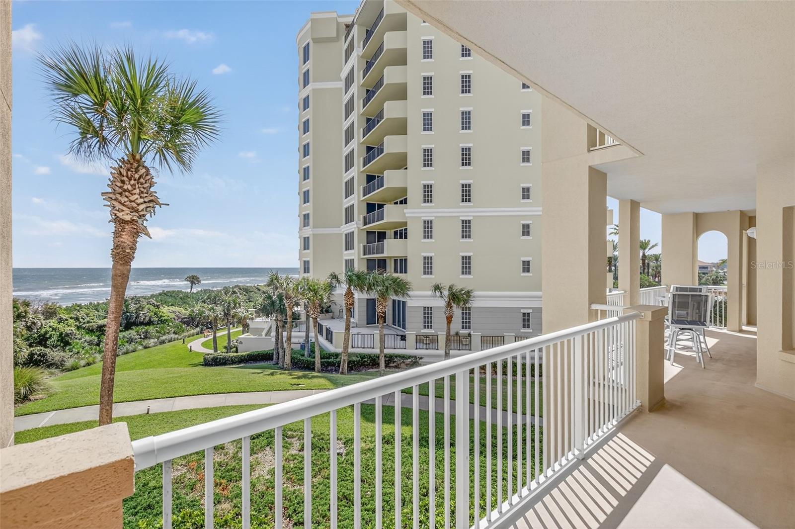 Experience true oceanfront luxury in this 3 bedroom, 3.5 bath condo located in the exclusive La Grande Provence at Hammock Dunes. With only 42 residences, this gated community offers the perfect blend of privacy, security, and resort-style living. Inside, you’ll find a spacious open floor plan designed to maximize the breathtaking ocean views from every angle. The gourmet kitchen features granite countertops, stainless steel appliances, a walk-in pantry, and a wraparound breakfast bar perfect for entertaining. The living and dining areas flow seamlessly to the covered lanai, providing extended living space overlooking the Atlantic. The condo also includes a well-appointed laundry room with utility sink, counters, and cabinetry, plus the convenience of garage parking. Step outside to enjoy private beach access or relax by the heated community pool. This rare offering combines luxury, comfort, and exclusivity—all in one stunning oceanfront residence.