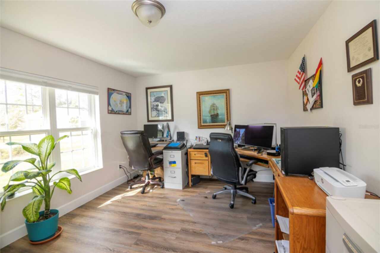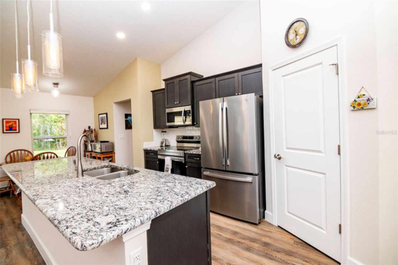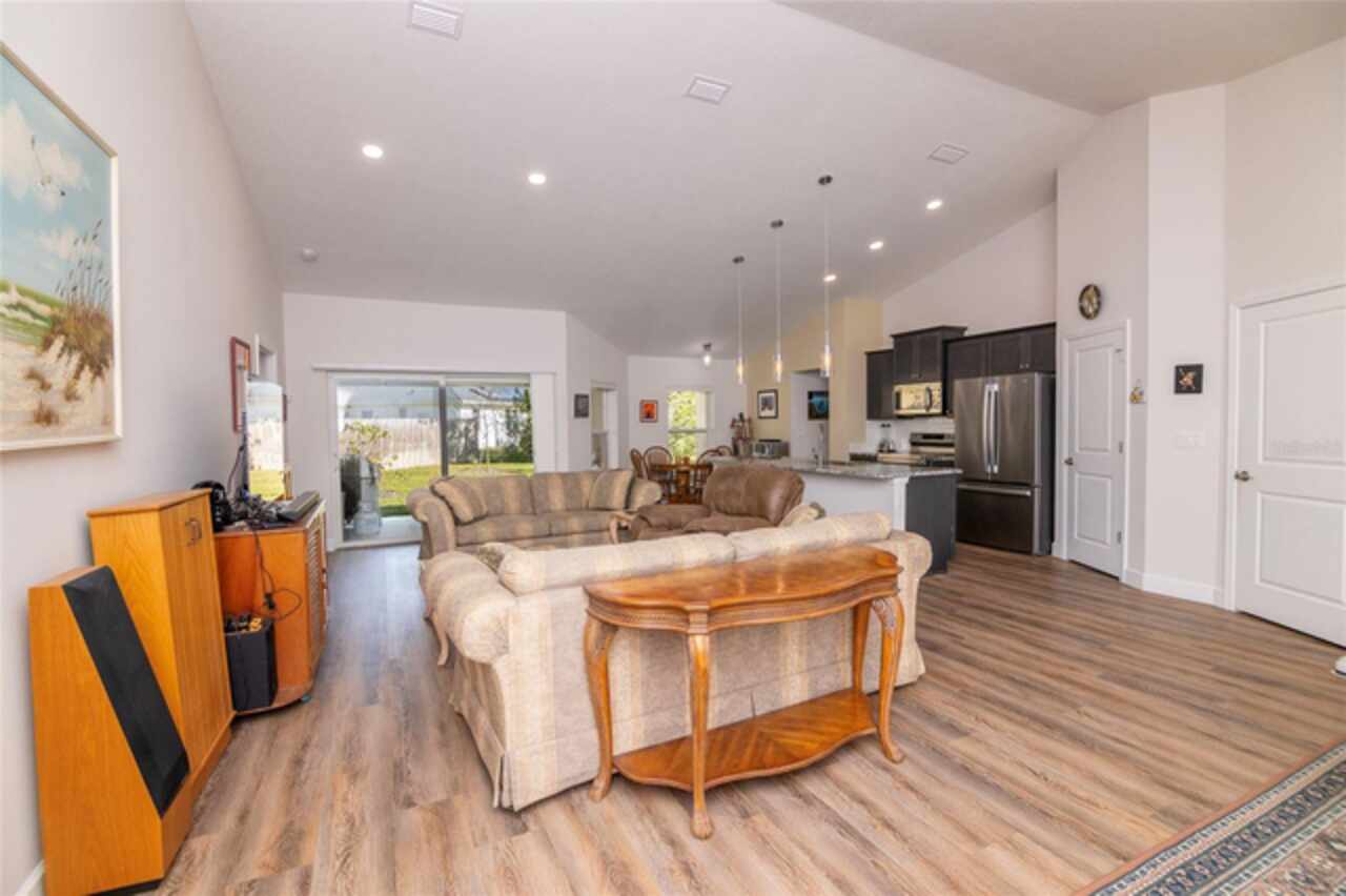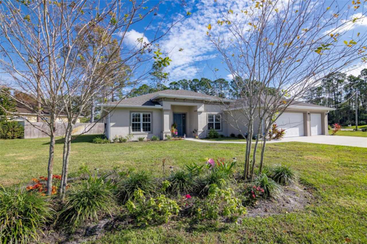 This beautiful home sits on an oversized corner lot in a desirable community of Palm Coast. Centrally located to shopping and many walking and bike trails and a short drive to the beach. Three bedrooms, two baths and a bonus room. Sought after open floor plan with plenty of space for a family. The kitchen has granite counter tops, a pantry and plenty of storage. Also included is a cozy breakfast nook that looks out over the backyard. The laundry is located right off the kitchen for convenience. The split floor plan allows for primary bedroom privacy with vaulted ceiling and an en-suite that is beautifully designed with dual vanities and two closets. The guest bedrooms are well sized and share a full bathroom. The home has Vinyl plank flooring in wet areas and the bedrooms have carpet. Other upgrades include an A-ipower 10000-watt-gas powered generator, 3 car garage and a sprinkler system. Enjoy low-maintenance living with premium leaf guard gutters, designed to keep your home's exterior pristine.