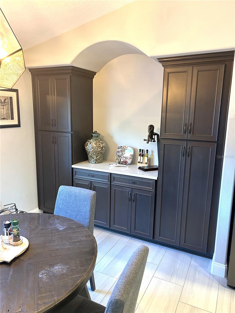Built-in Features, Cathedral Ceiling(s), Ceiling Fans(s), Dry Bar, Kitchen/Family Room Combo, Open Floorplan, Primary Bedroom Main Floor, Solid Surface Counters, Split Bedroom, Stone Counters, Thermostat, Tray Ceiling(s), Walk-In Closet(s), Window Treatments